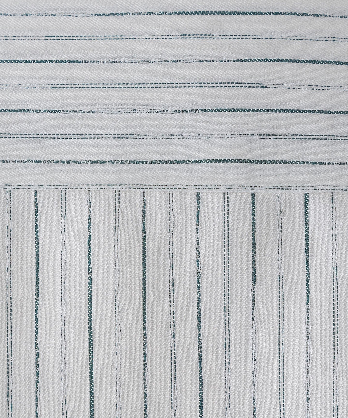 The hand-touched green striped pattern on the smooth, taut material really stands out.