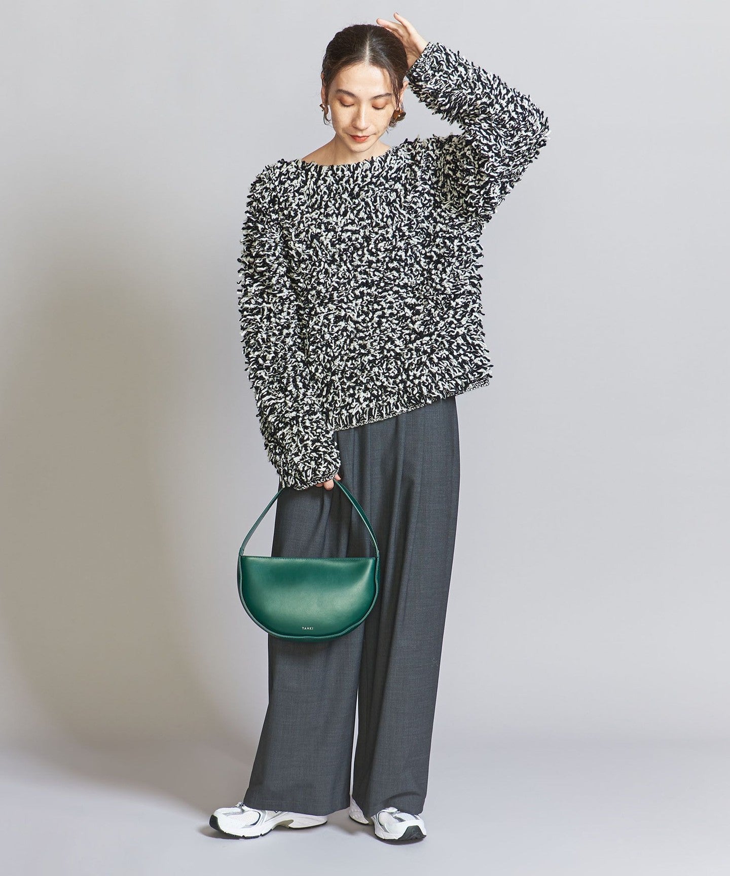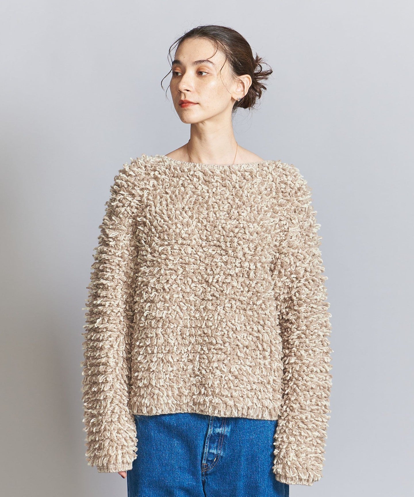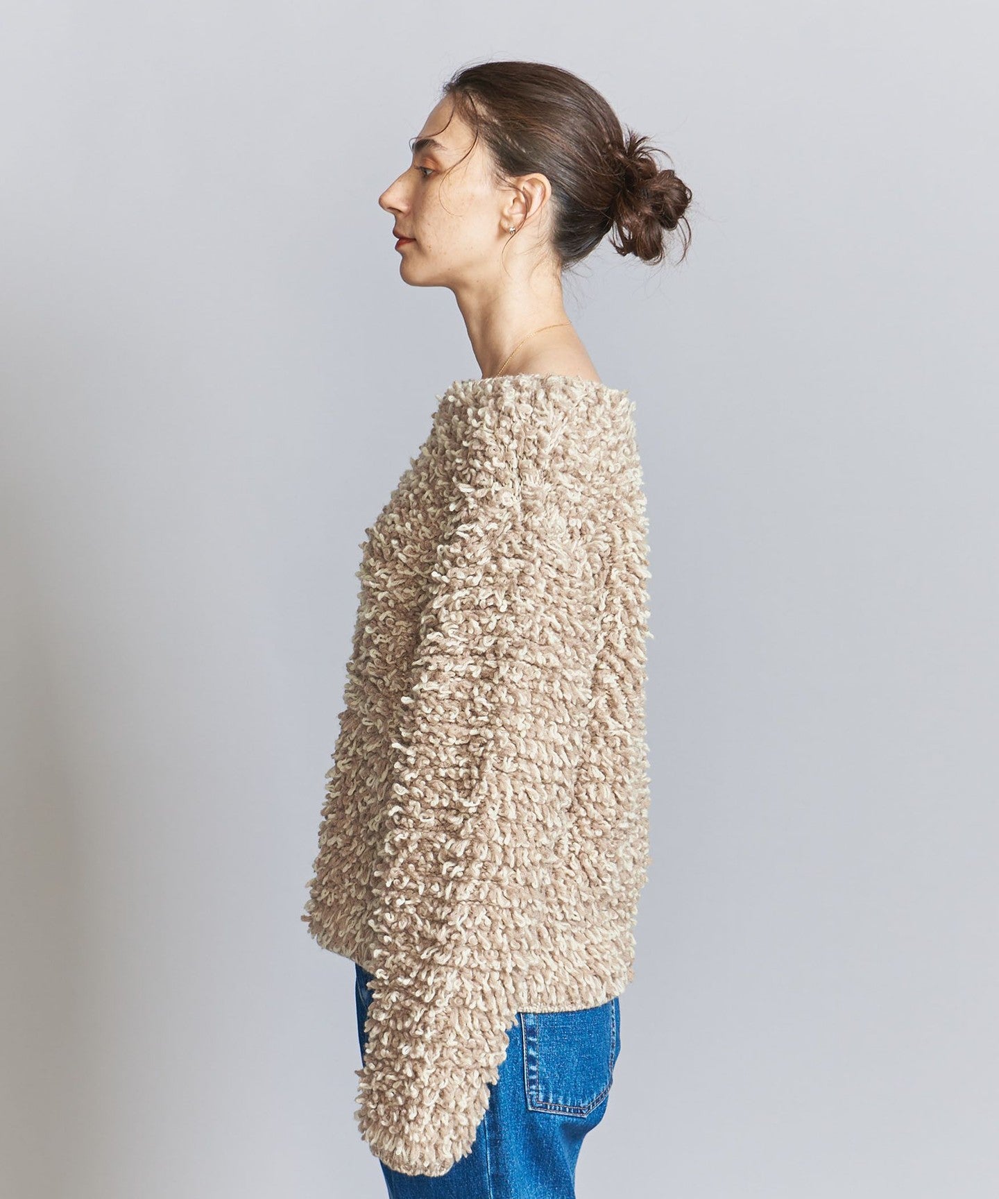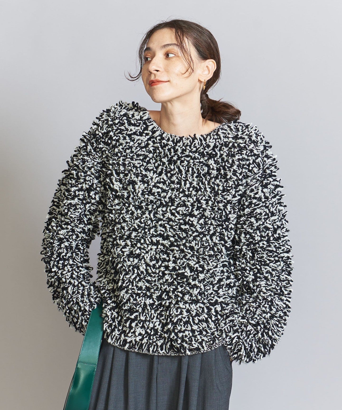 This knit pullover is made using a special knitting method that allows the yarn to sag in a loop shape while knitting.