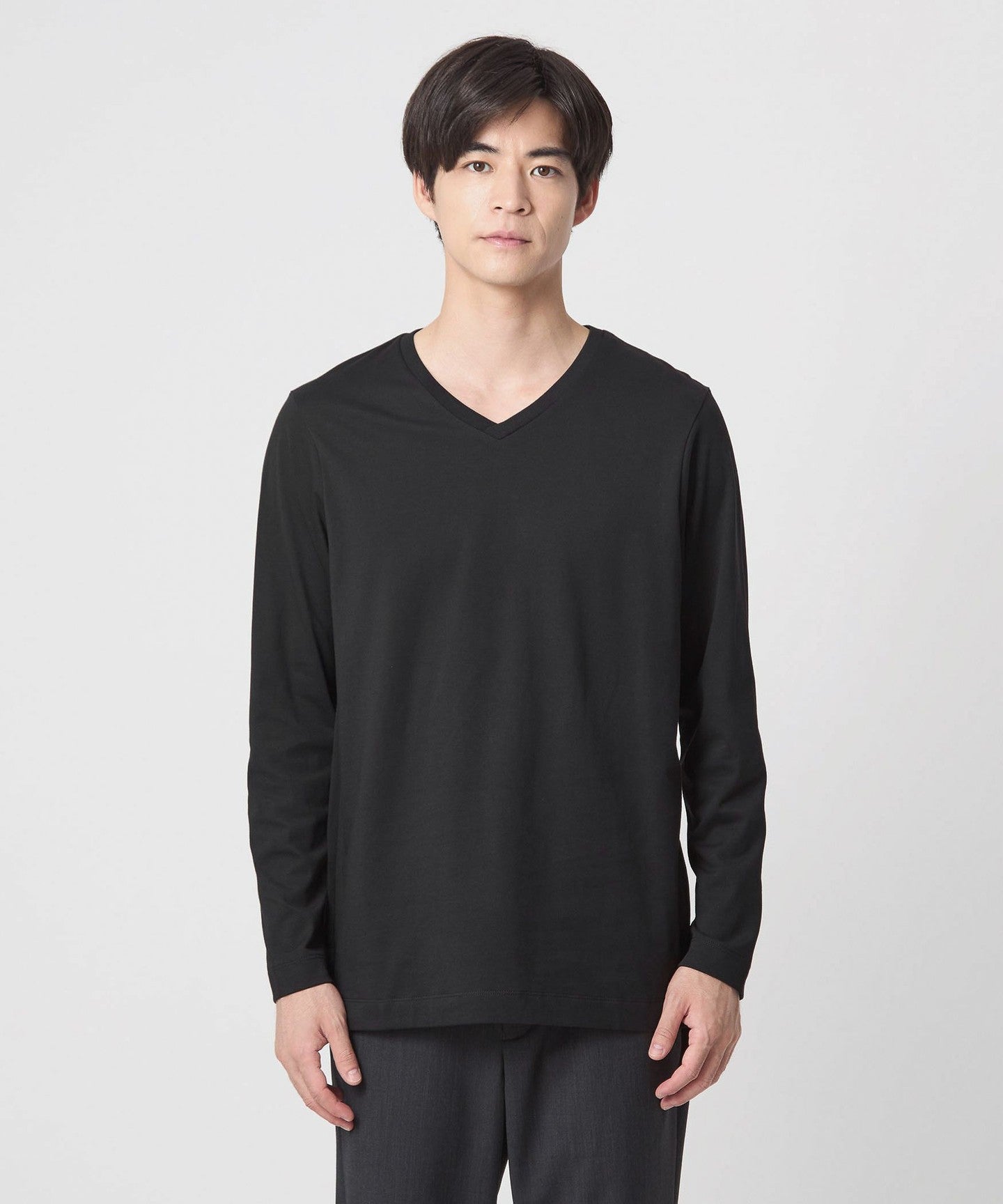 A simple V-neck long sleeve T-shirt.