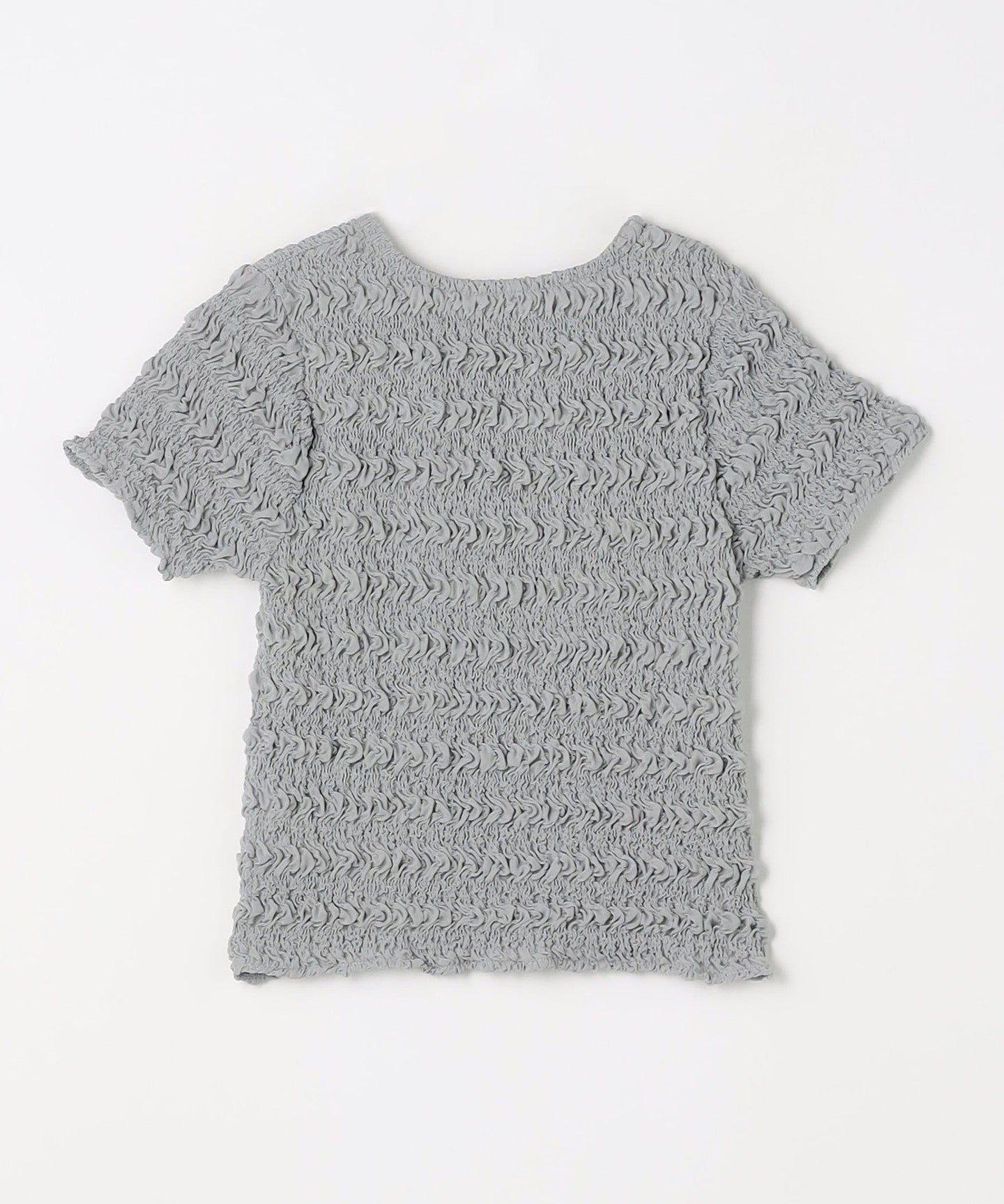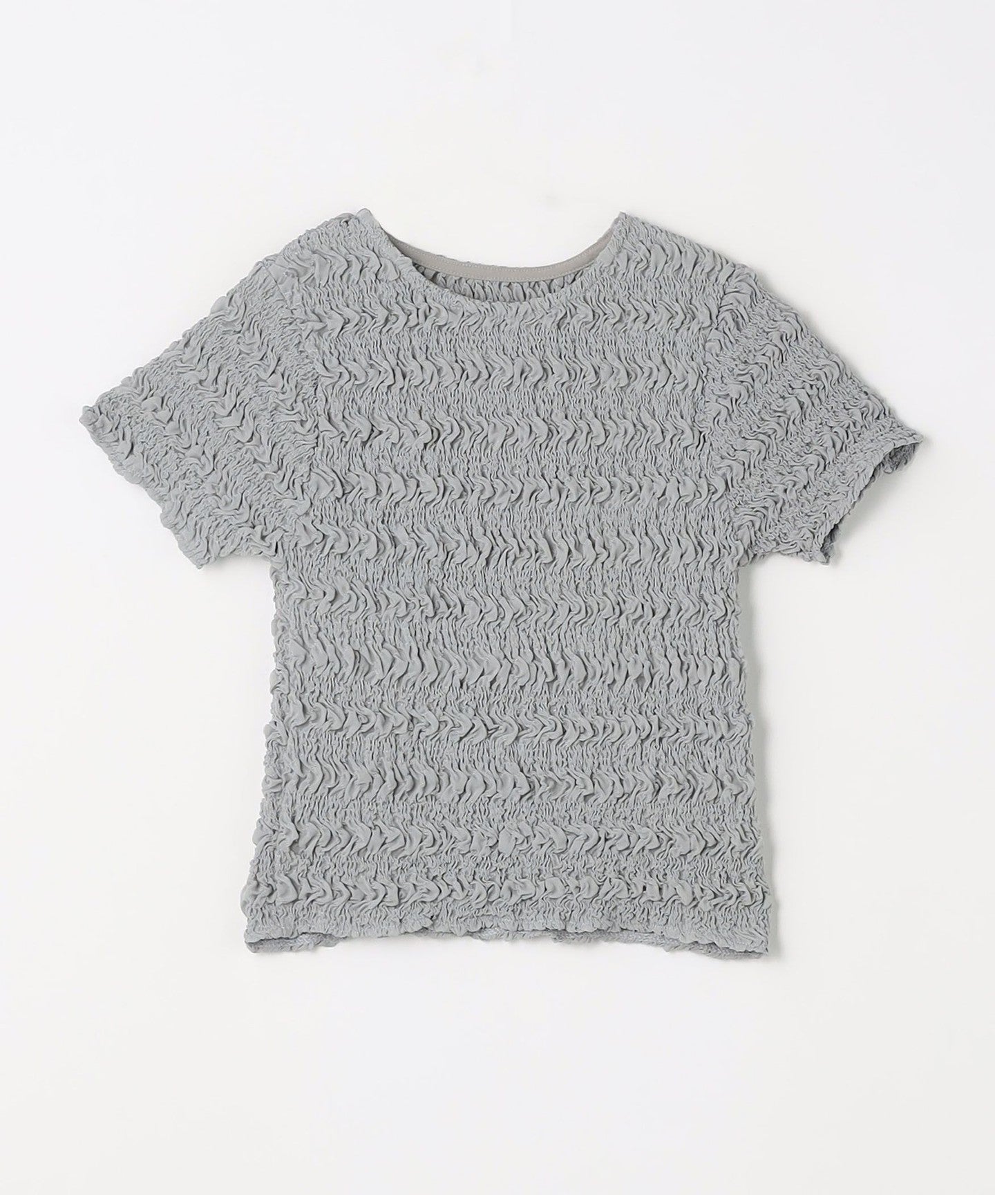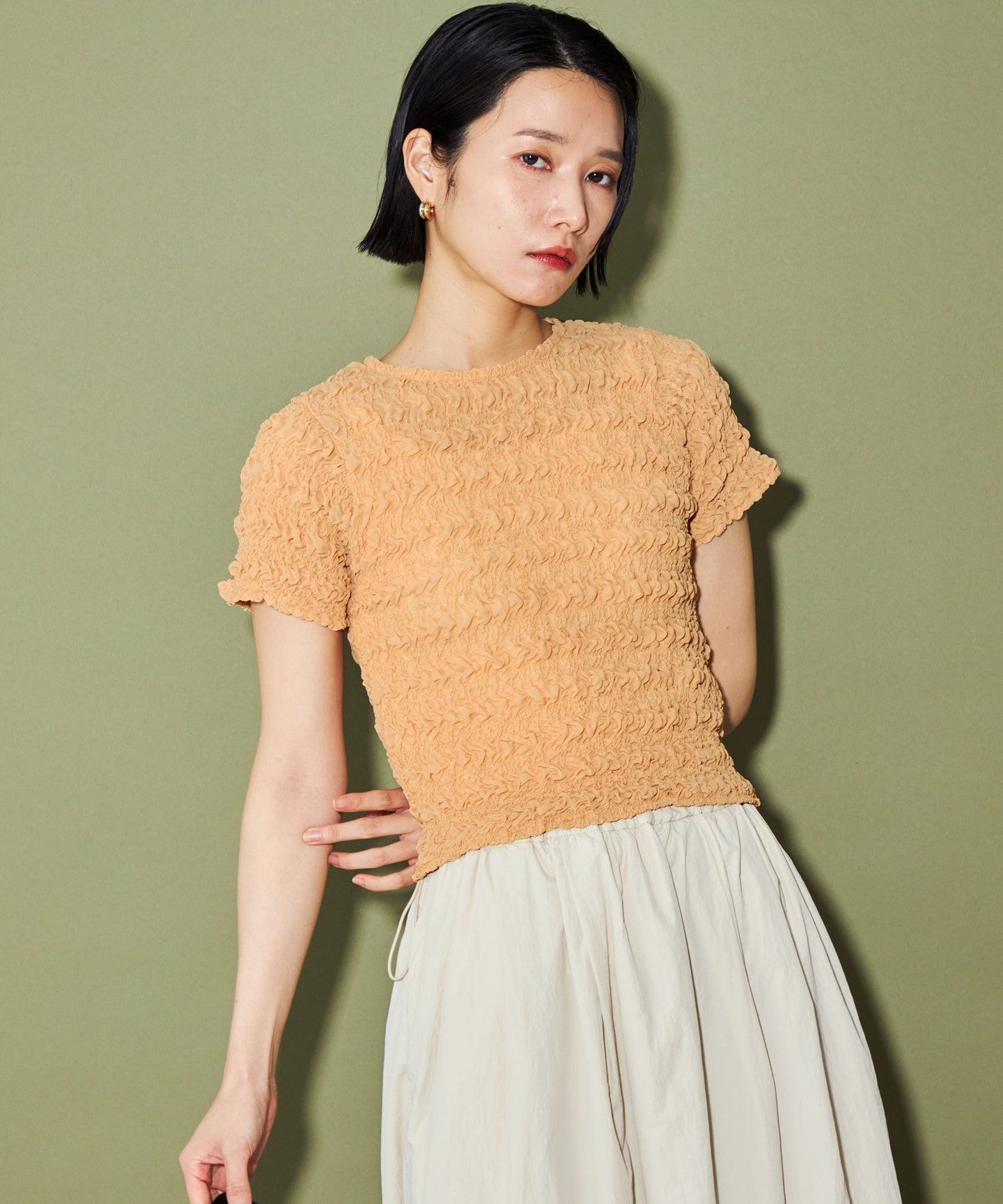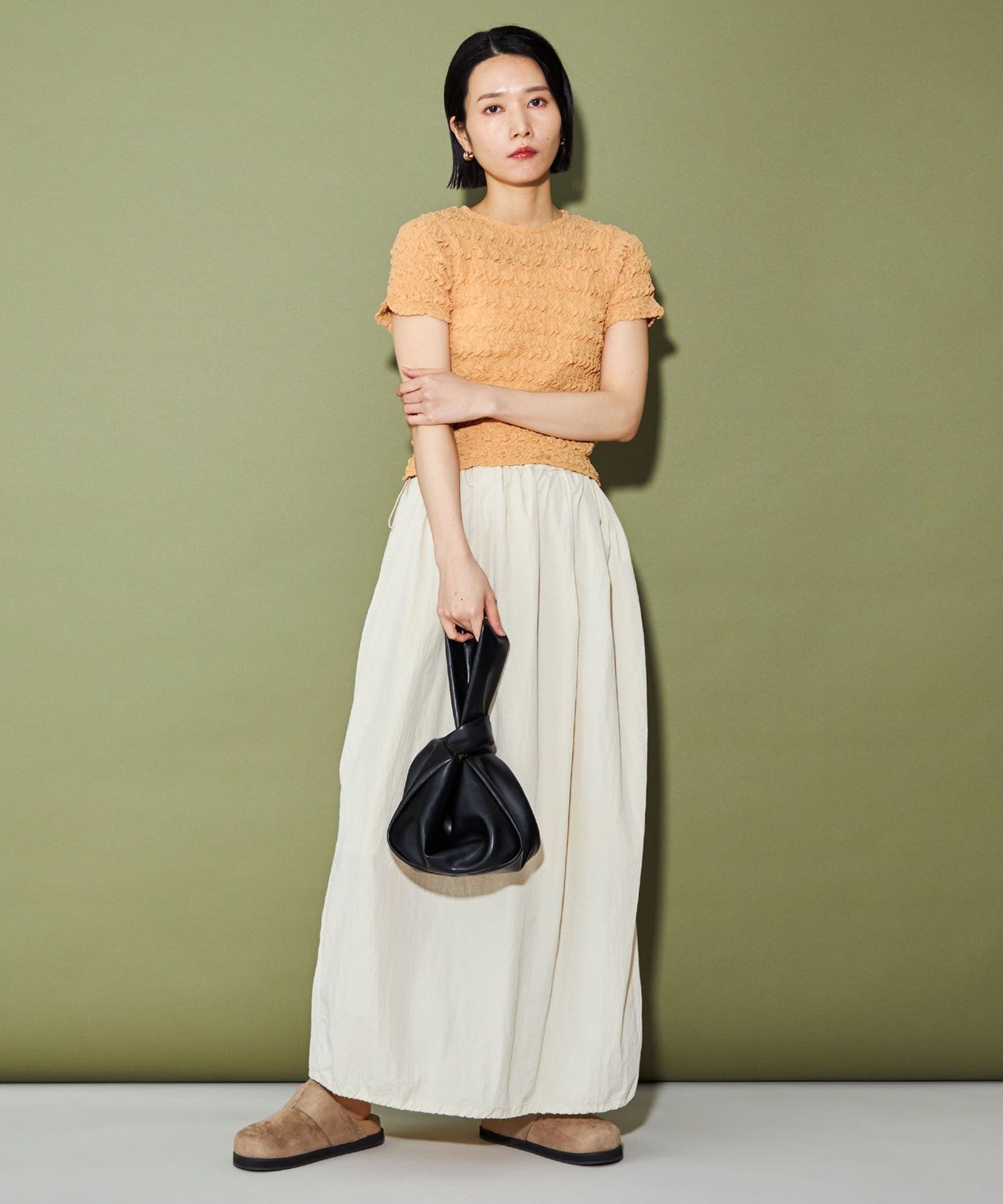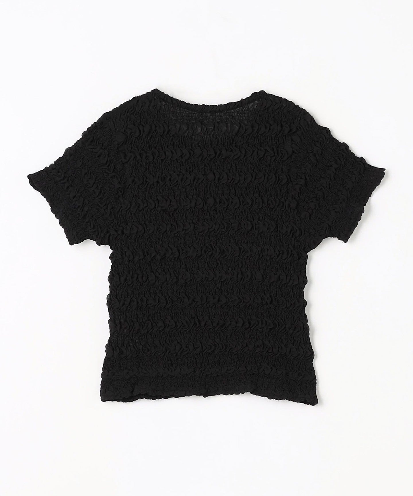 The thin and light fabric is finished with random border shirring to create a rich and expressive look.
