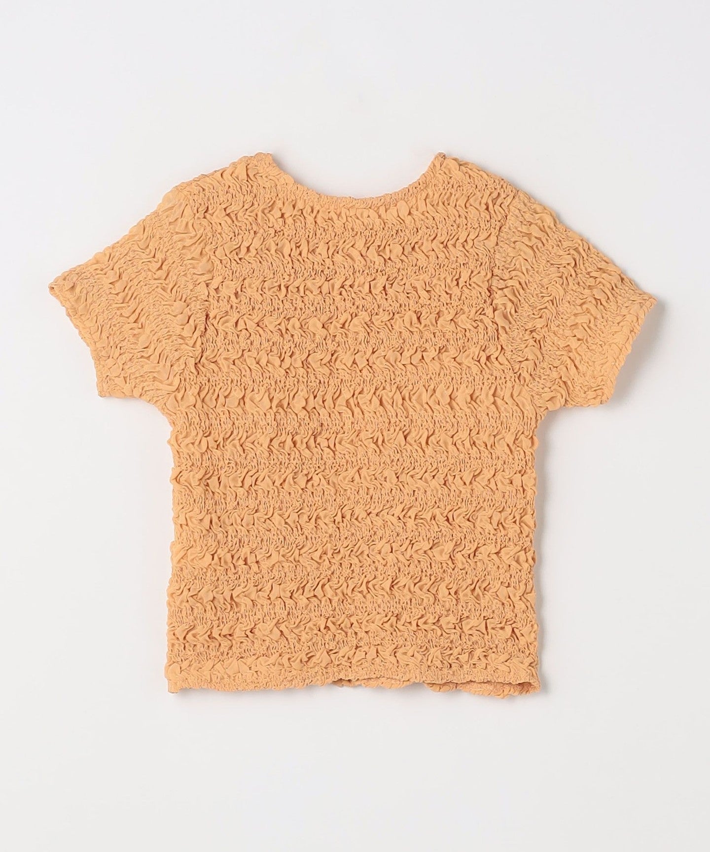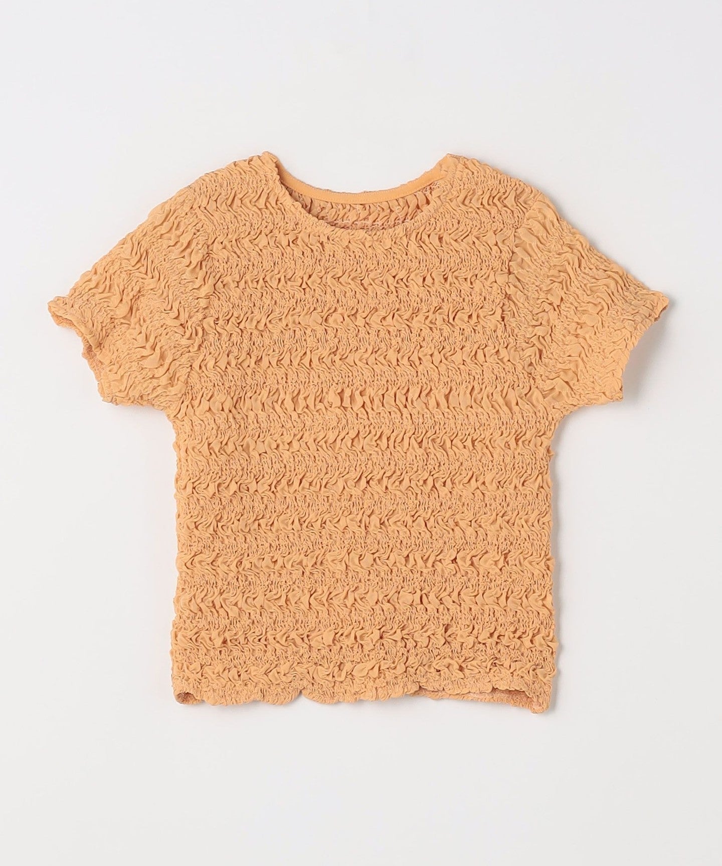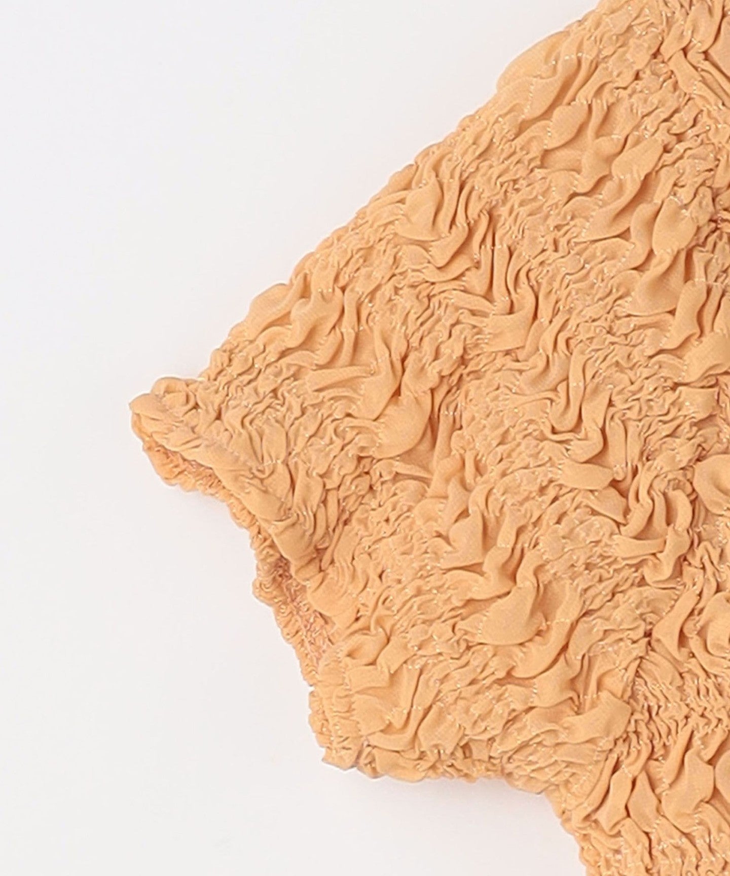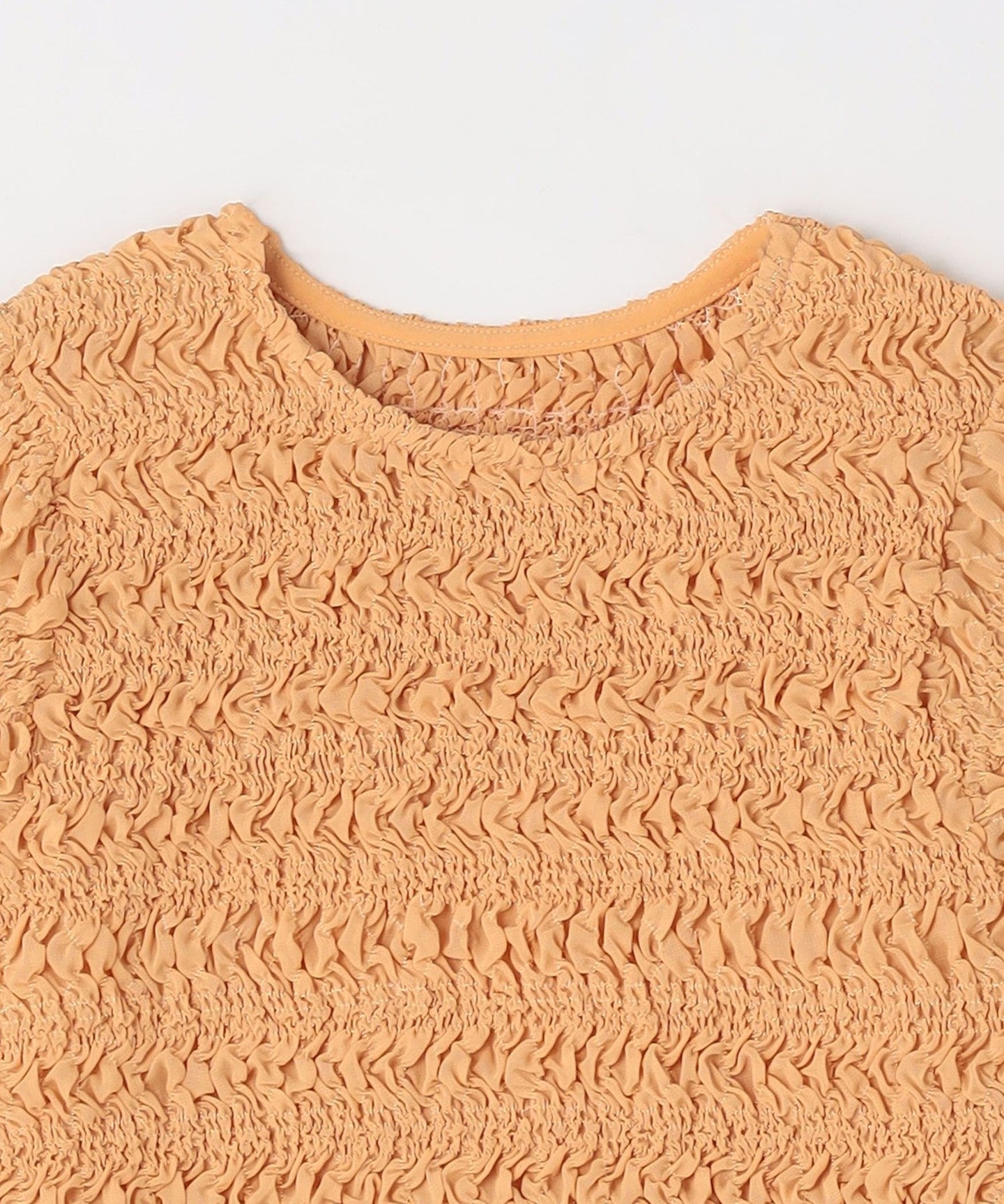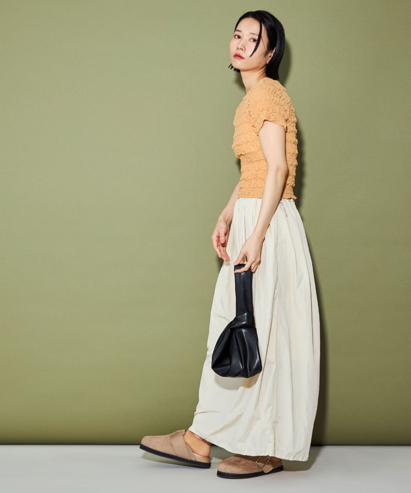 The thin and light fabric is finished with random border shirring to create a rich and expressive look.