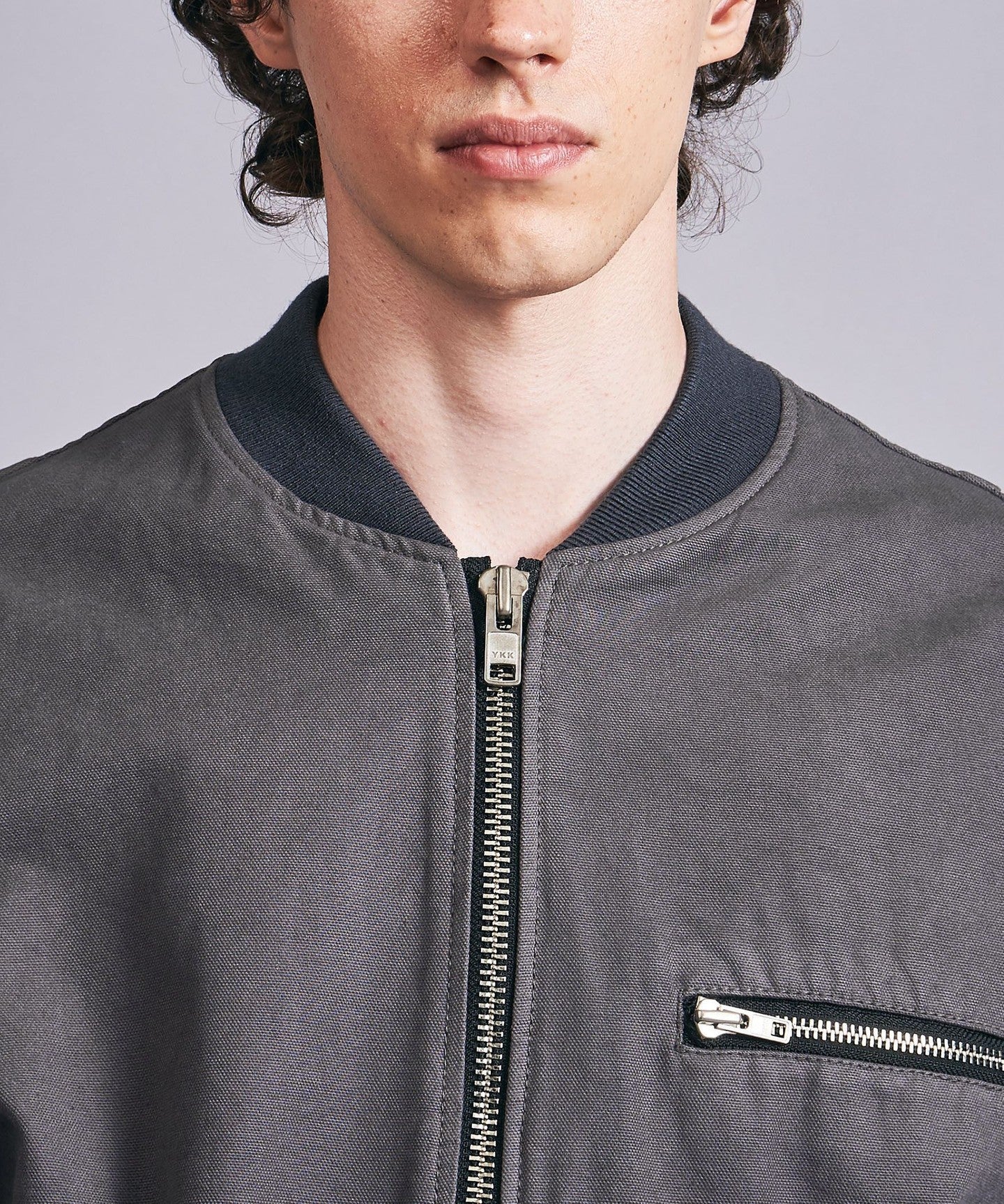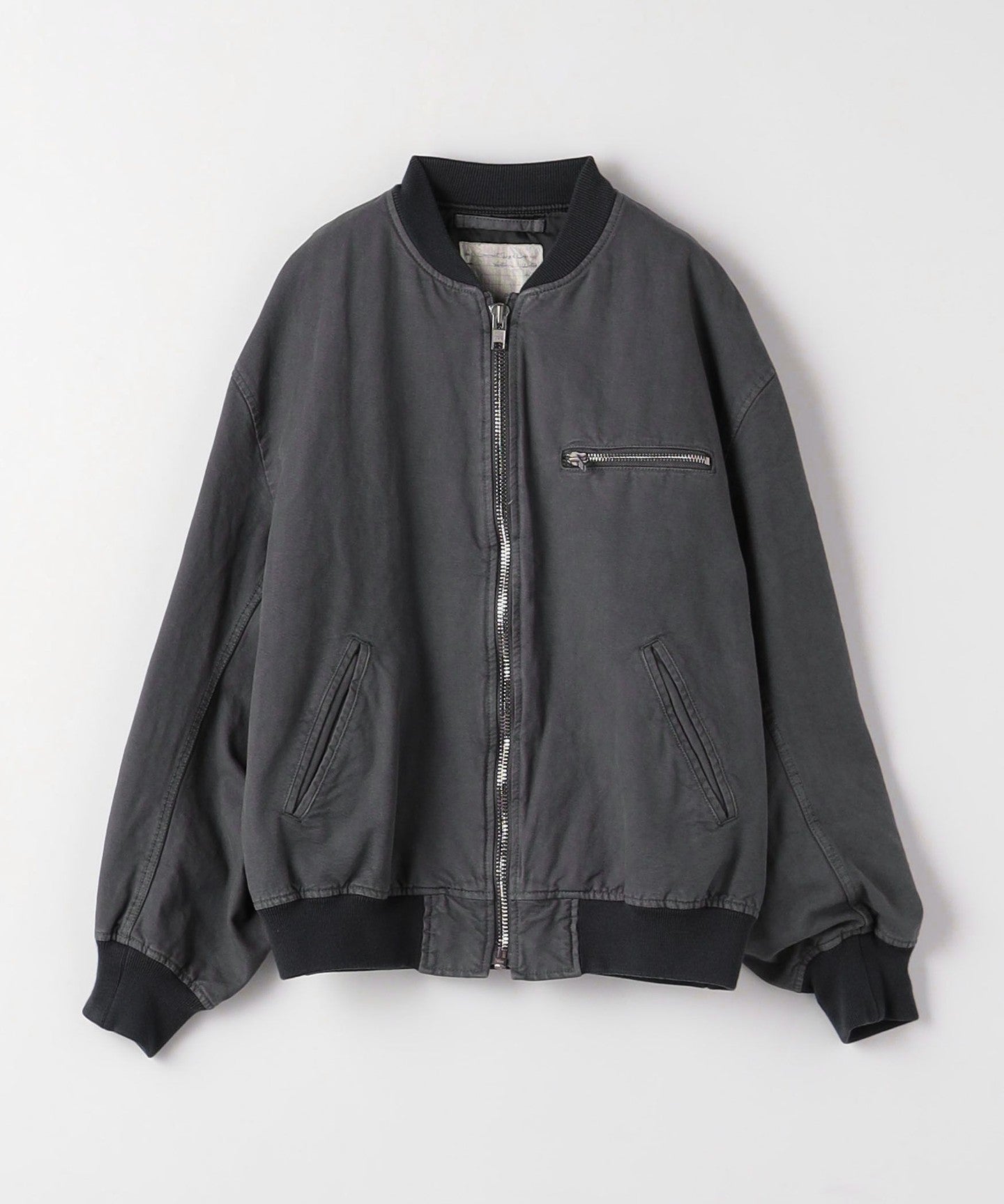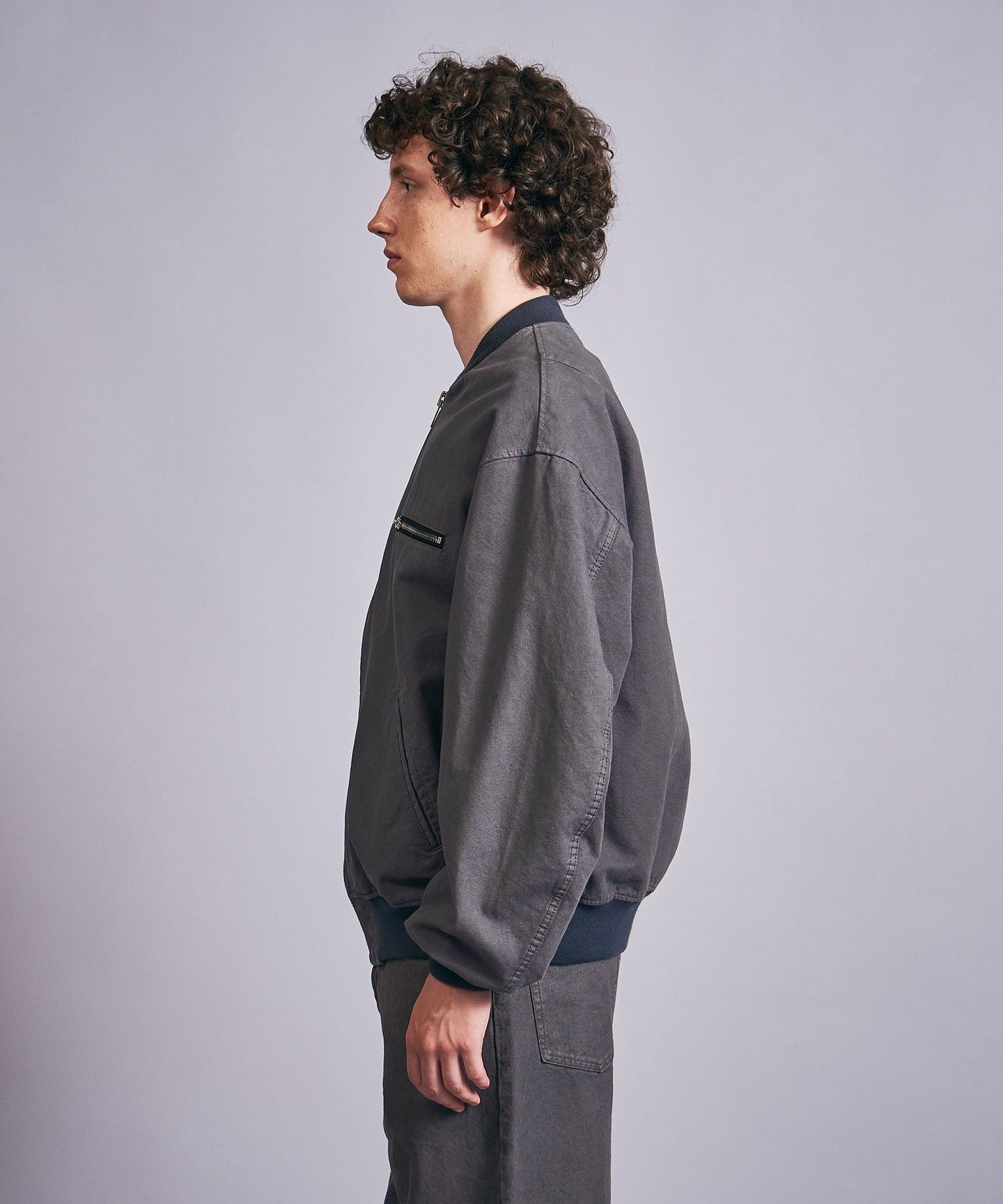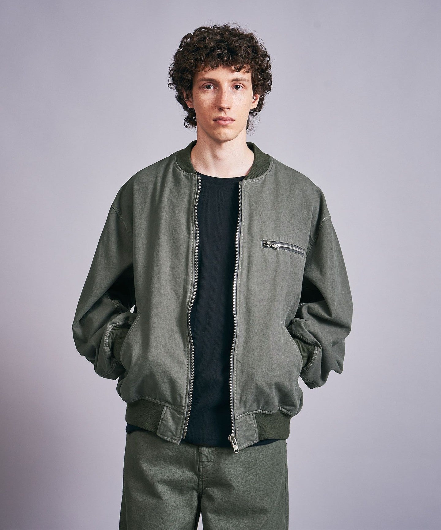 An oversized bomber jacket made from three-dimensional duck fabric.