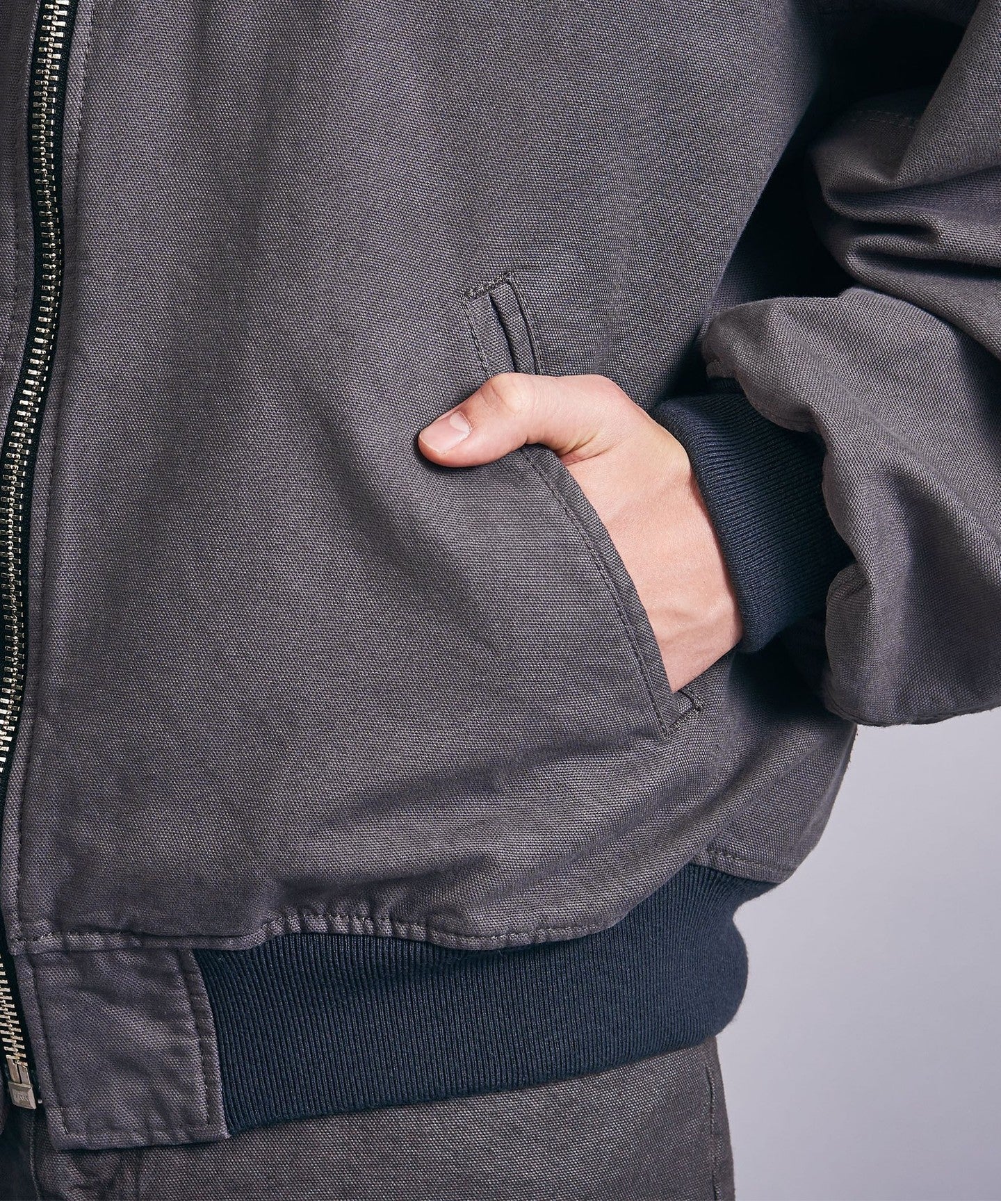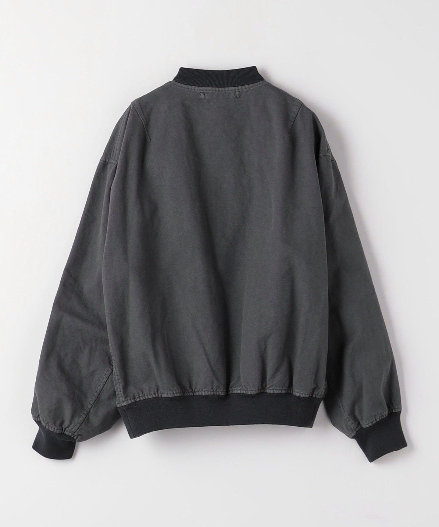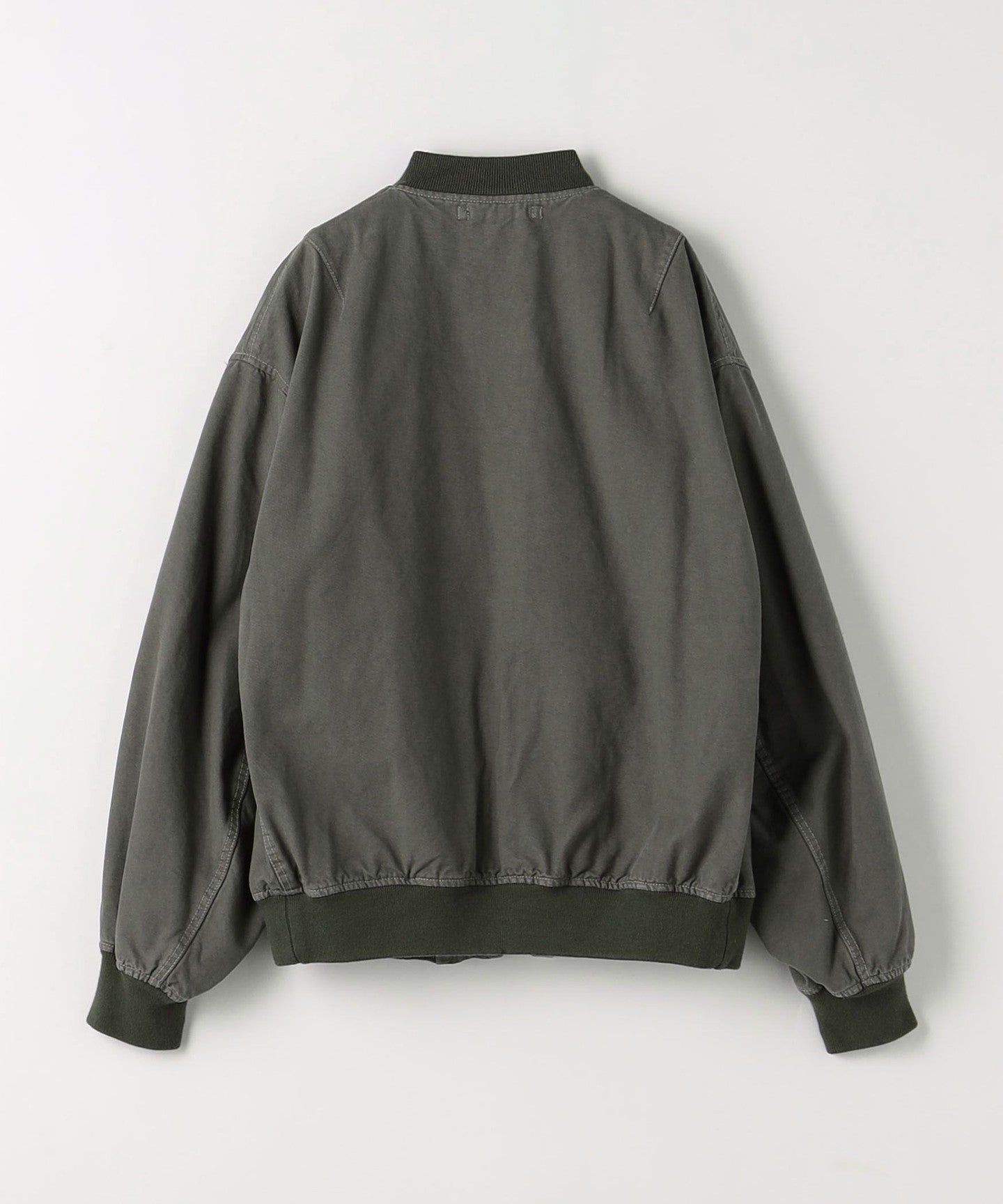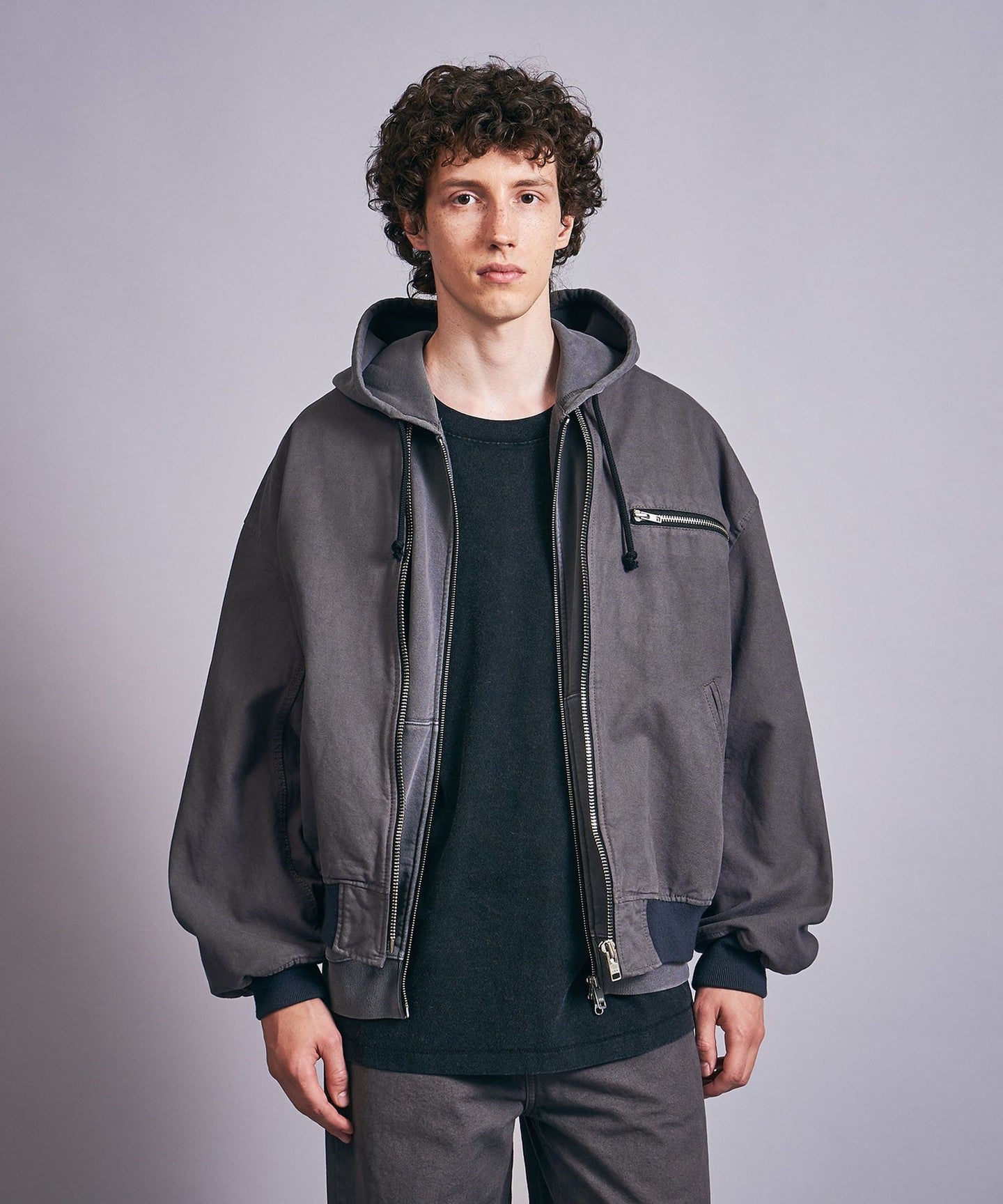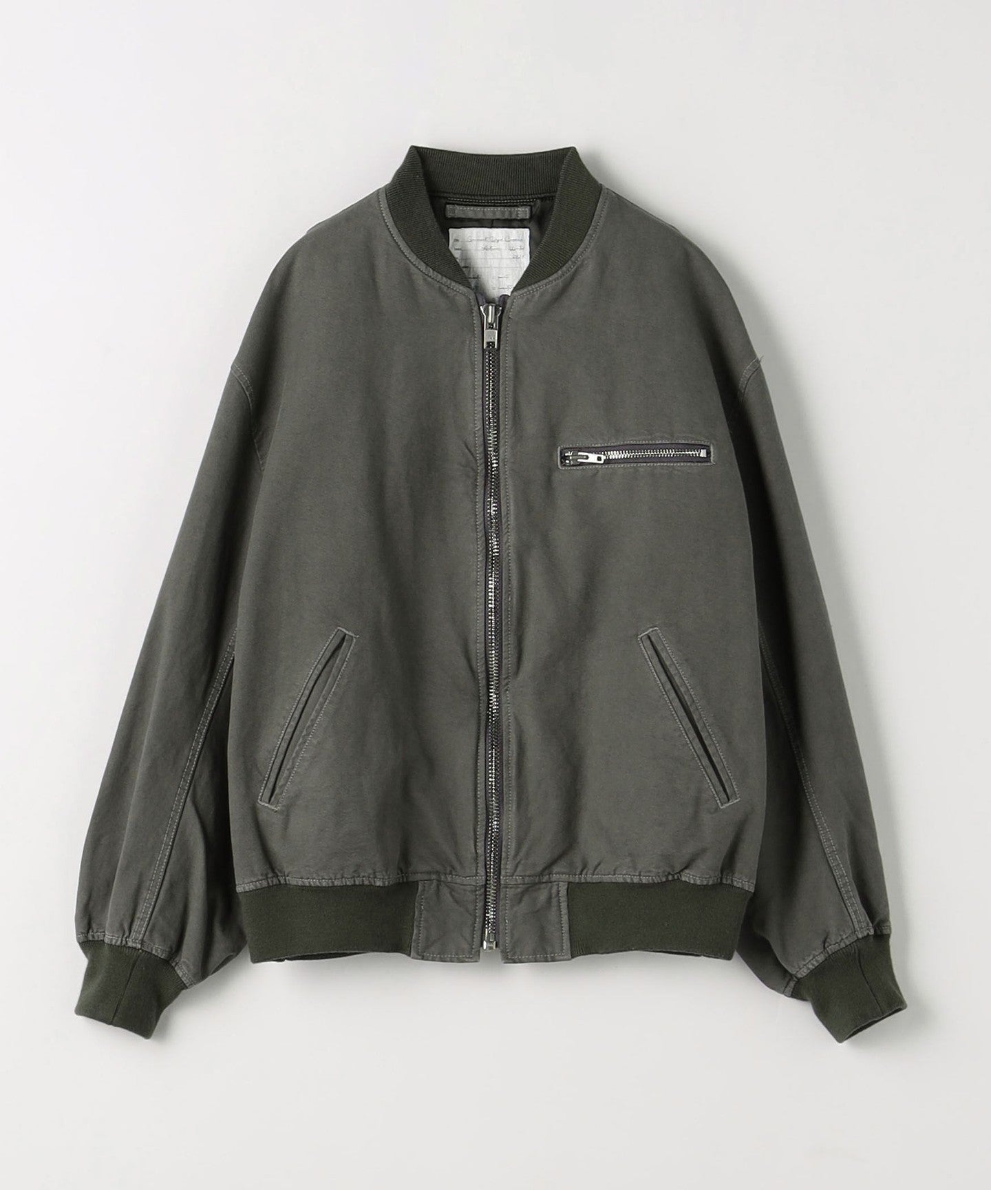 An oversized bomber jacket made from three-dimensional duck fabric.