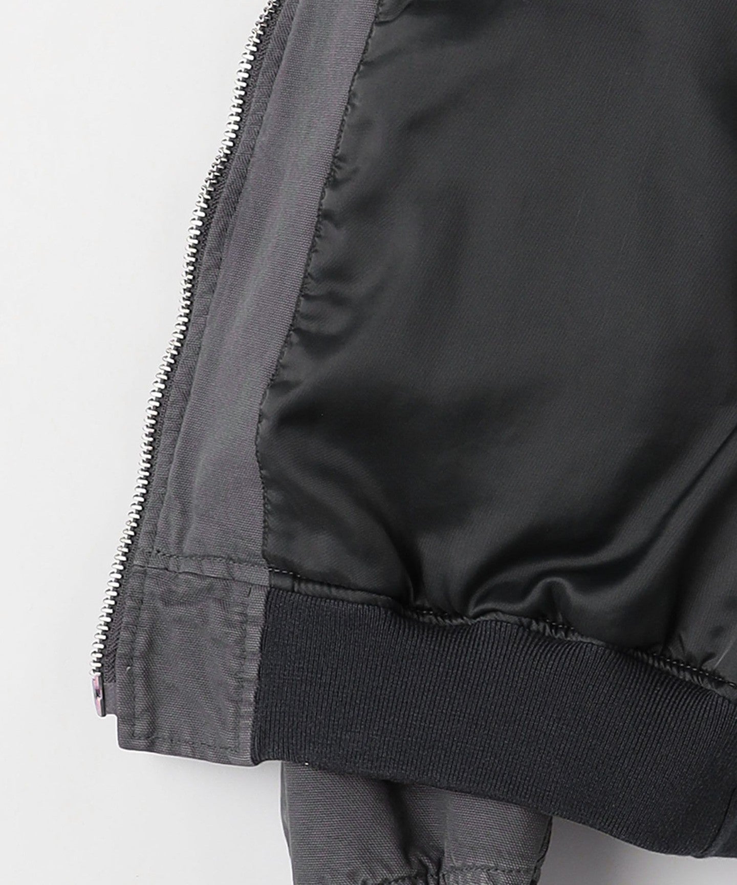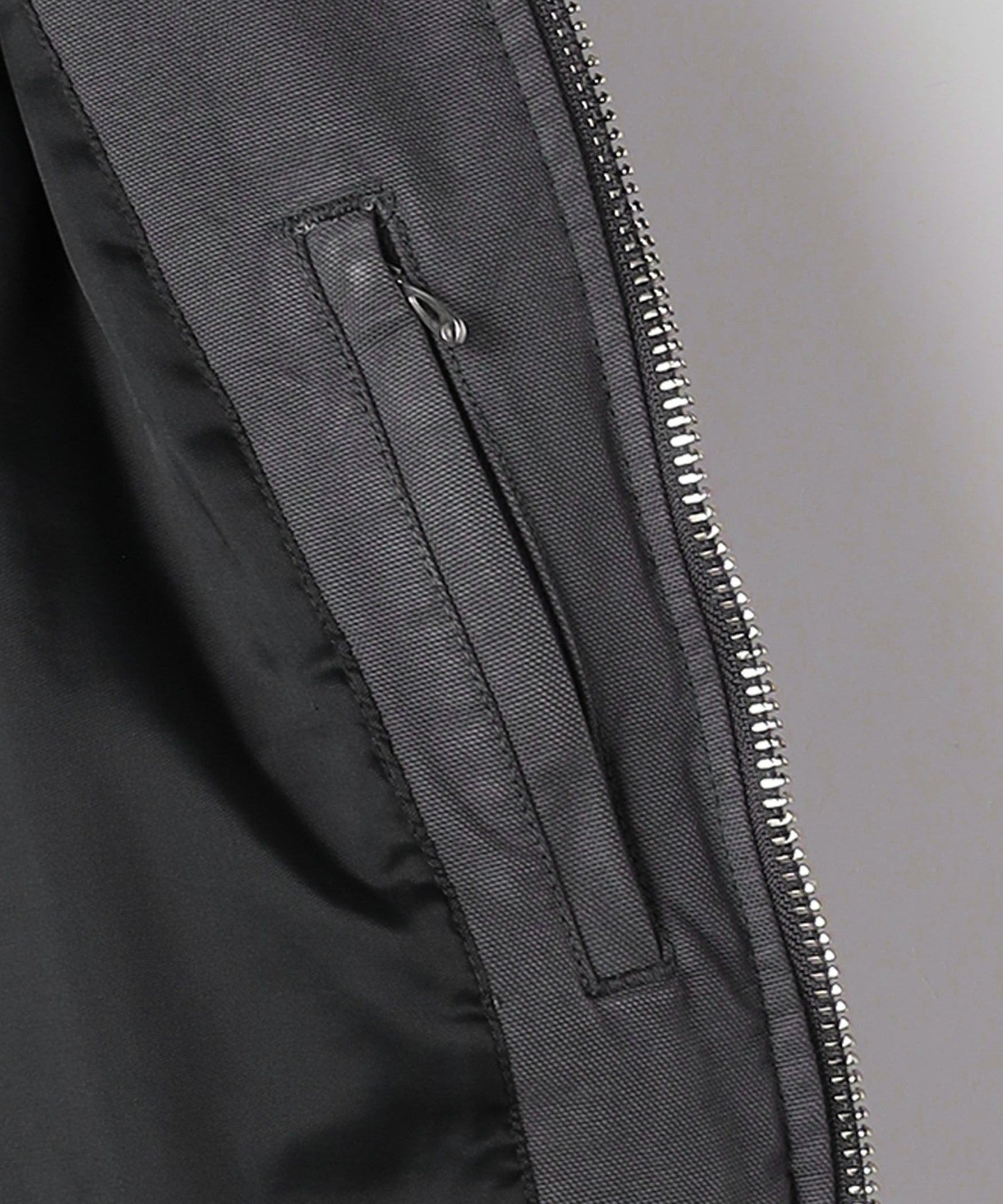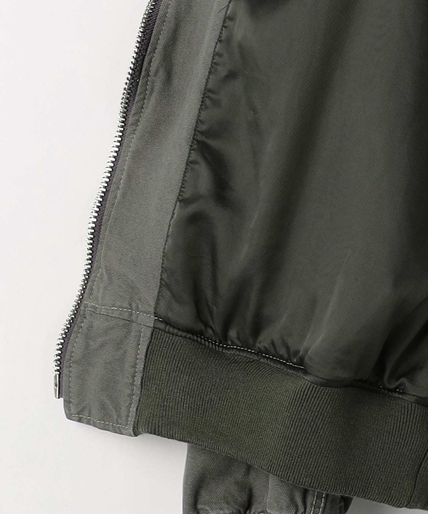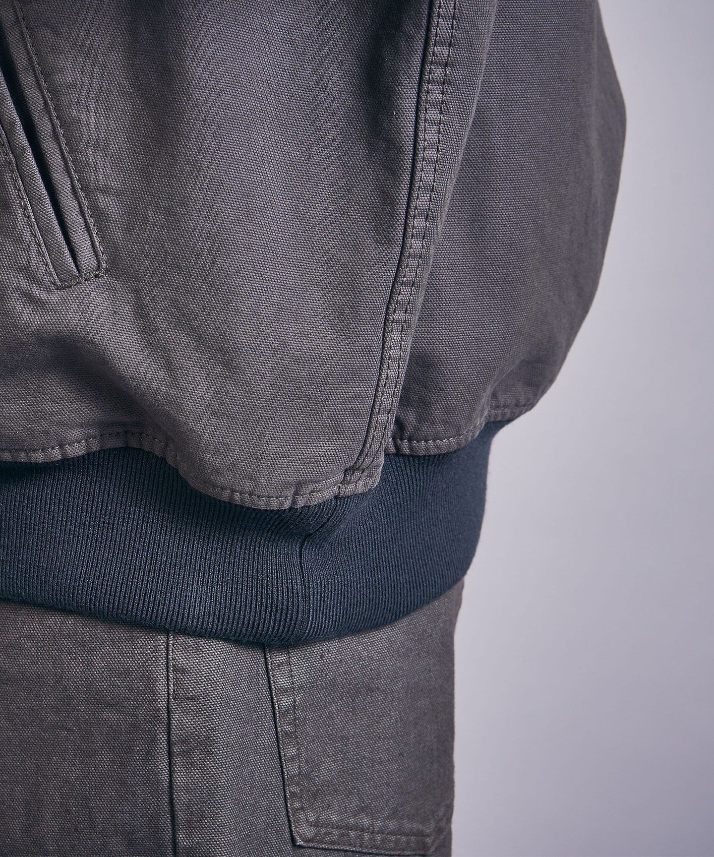An oversized bomber jacket made from three-dimensional duck fabric.
