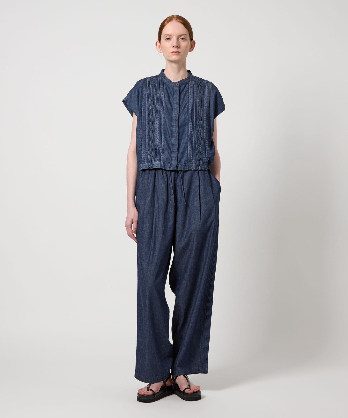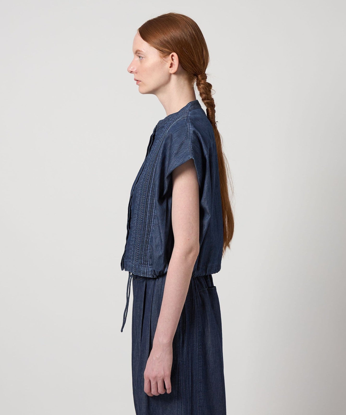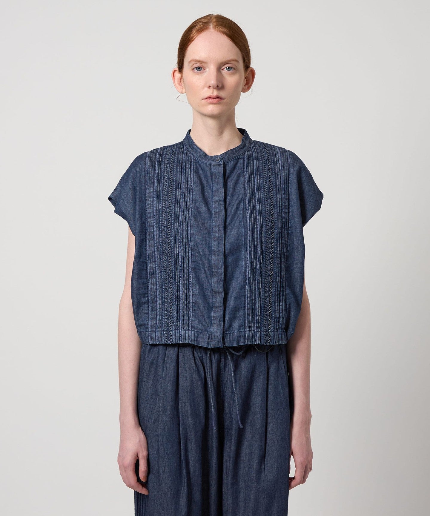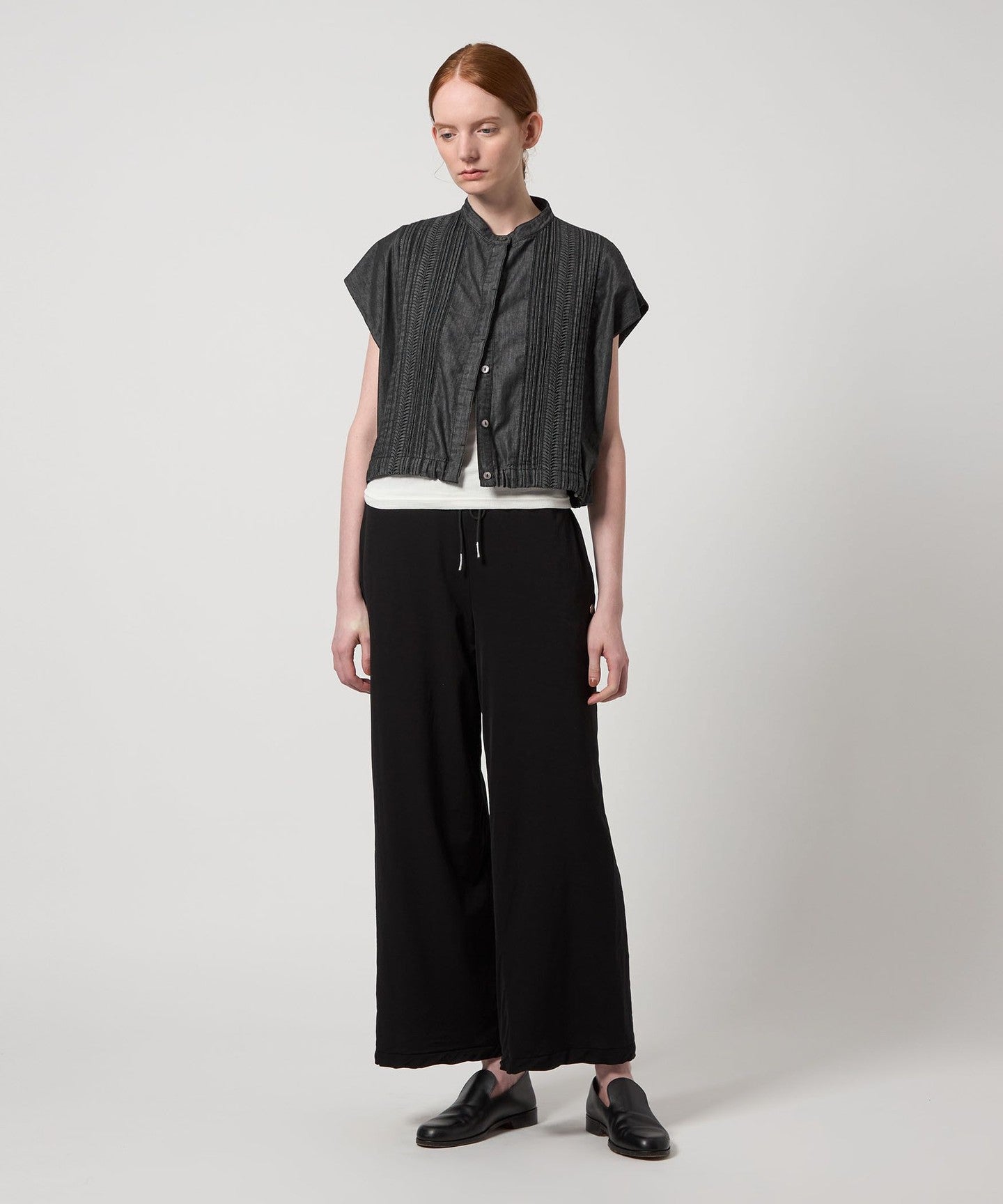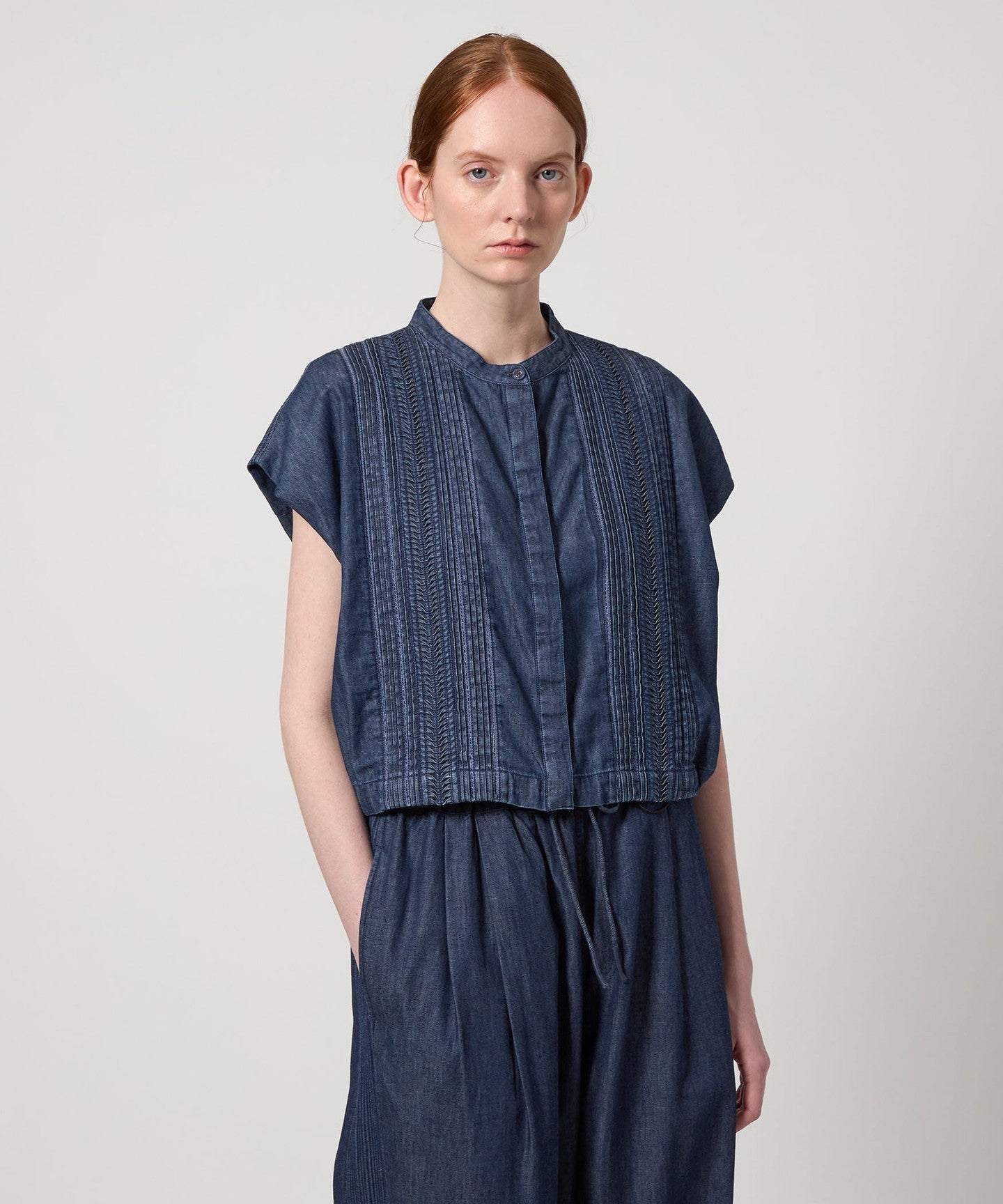 The slightly short, neat length makes it easy to match with a variety of bottoms, and it can also be layered with a cut-and-sew top like a vest.