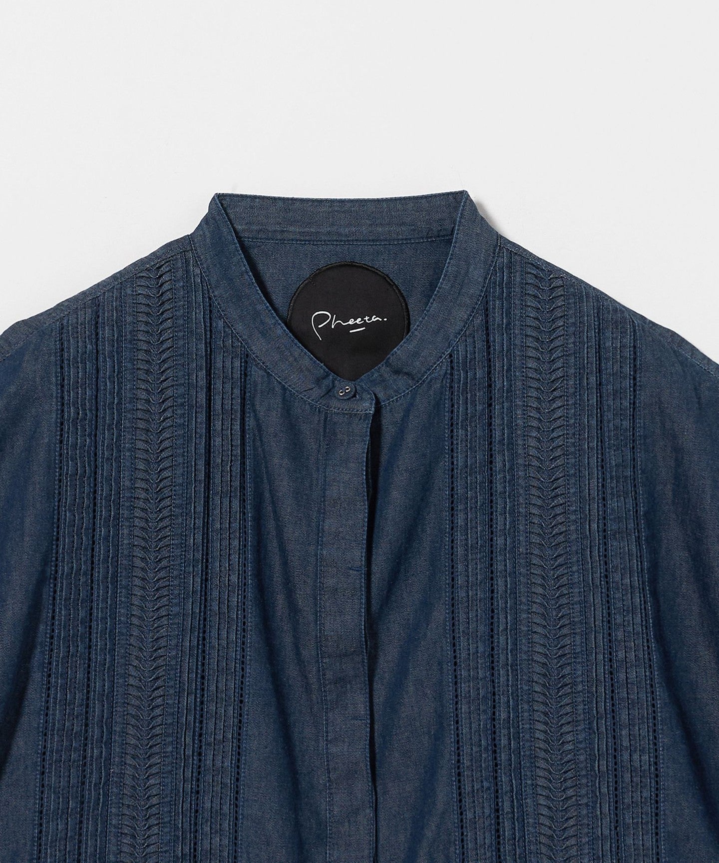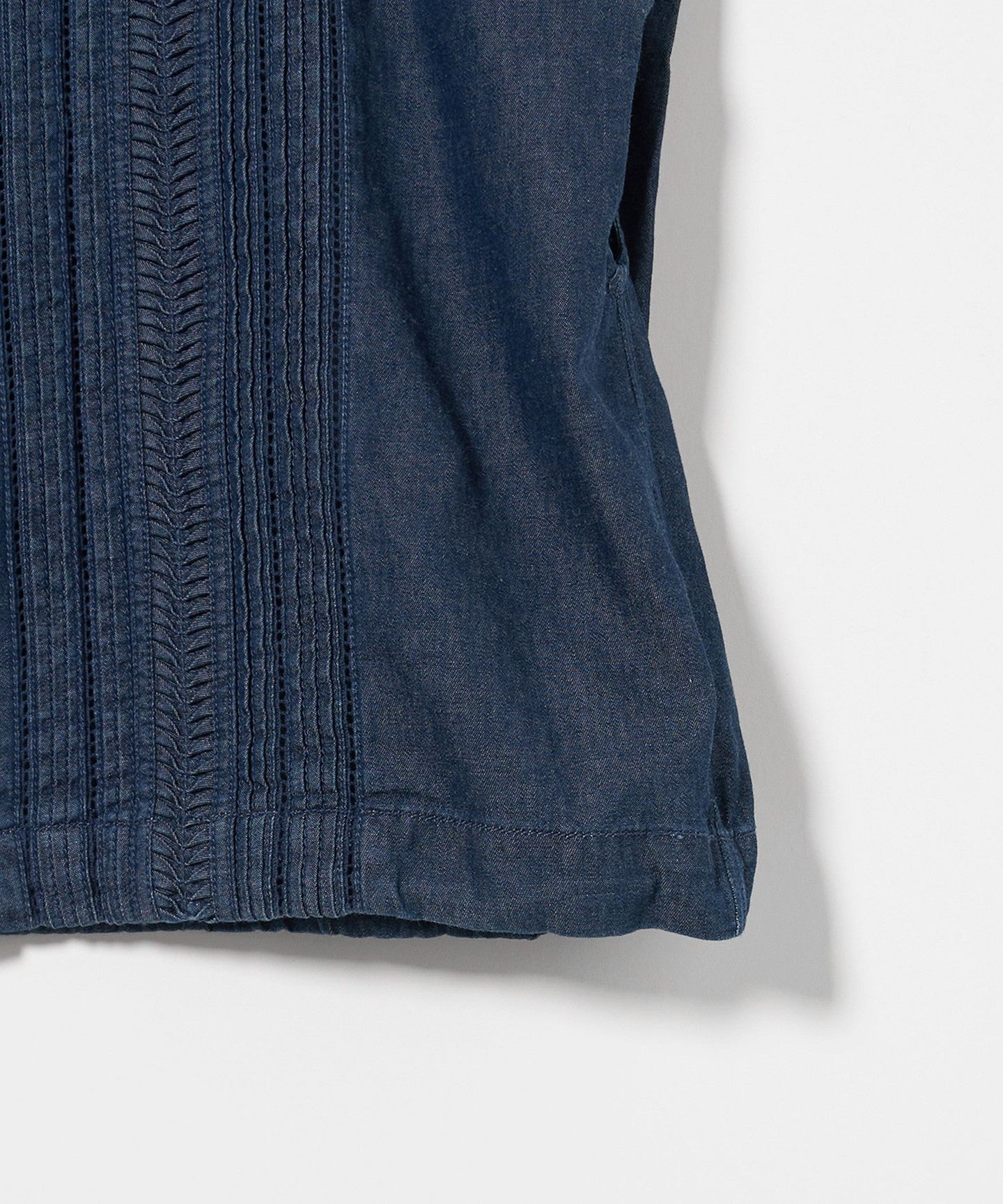 A design blouse featuring two types of intricate pin tucks and ladder lace on the front.