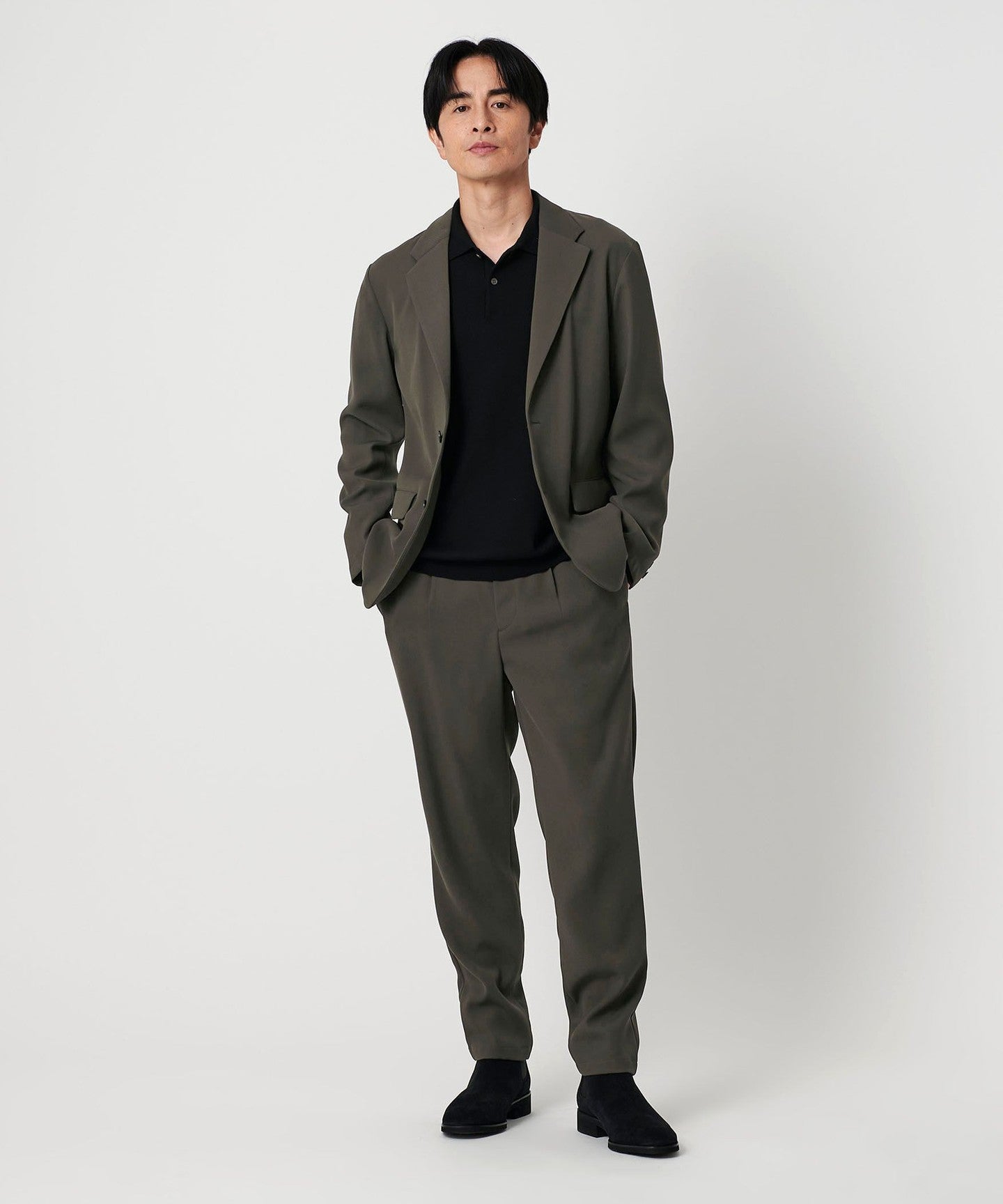 Tricotin polyester 1P tapered pants, suitable for set-up