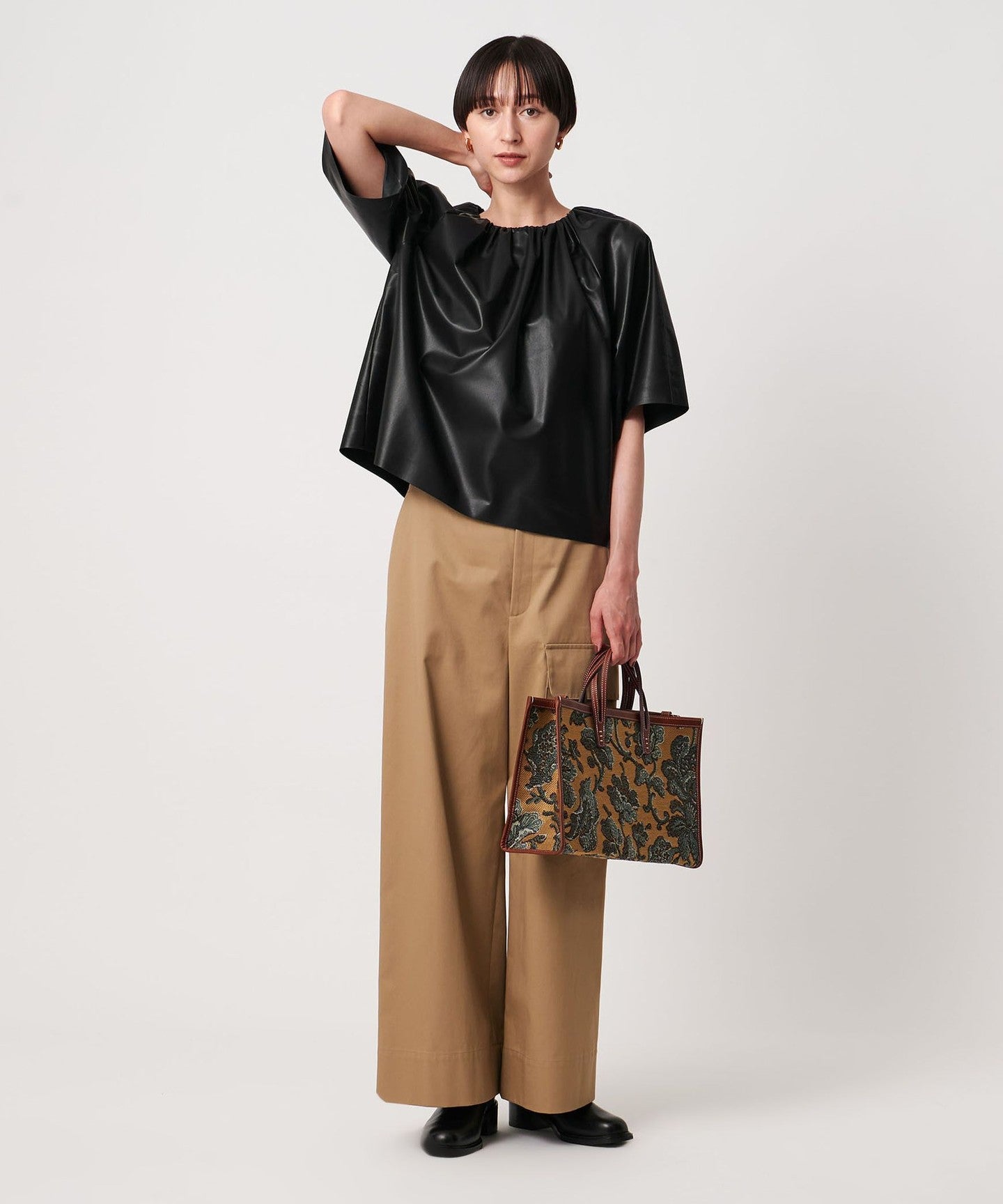 It balances well with neat bottoms such as straight pants or I-line skirts.