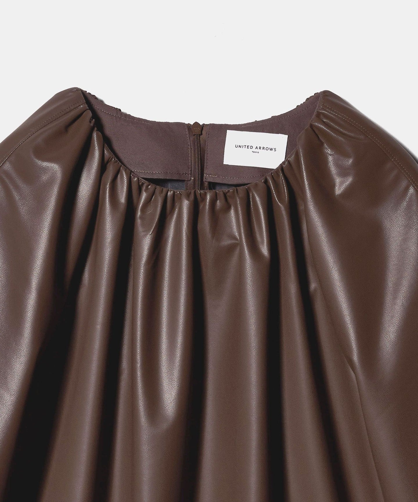 The three-dimensional gathered neck and flared silhouette make this a beautiful piece from any angle.