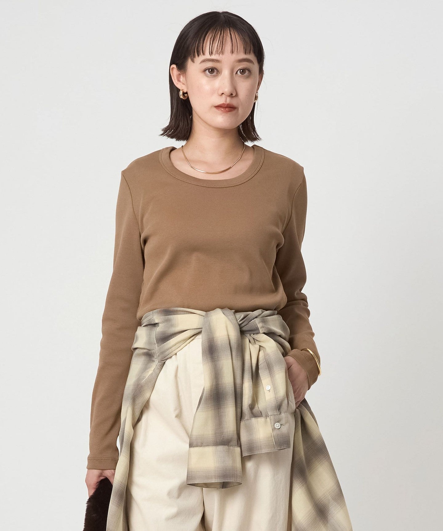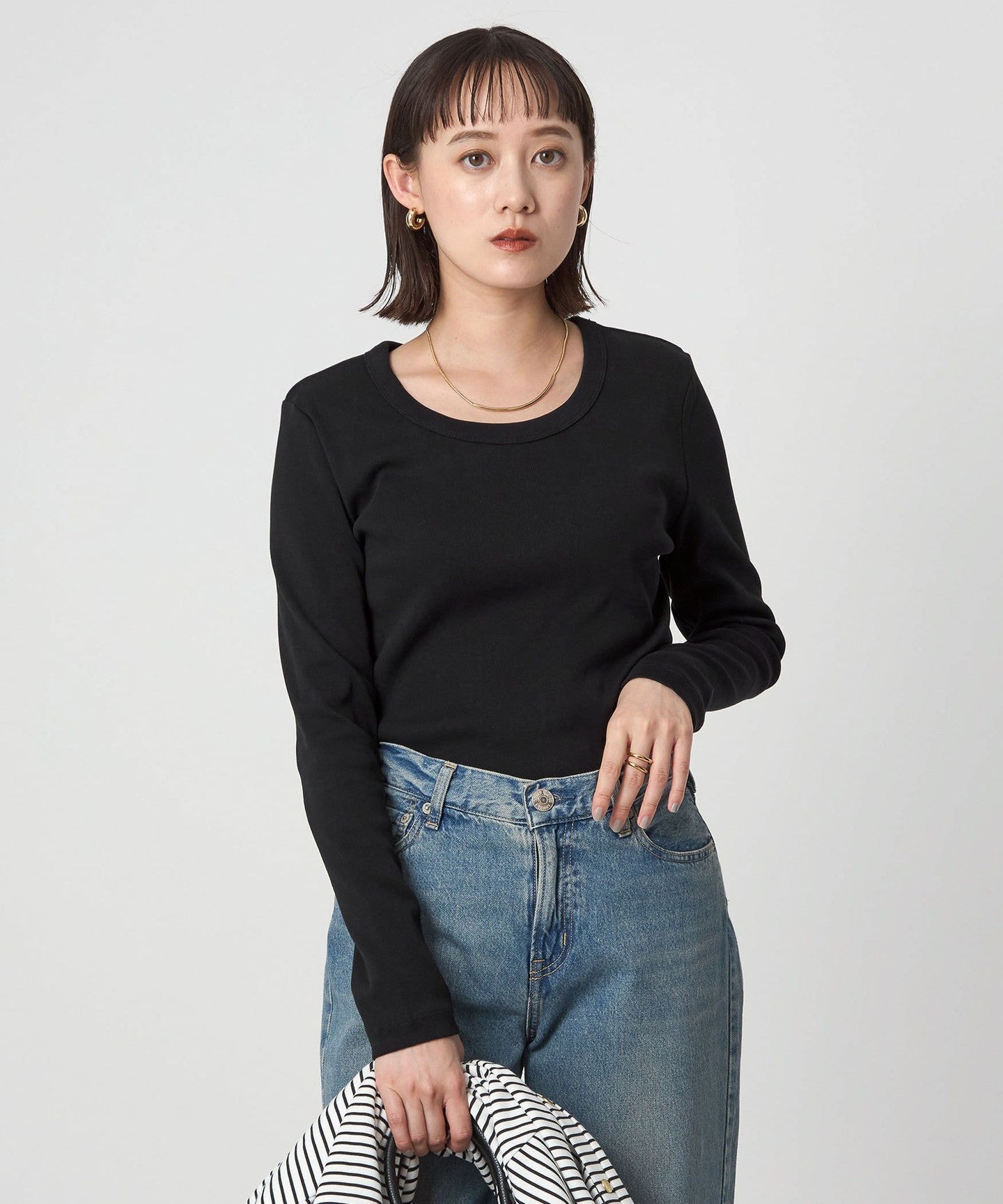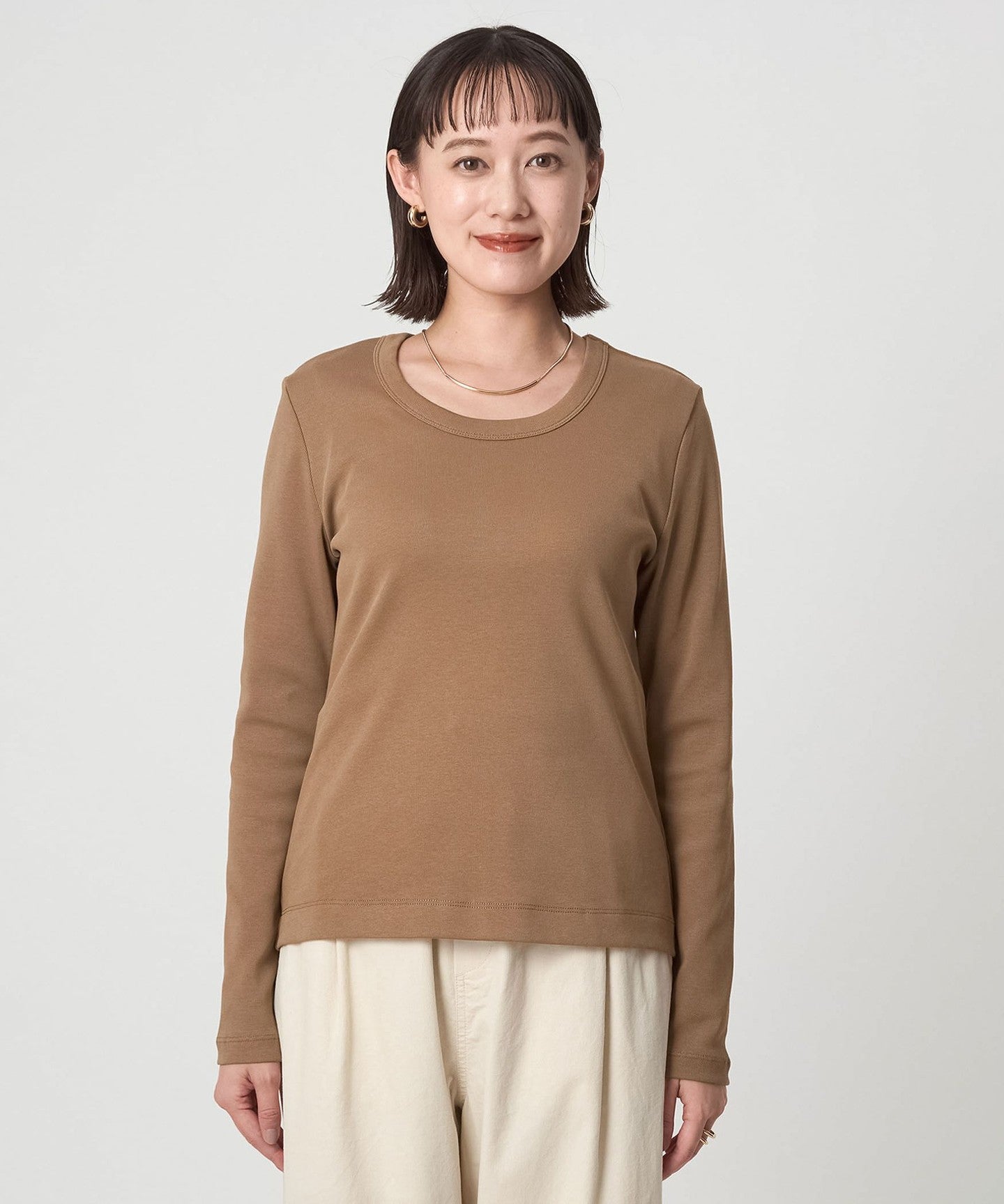 A long-sleeved T-shirt with a relaxed U-neck design.