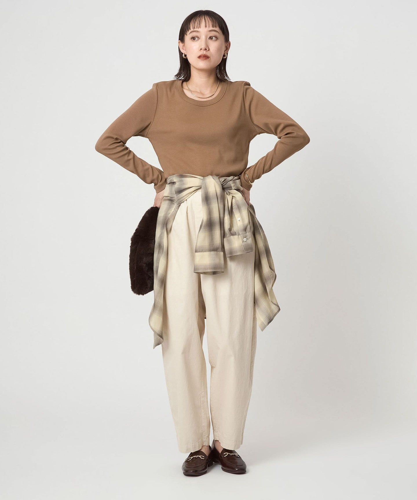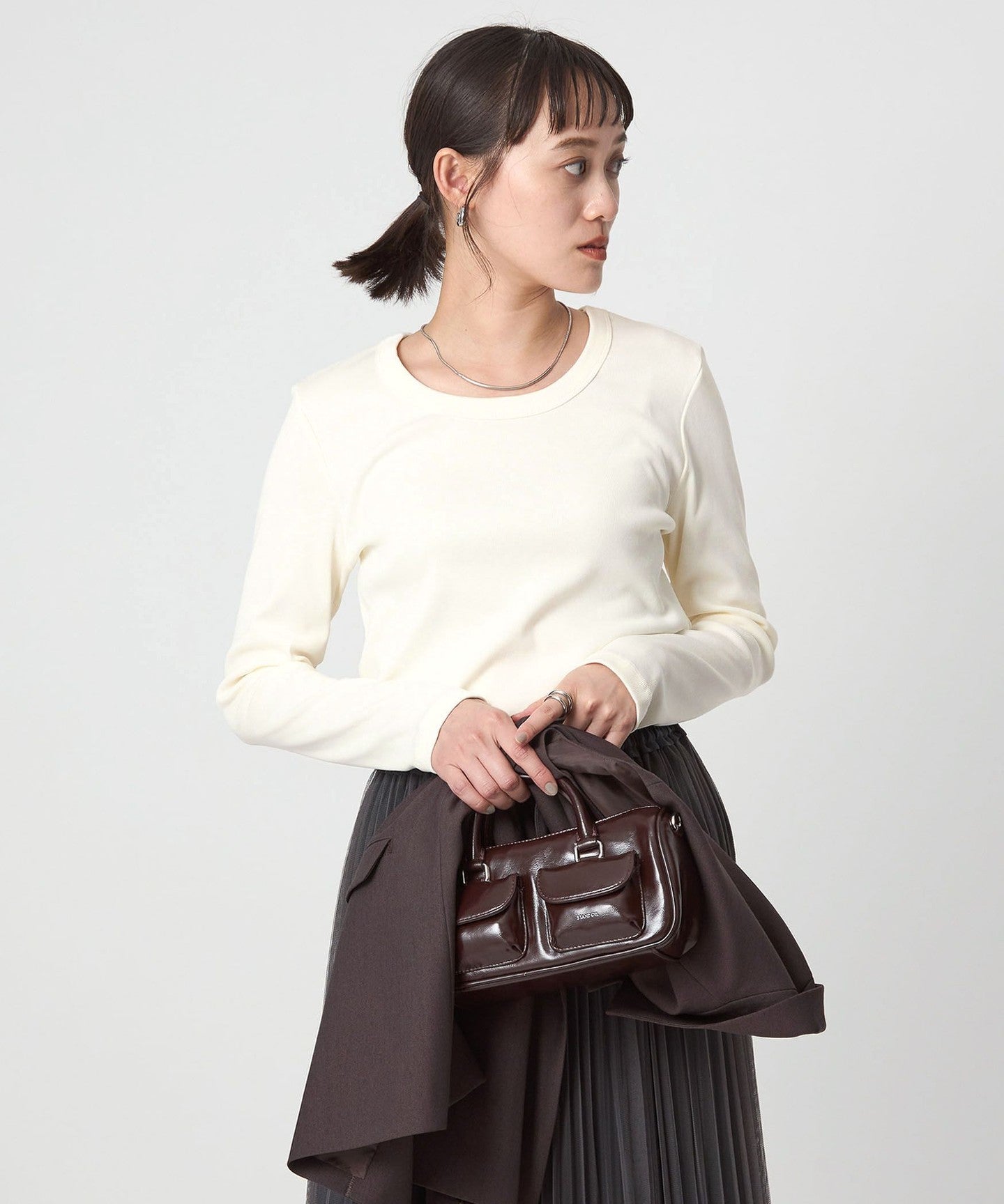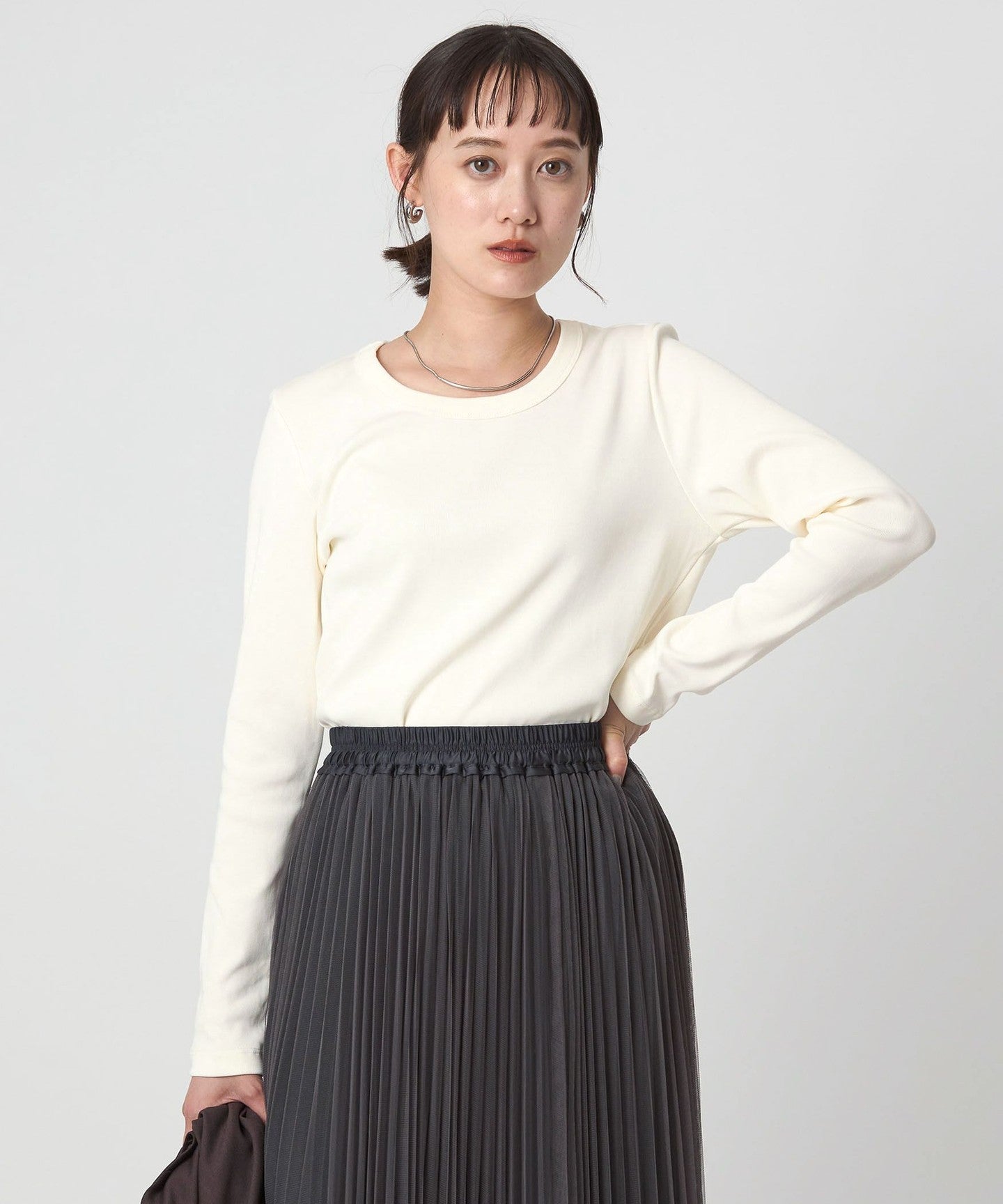 A long-sleeved T-shirt with a relaxed U-neck design.