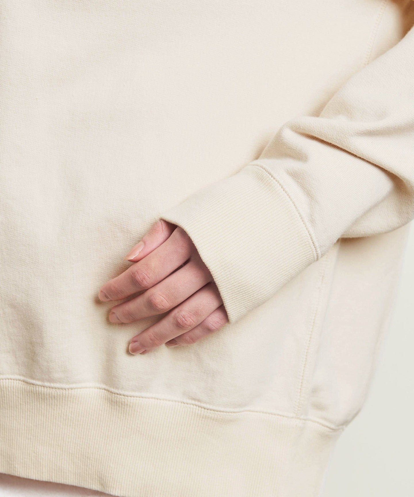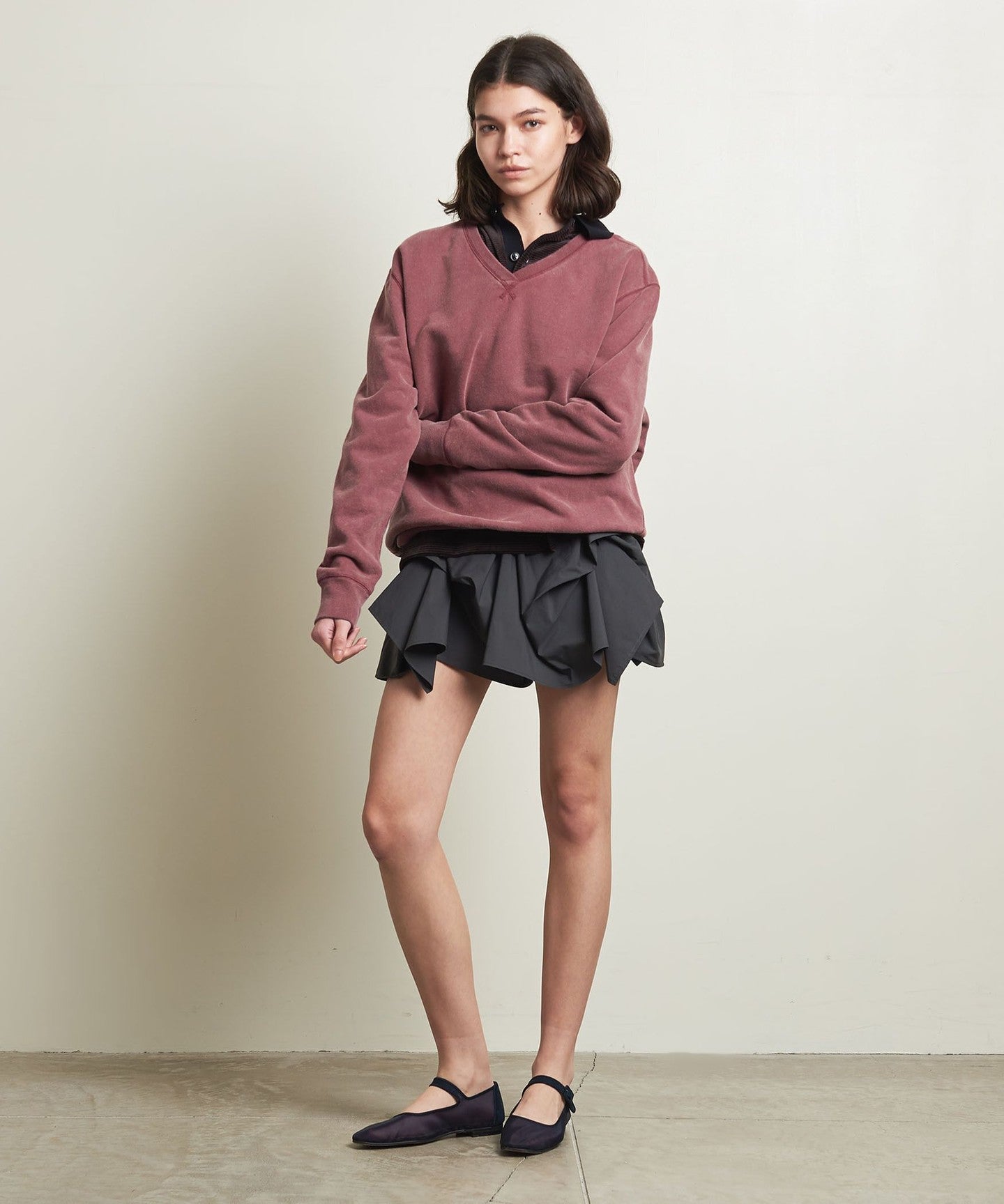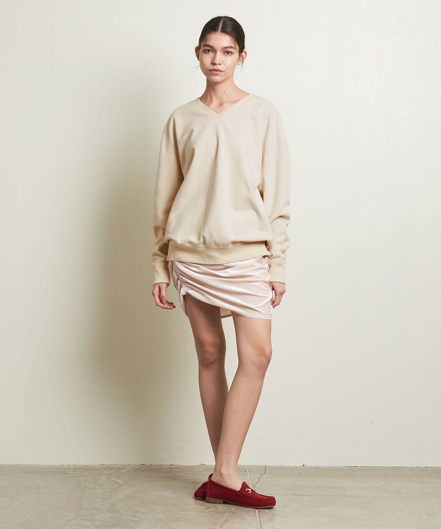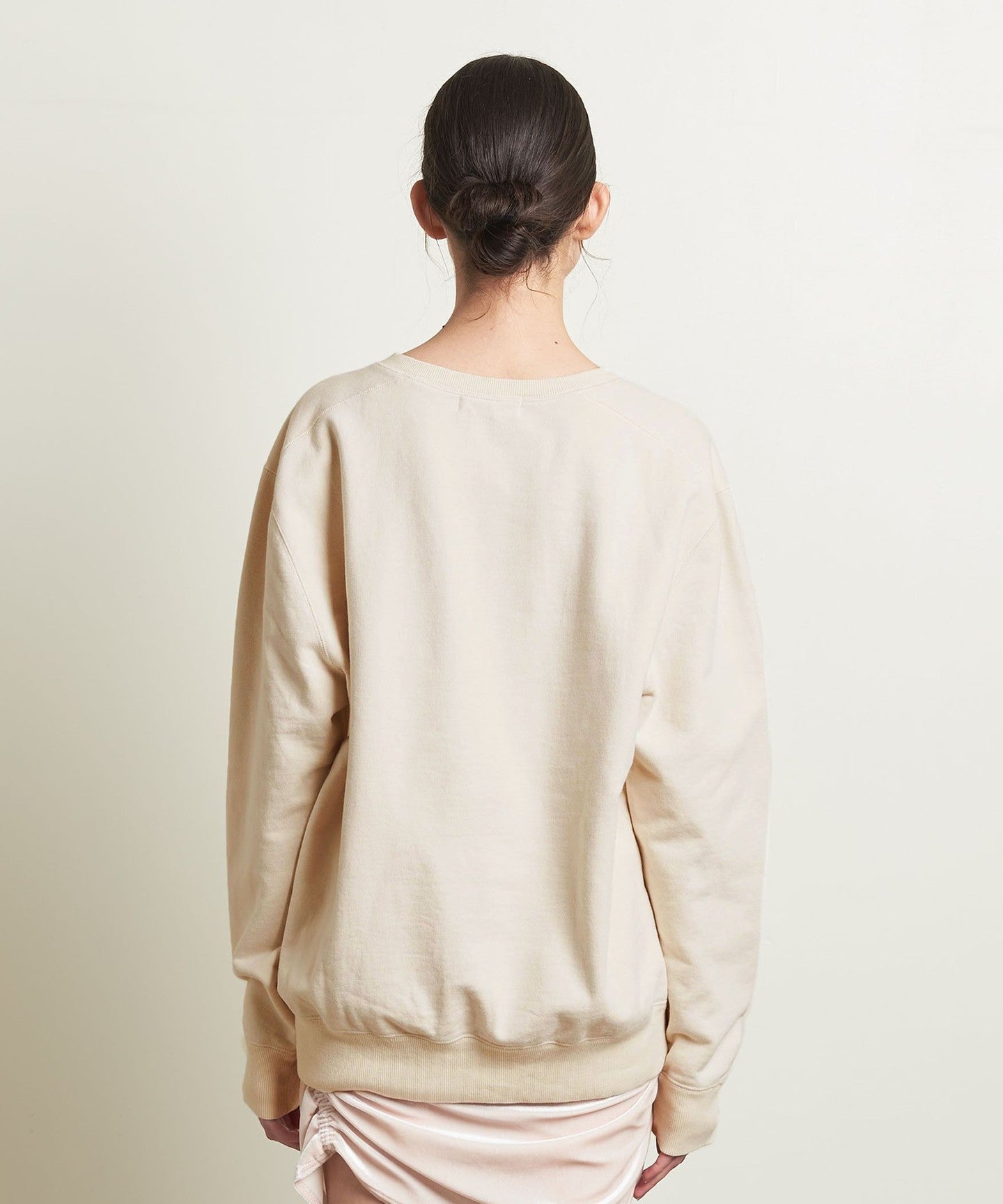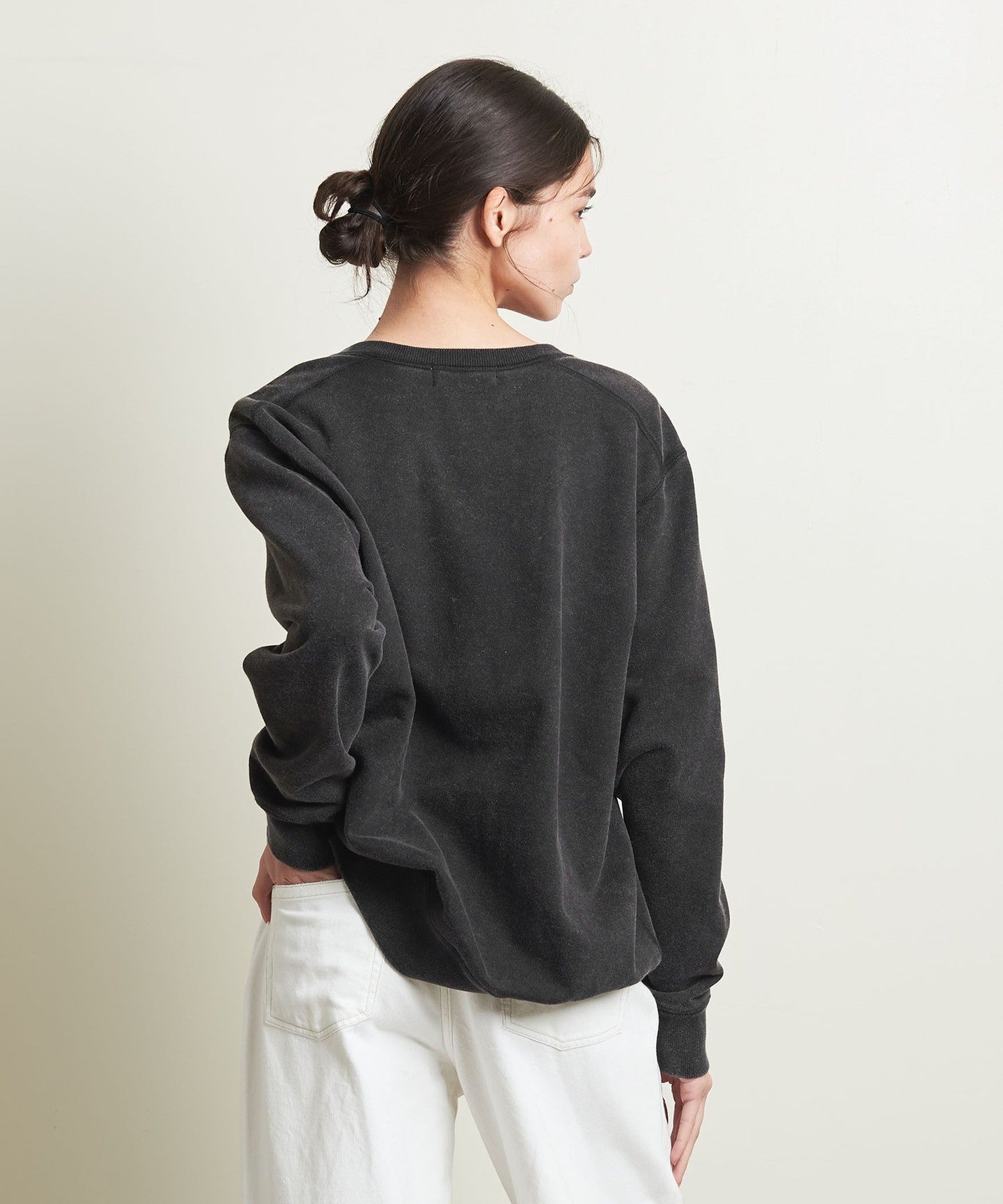 The collar is a V-neck, so you can enjoy a different feel than a crew neck sweatshirt.