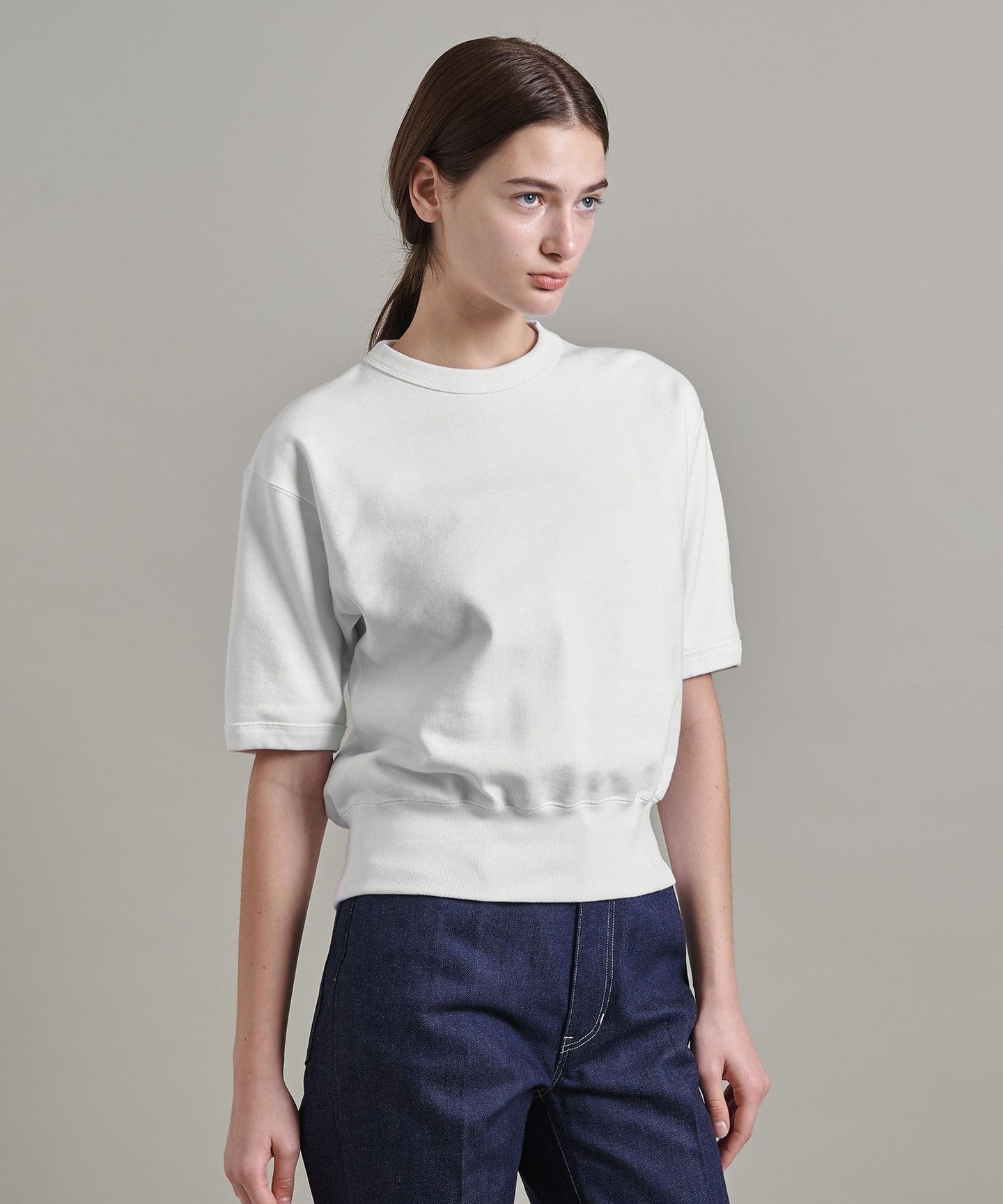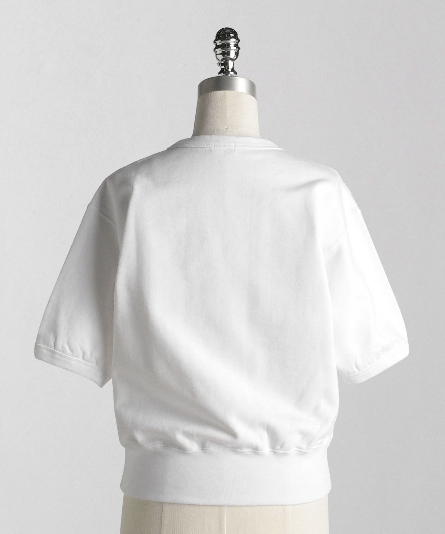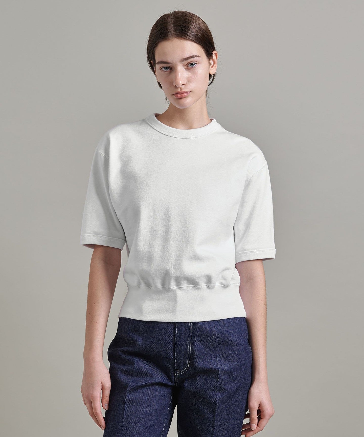 A retro and sporty short-sleeved sweatshirt with a key point being the balance between the sleeves and body.