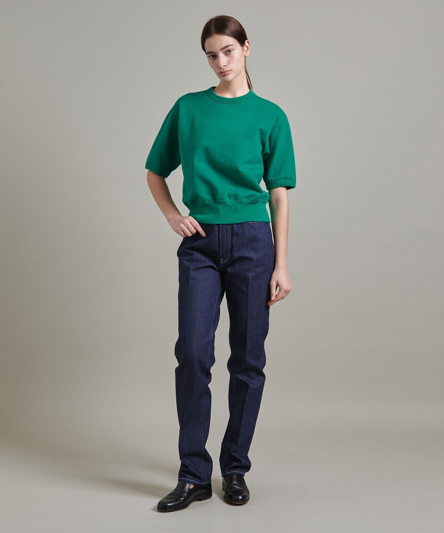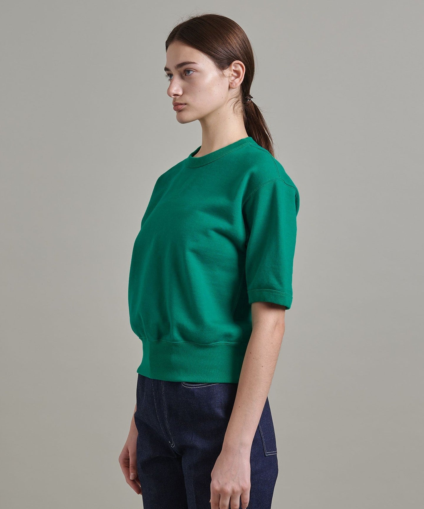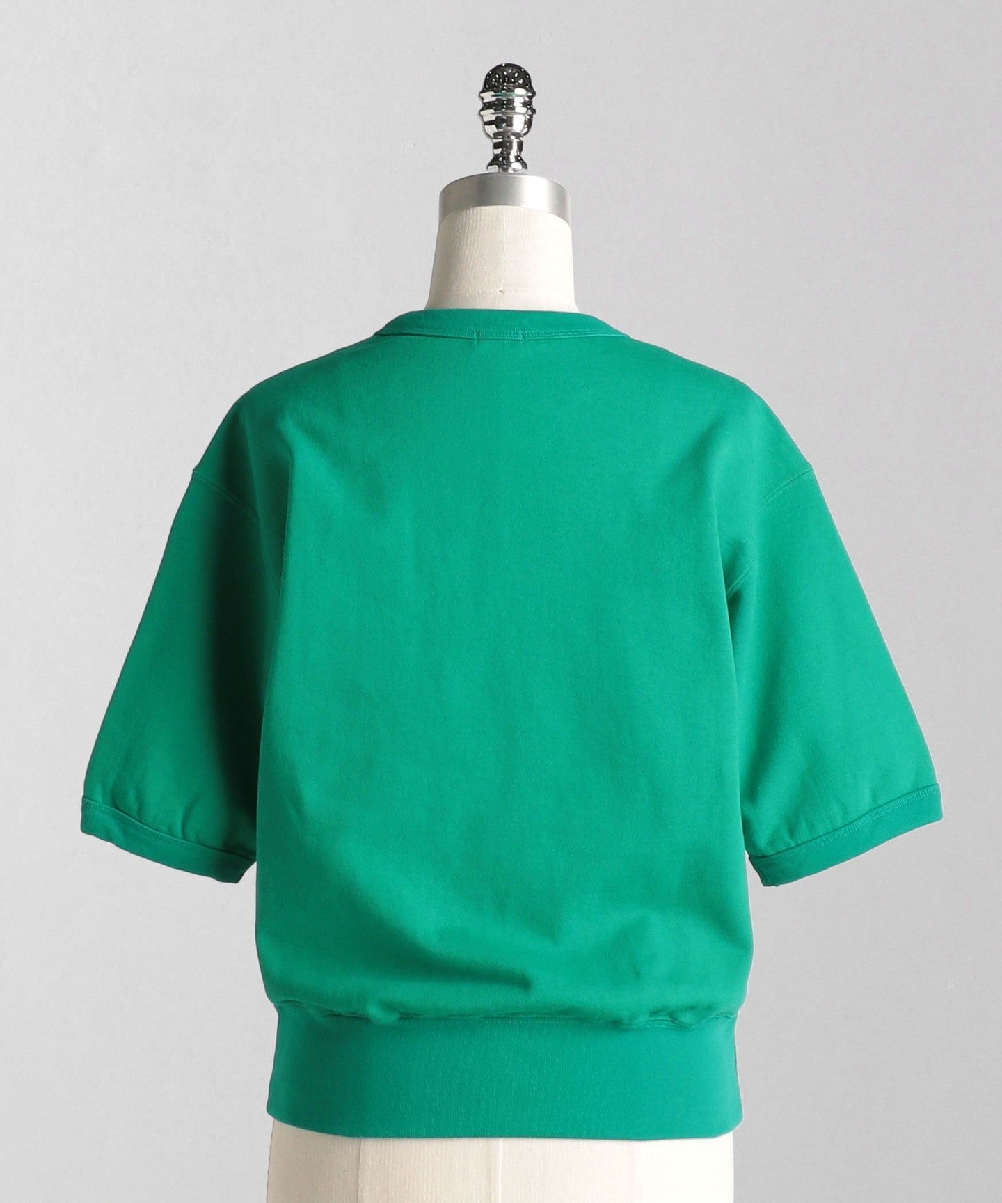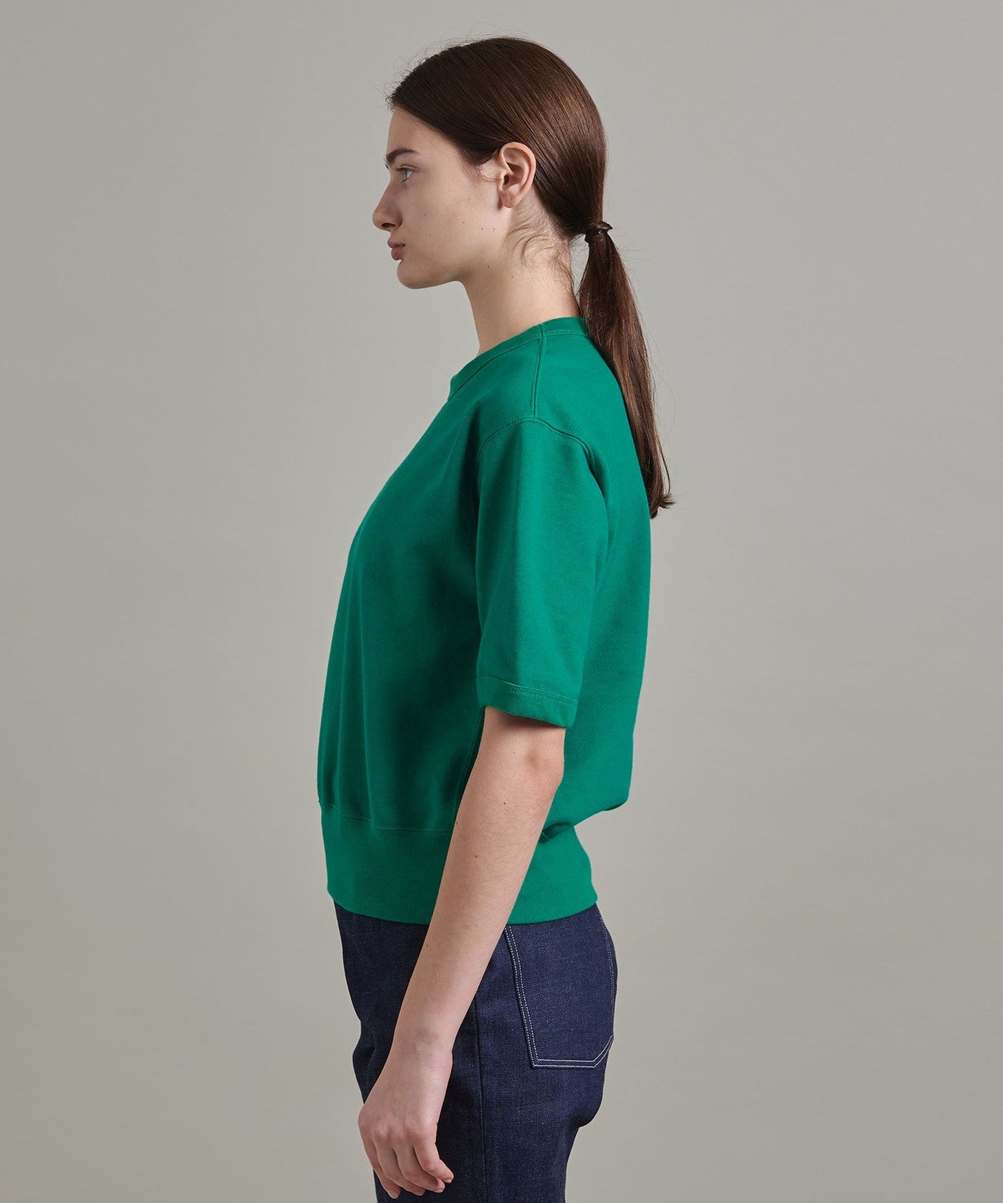 A retro and sporty short-sleeved sweatshirt with a key point being the balance between the sleeves and body.