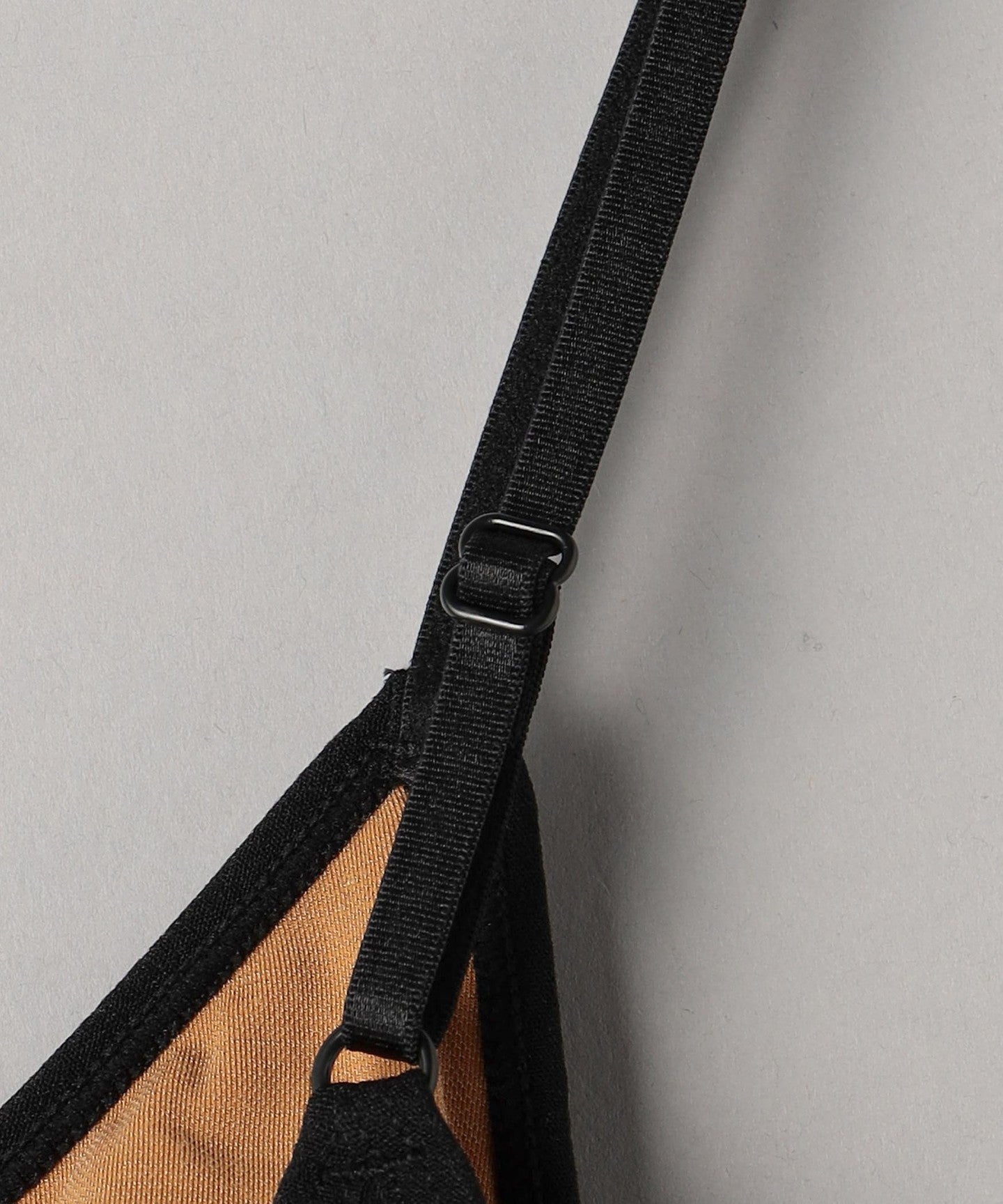 The cups are layered with free-cutting material on the inner side, giving a relaxed feeling without restricting the body, and the elastic under the bust area ensures a secure and comfortable fit.