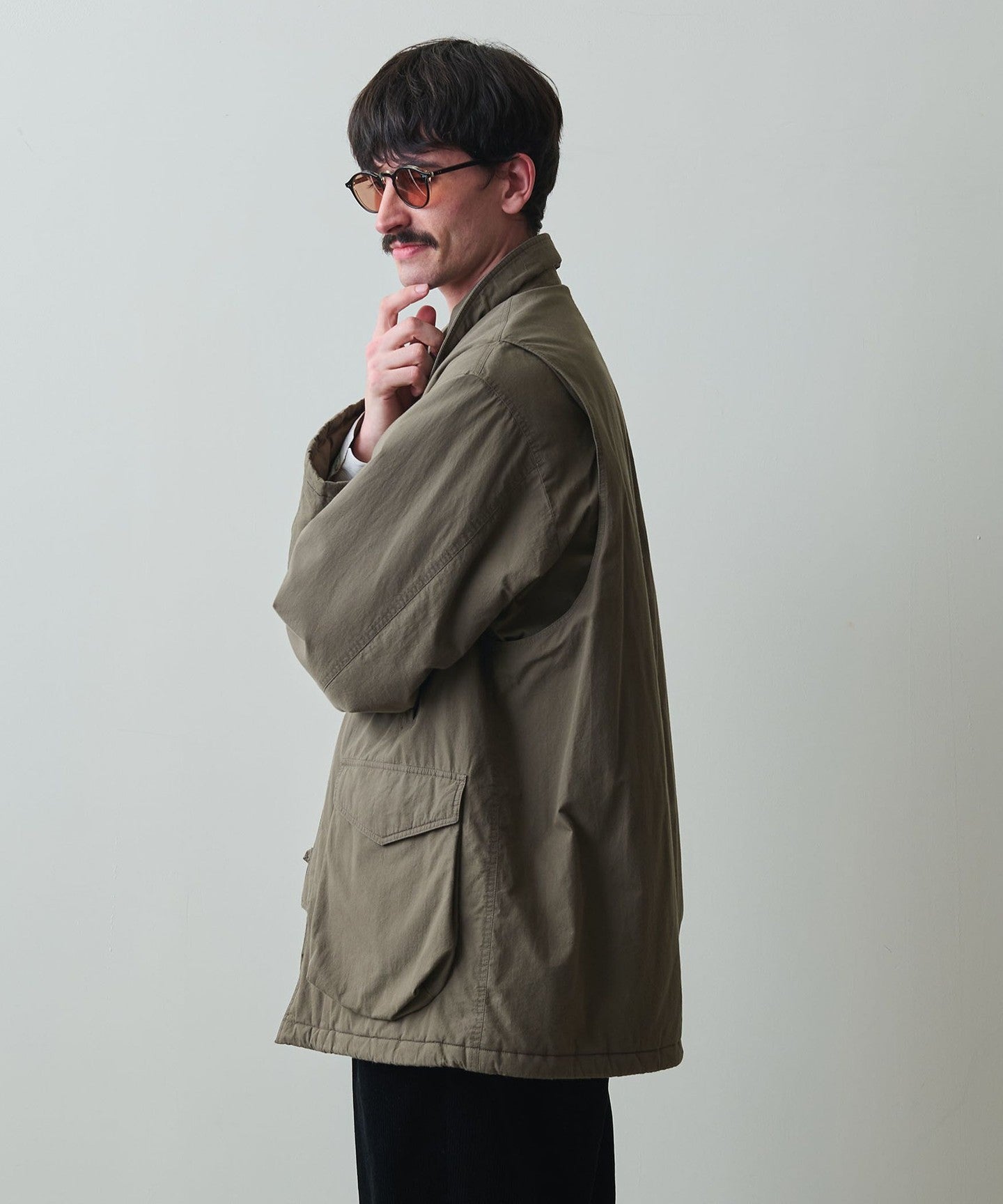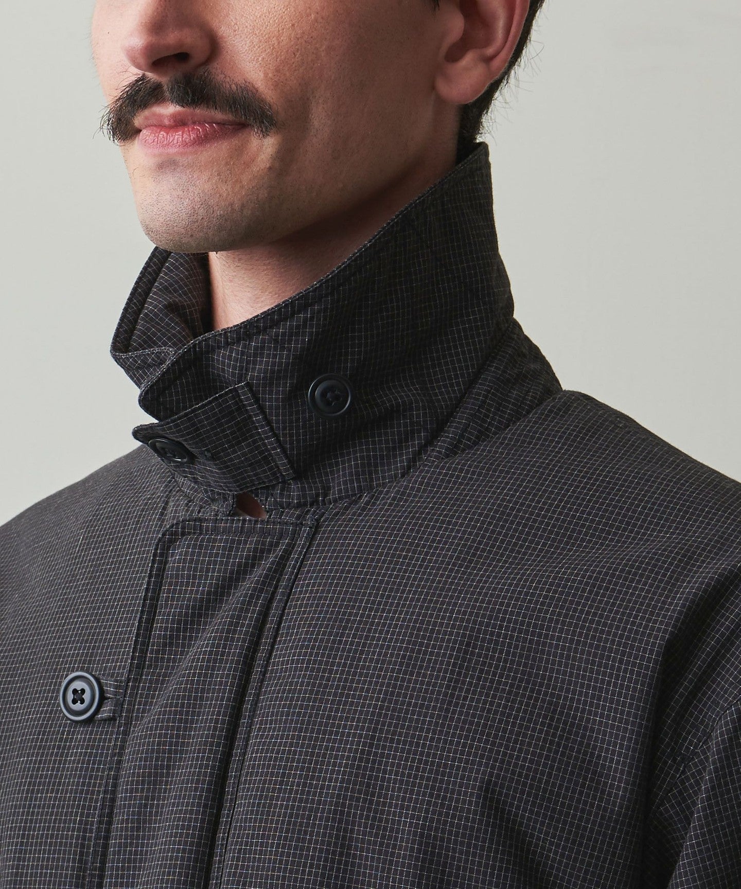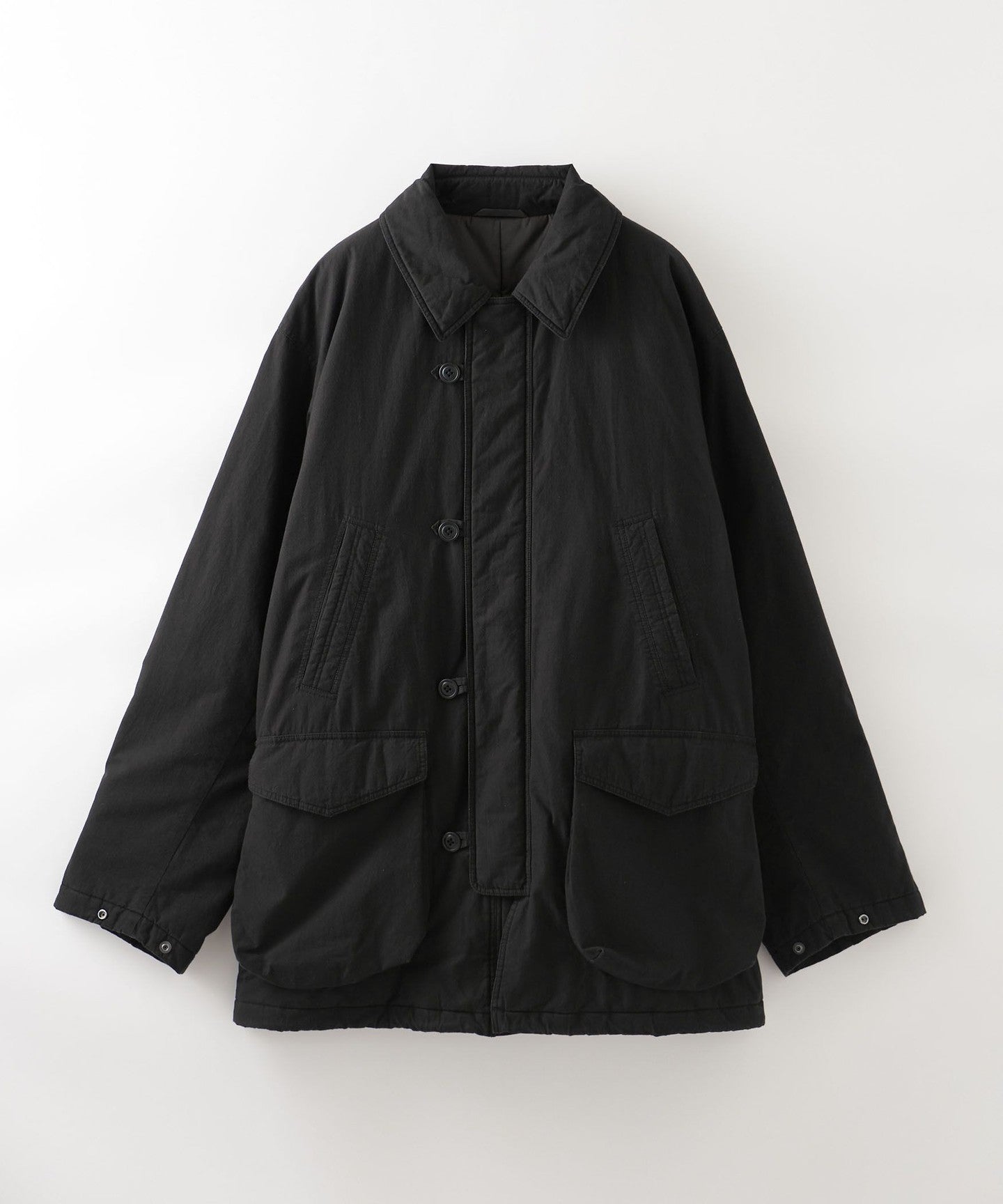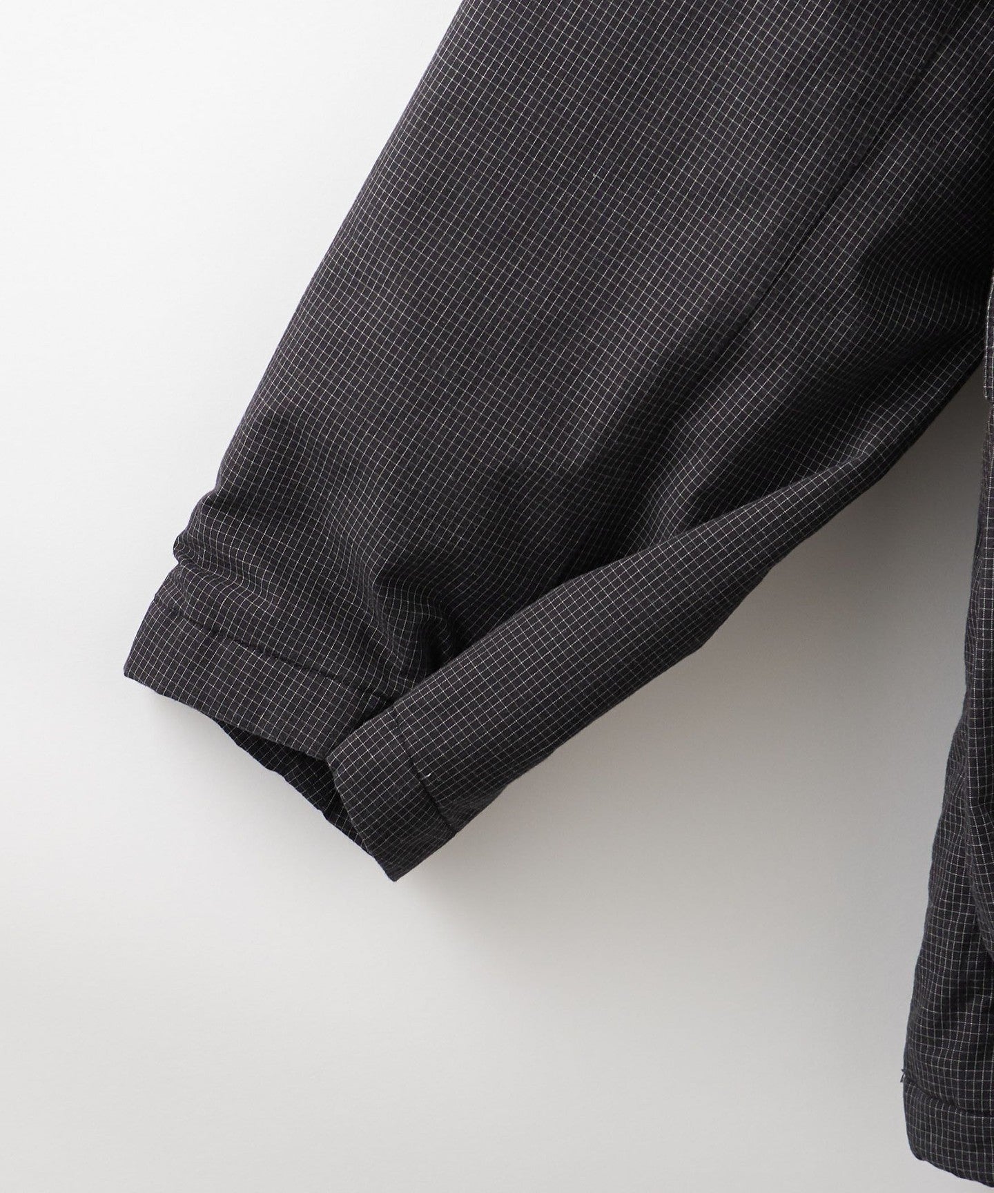 The silhouette can be adjusted using the snap buttons on the cuffs and the drawstring at the hem.