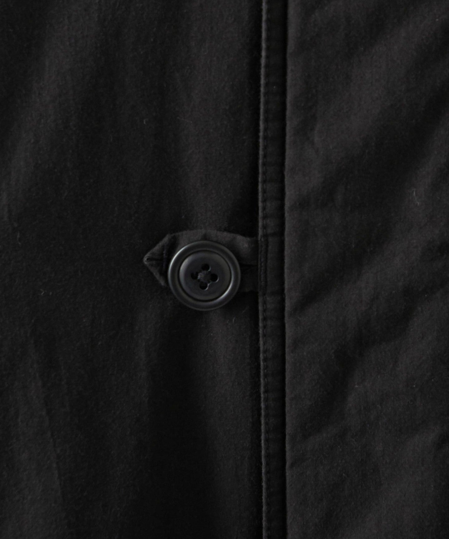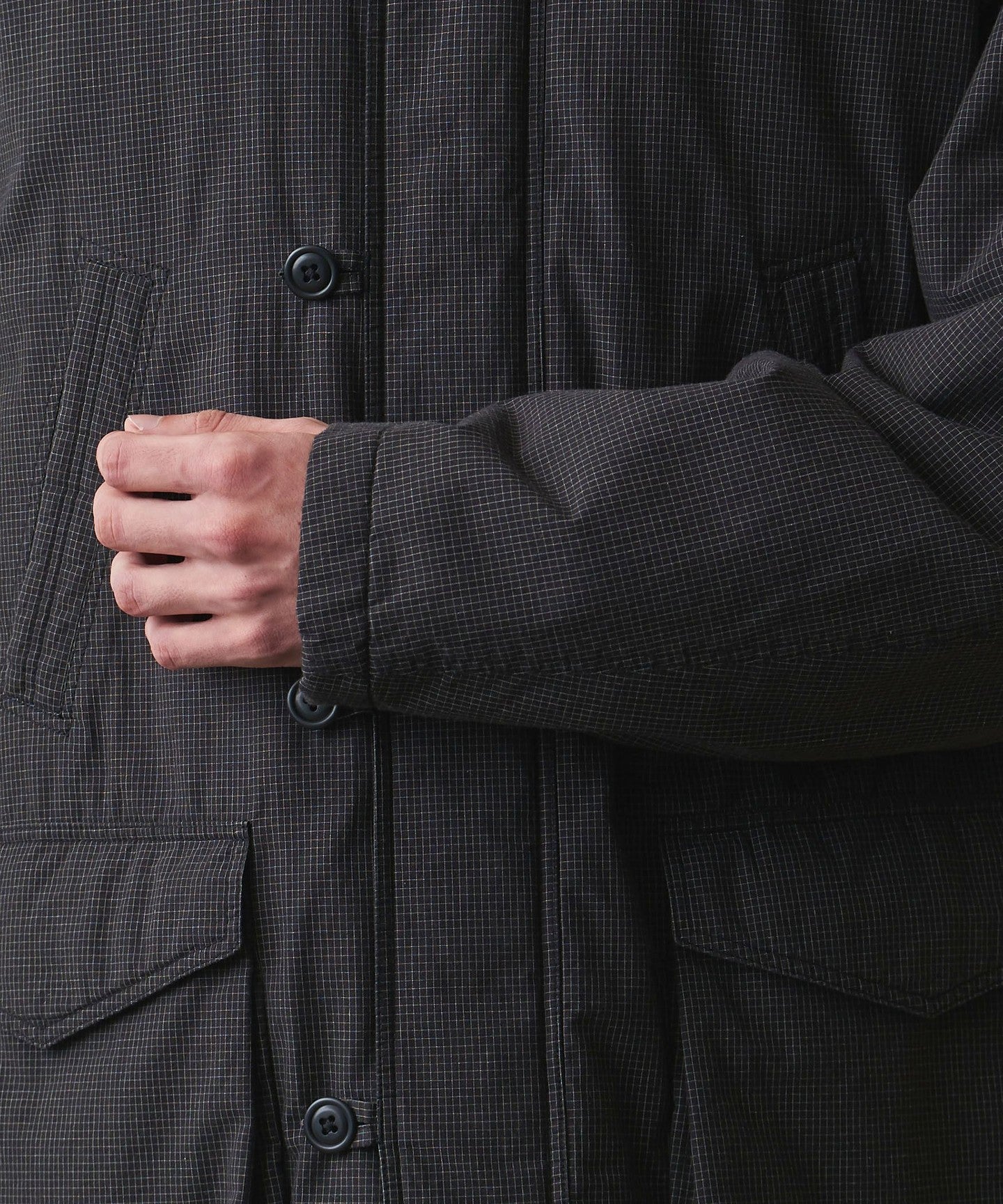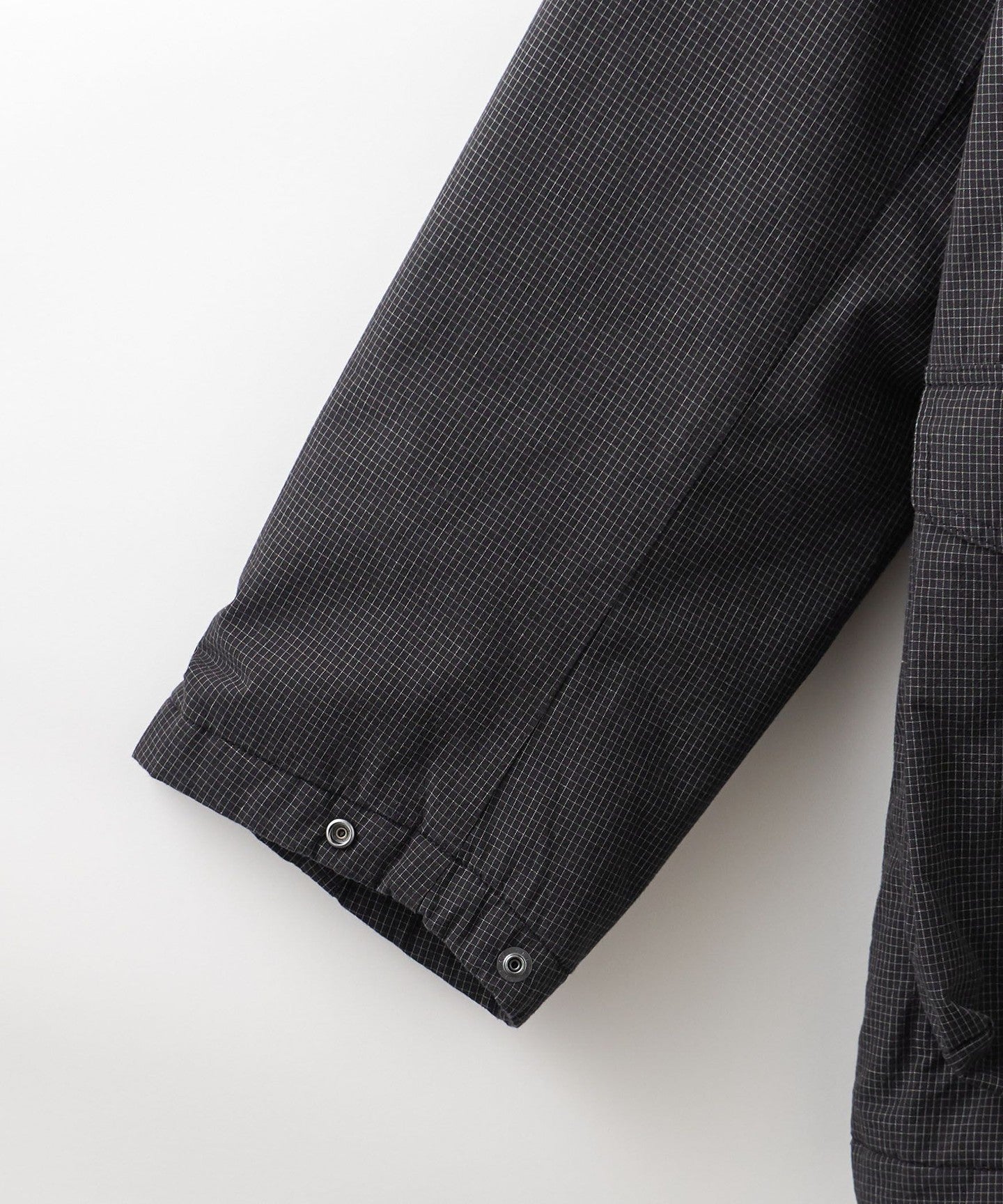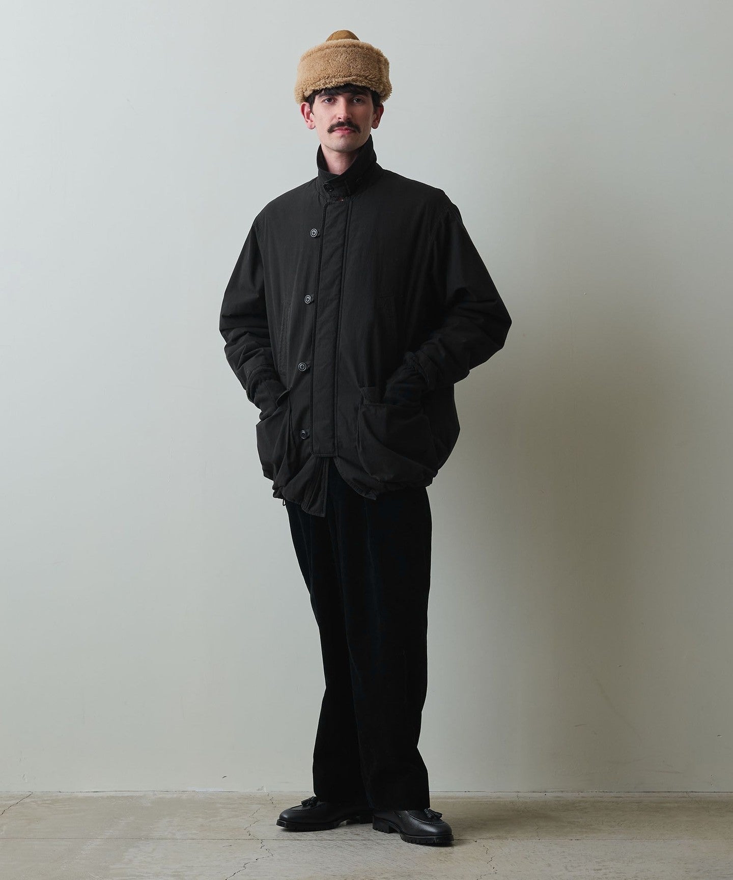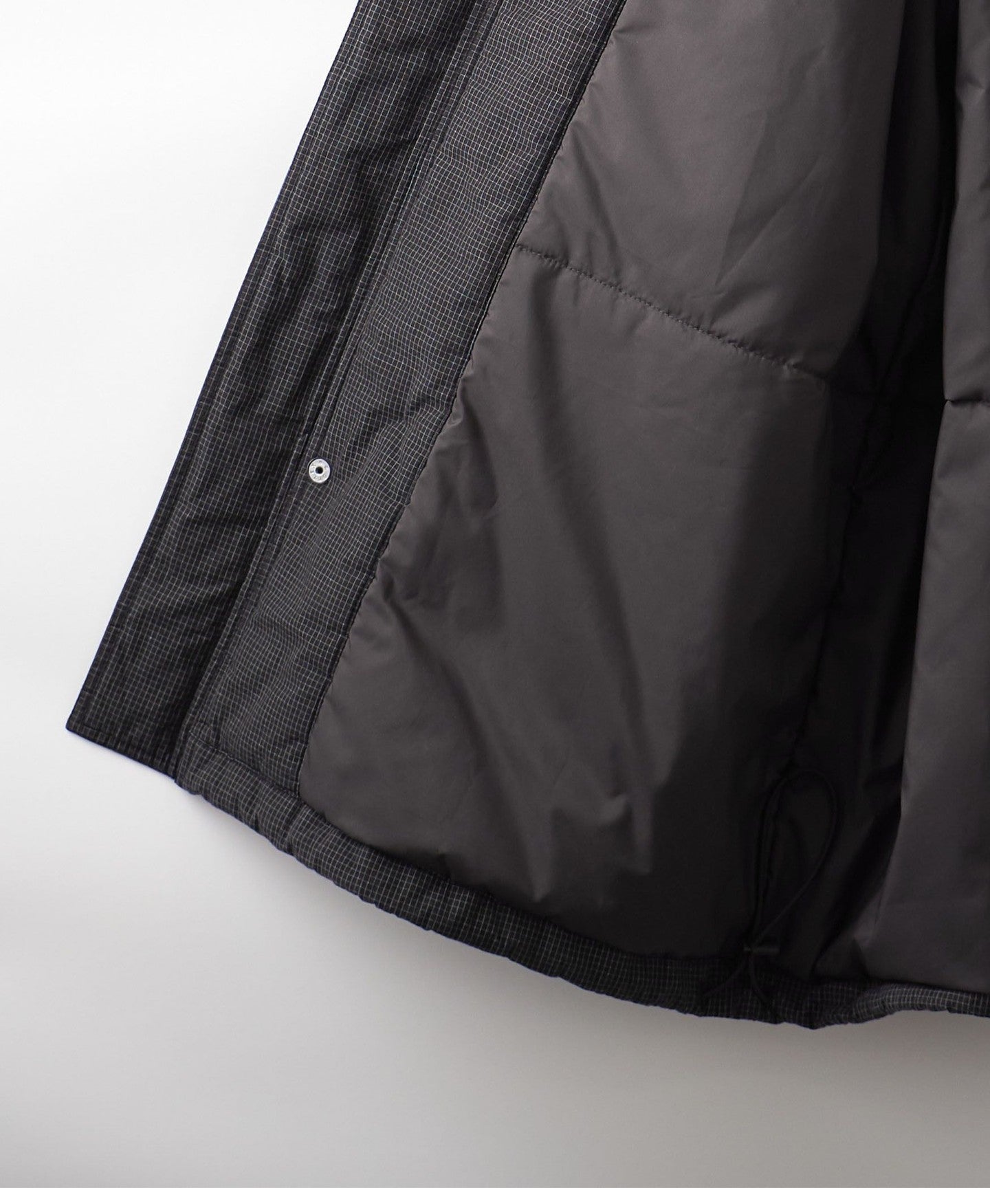 The silhouette can be adjusted using the snap buttons on the cuffs and the drawstring at the hem.