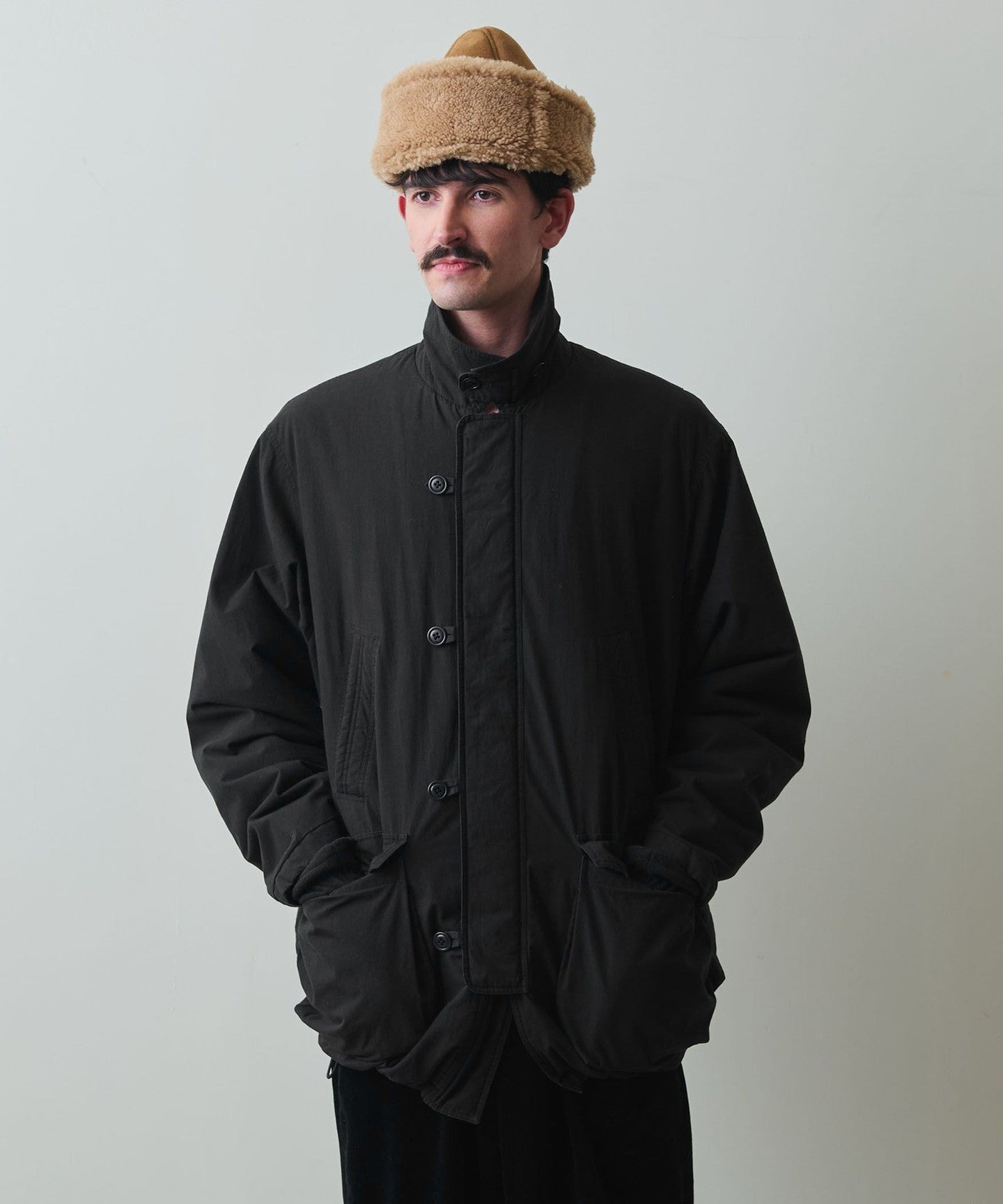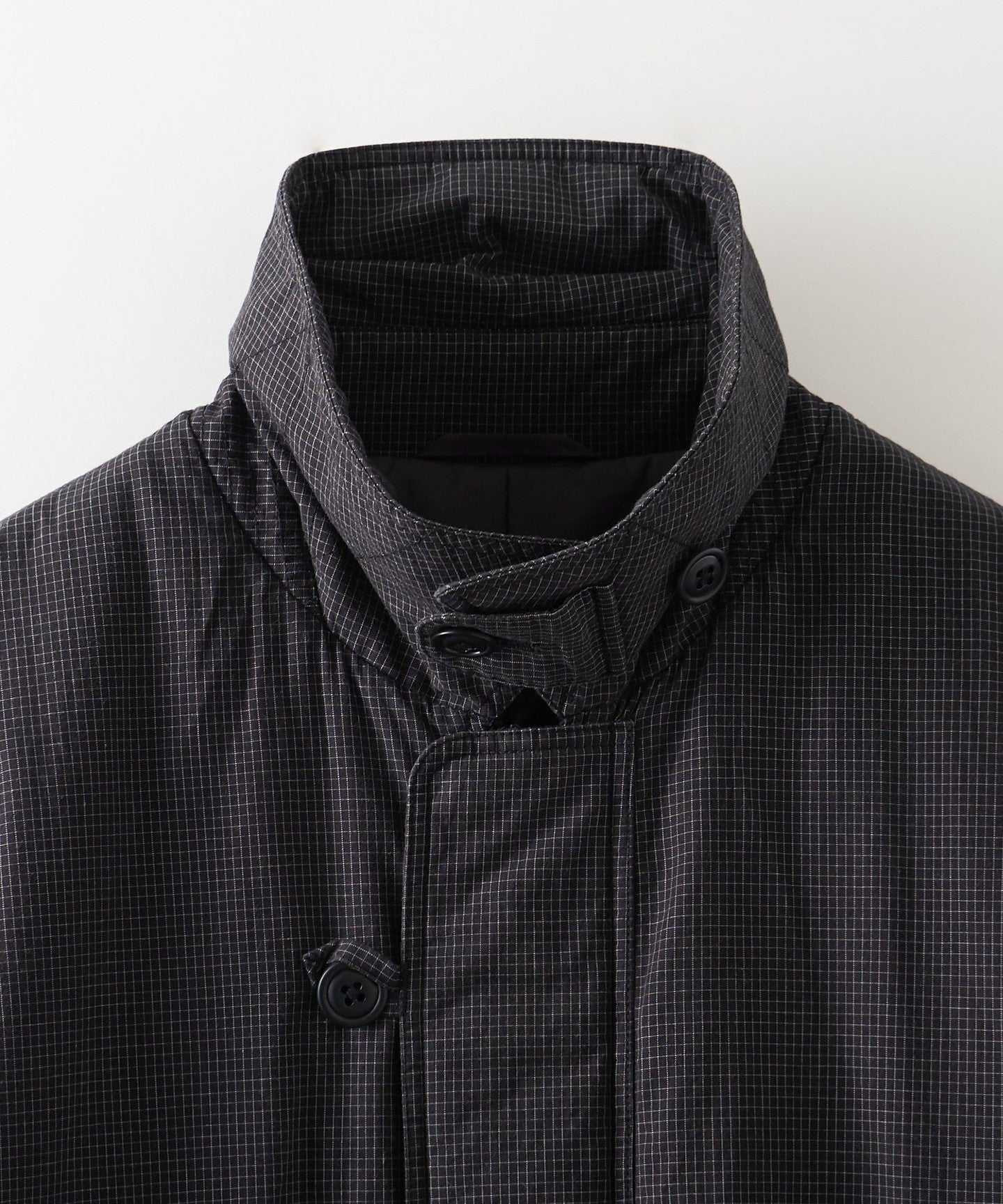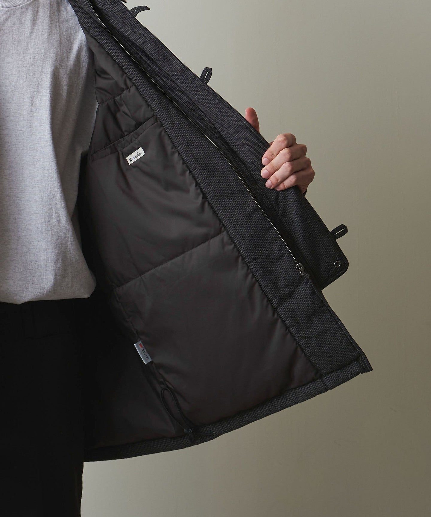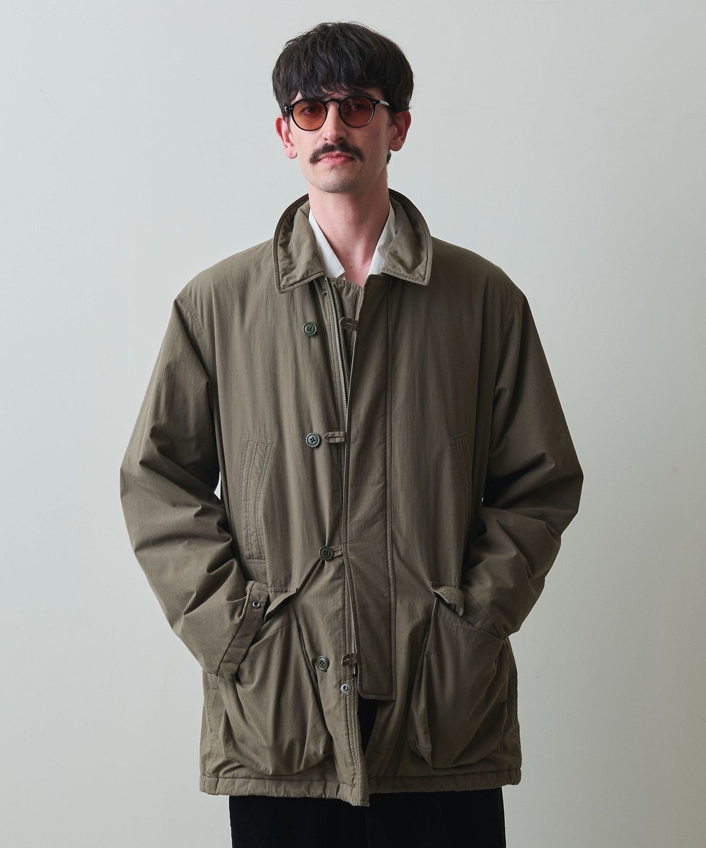The silhouette can be adjusted using the snap buttons on the cuffs and the drawstring at the hem.