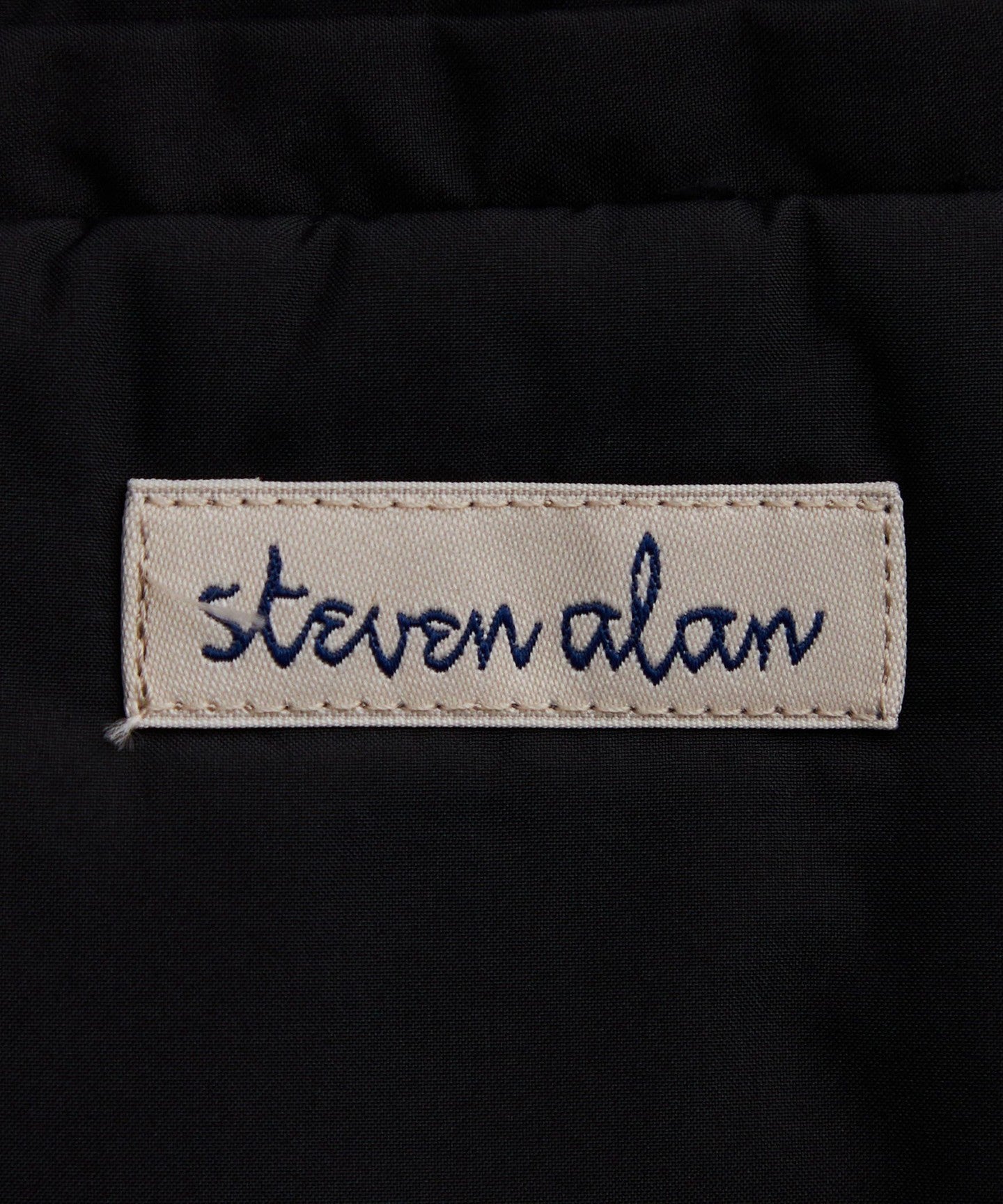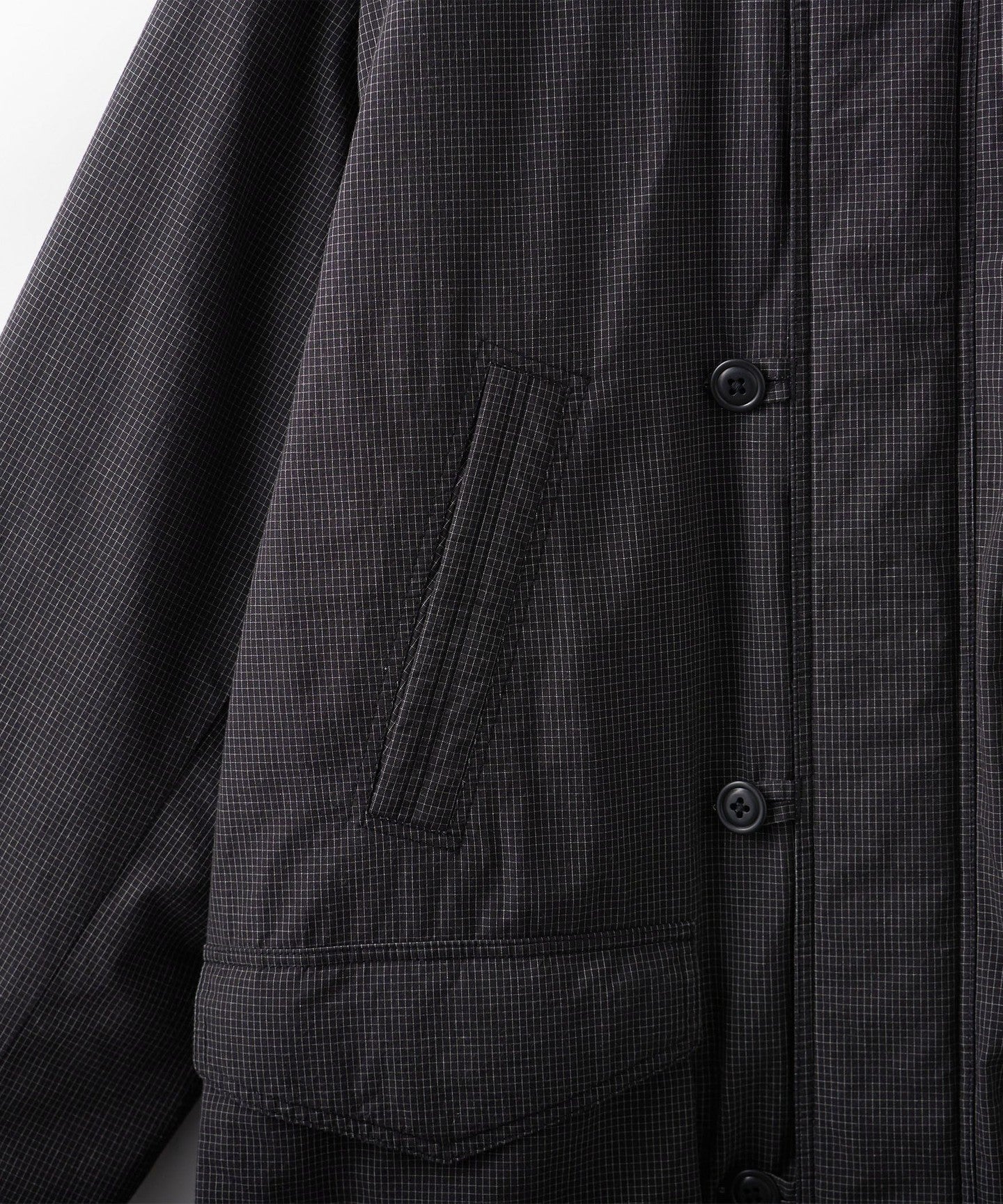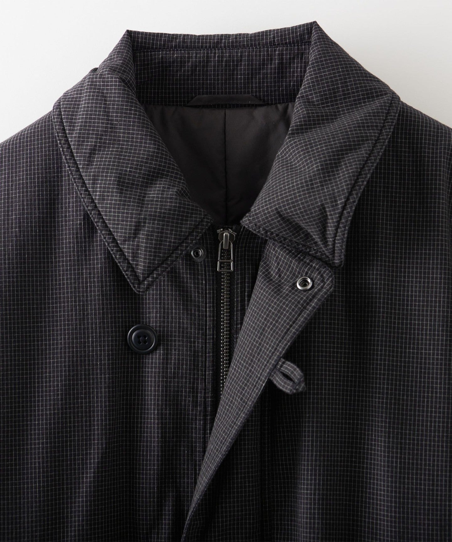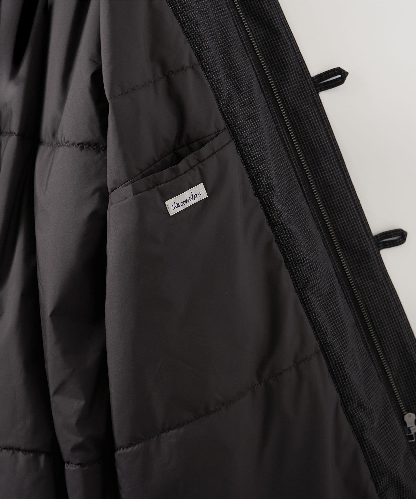 The silhouette can be adjusted using the snap buttons on the cuffs and the drawstring at the hem.