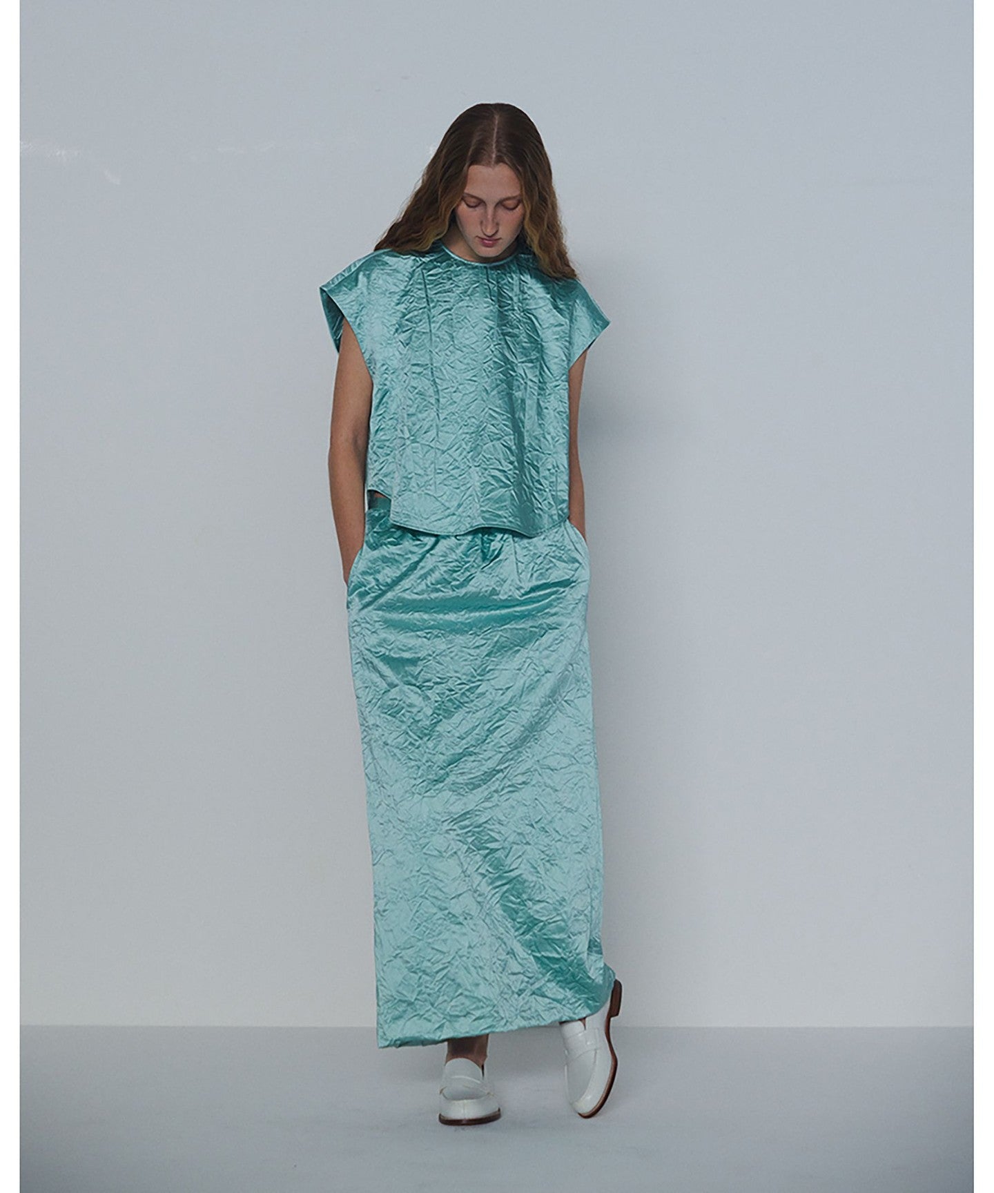Wrinkled finish with a craft feel EXTERIOR This is a unique piece made from rich crushed satin material.
