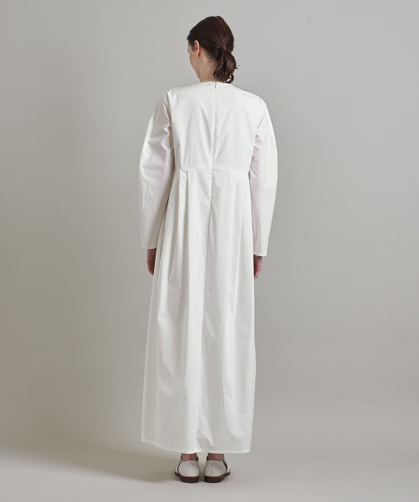 This dress has a relaxed fit, sleeve silhouette and tuck details that give it an ethnic feel, while still maintaining a clean impression.