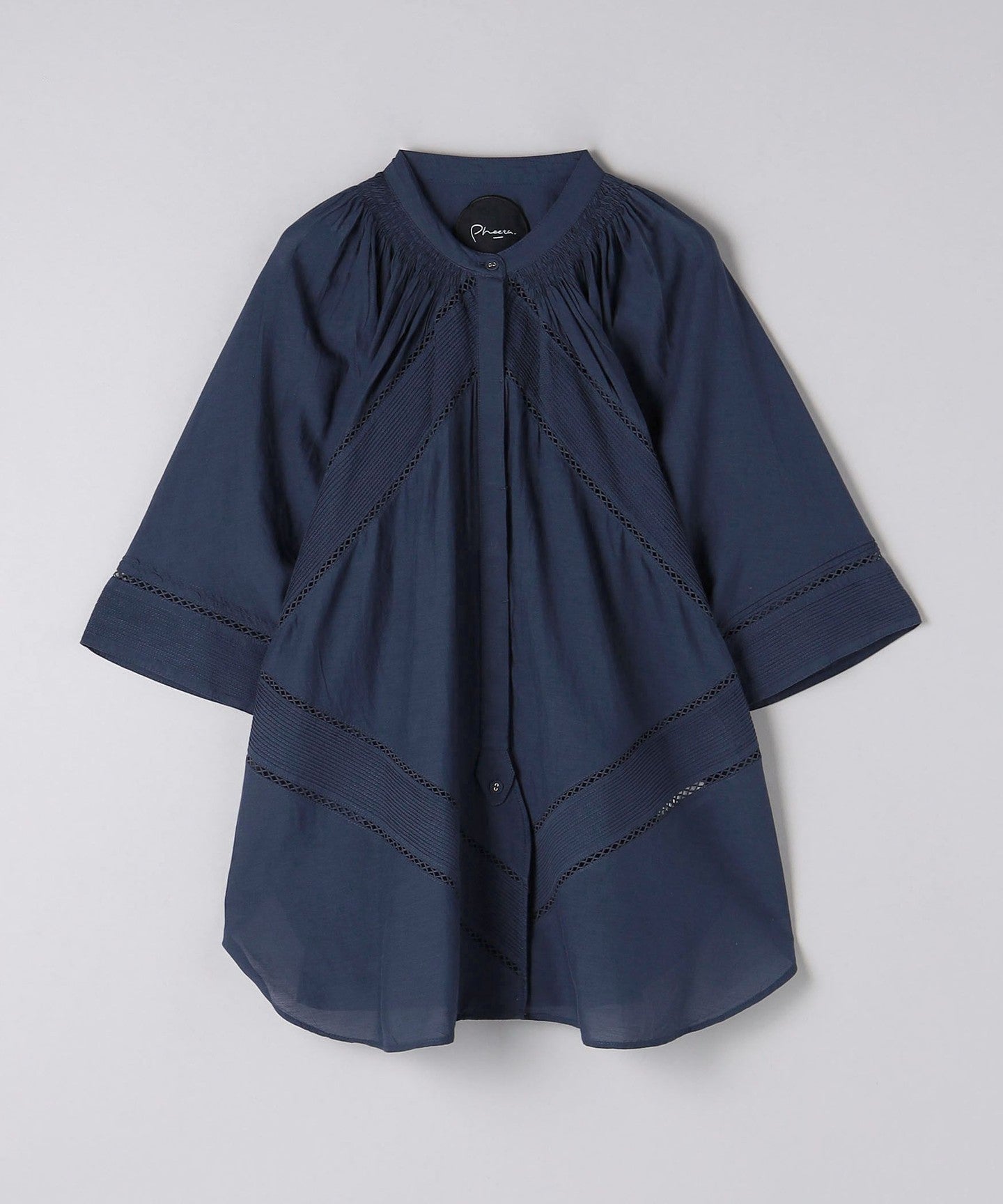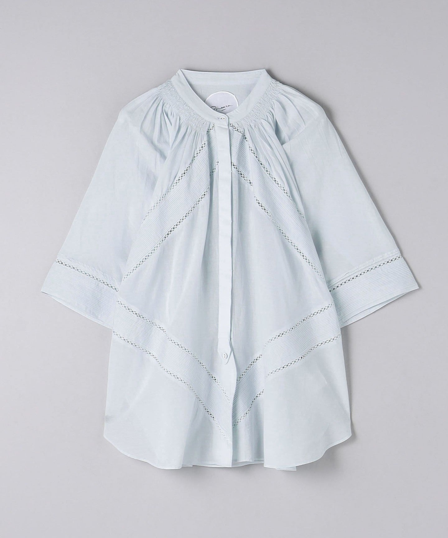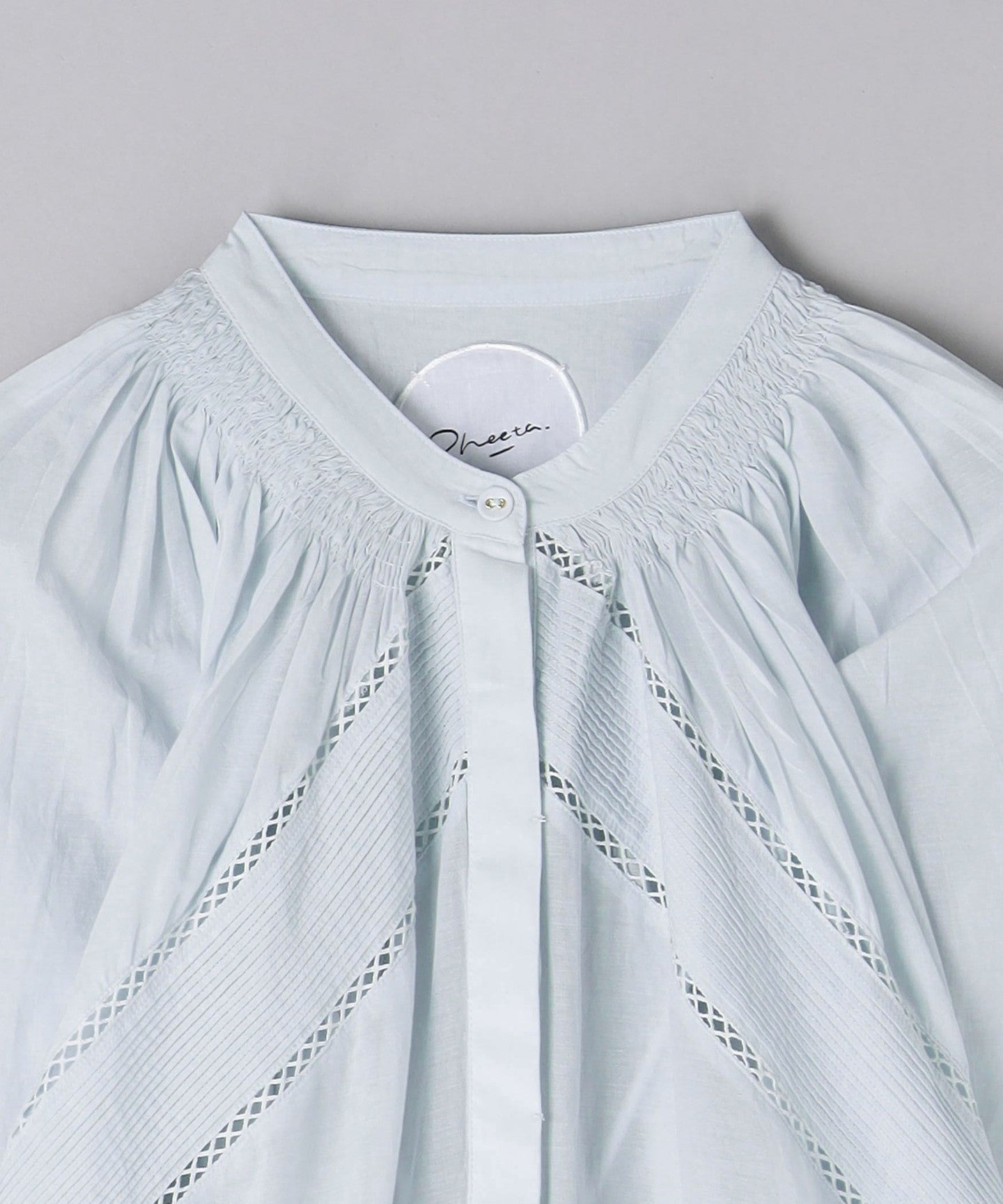 The beautiful, three-dimensional silhouette of the sleeves and body is created by delicate tucks that can only be folded by hand, and gathers that are sewn in place one by one with shirring elastic.