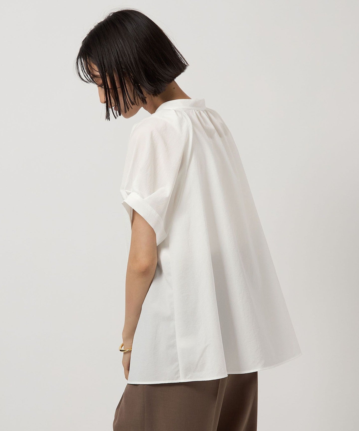 The tucks on the sleeves and gathers around the neck create a soft, three-dimensional look.