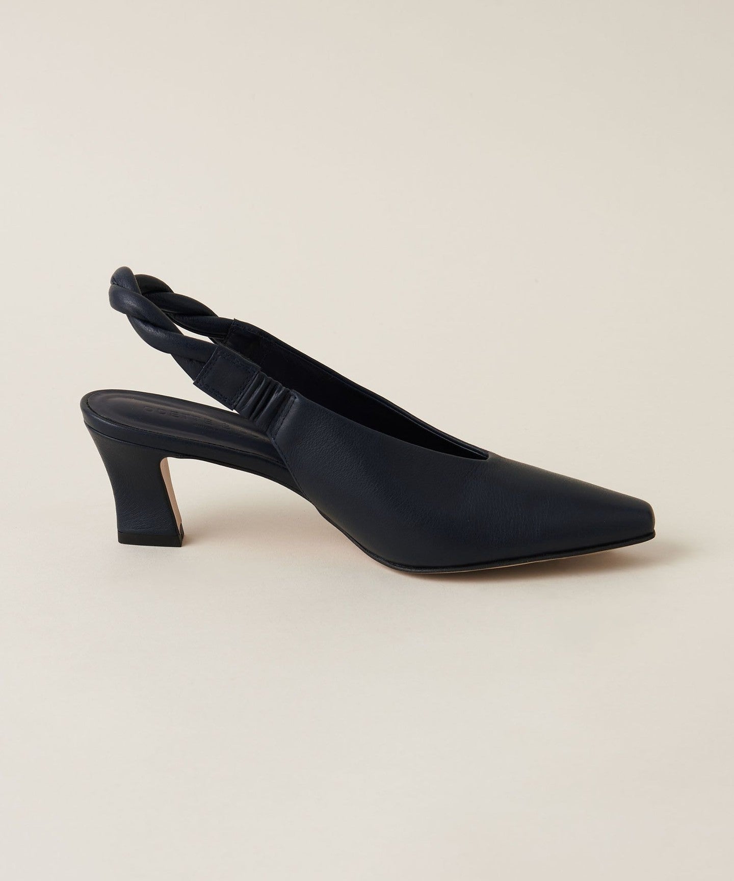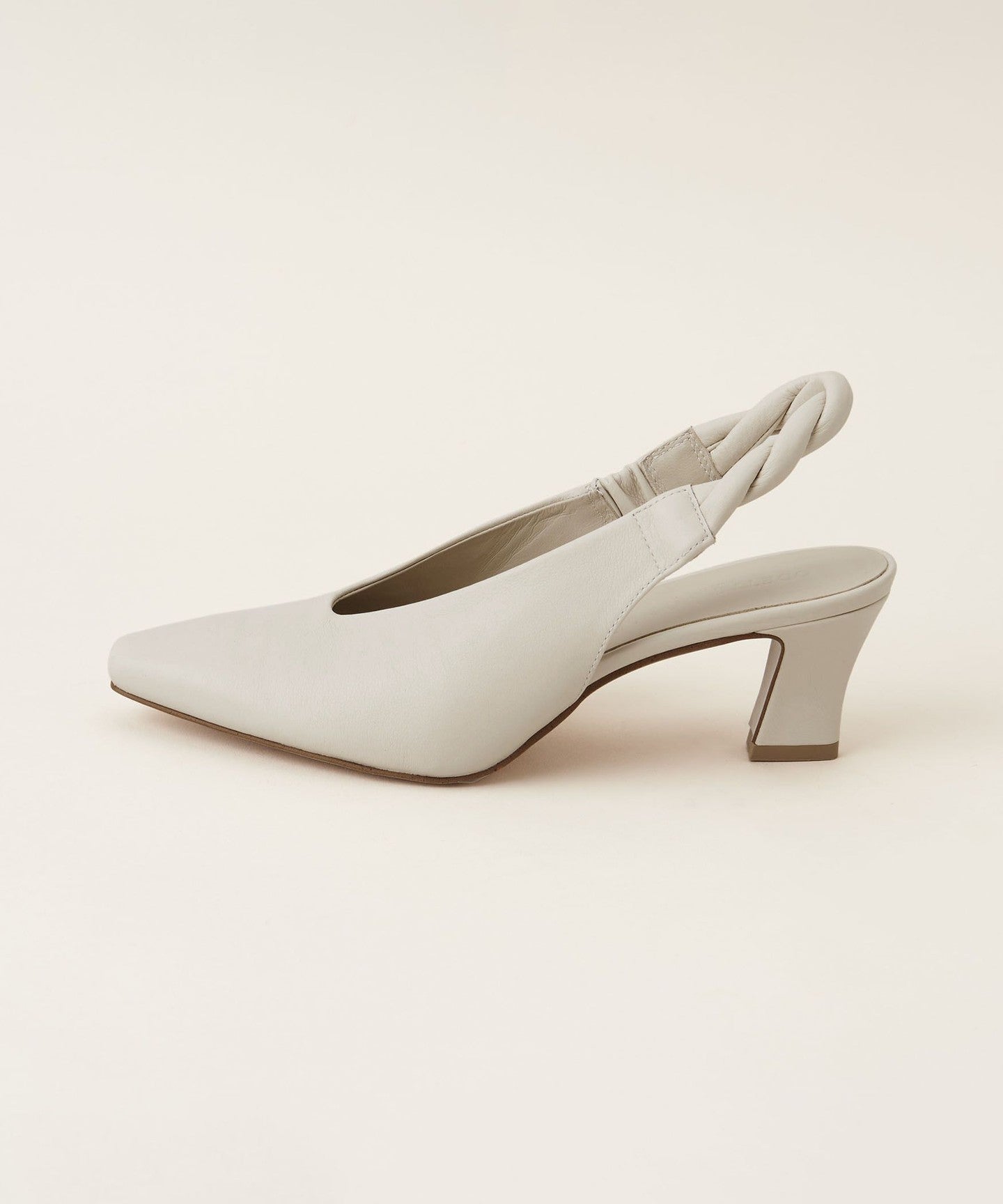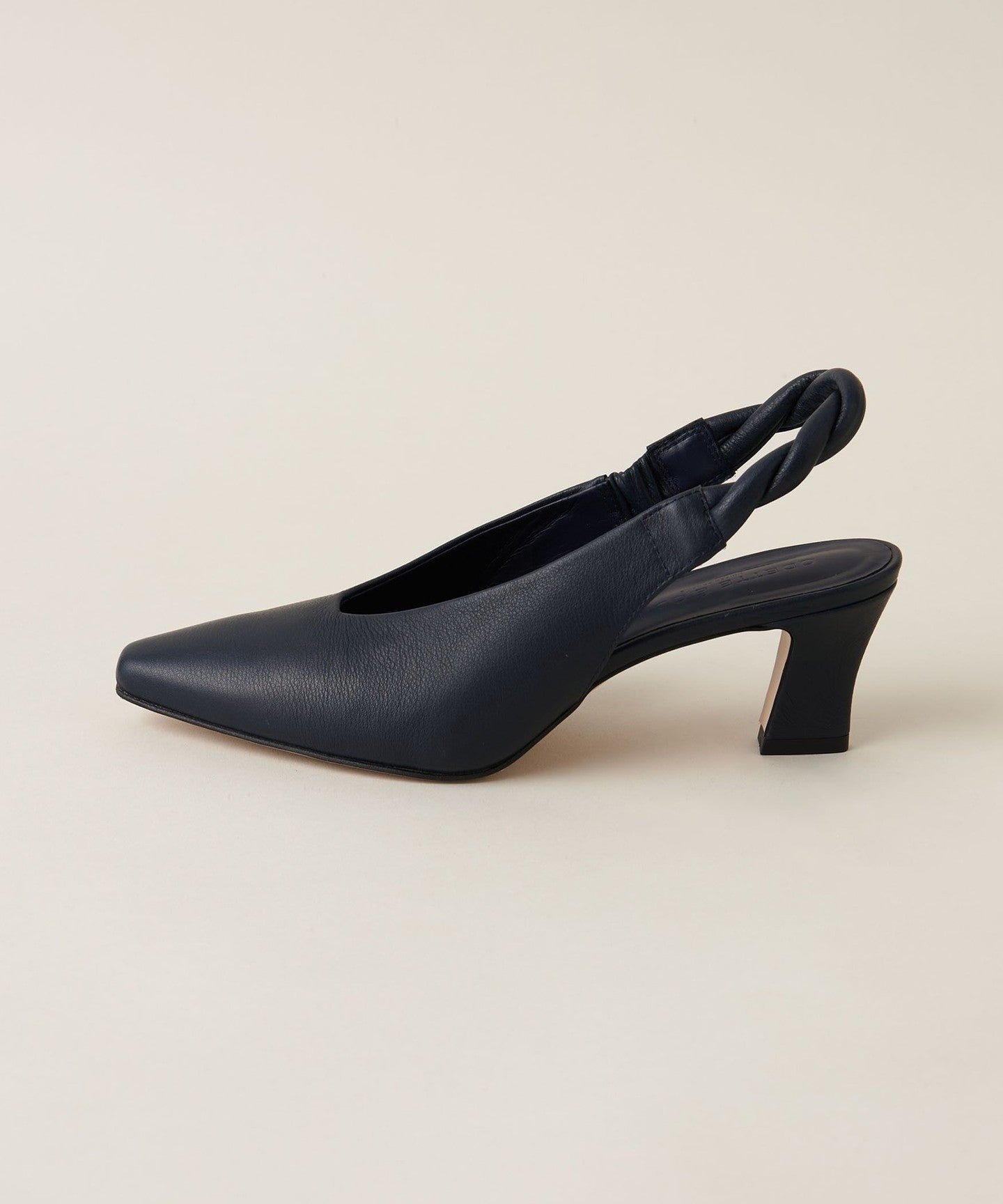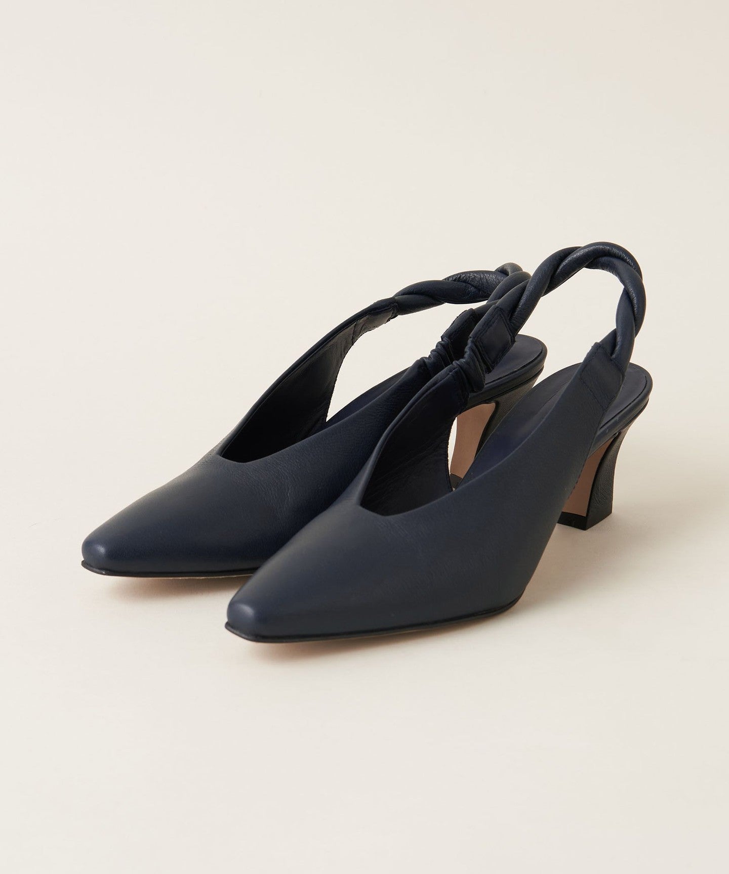 The unique angled heel creates a simple yet sophisticated look.