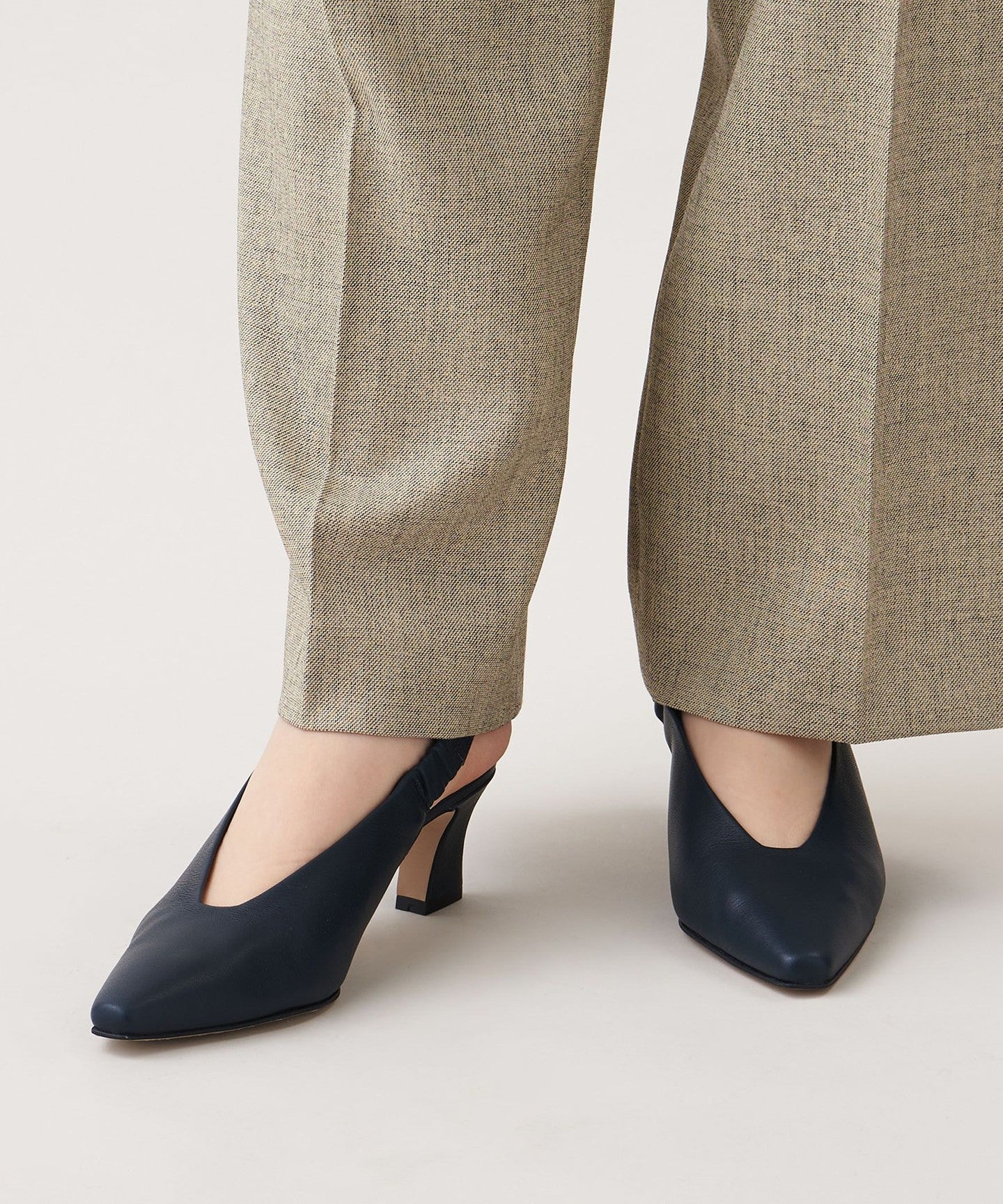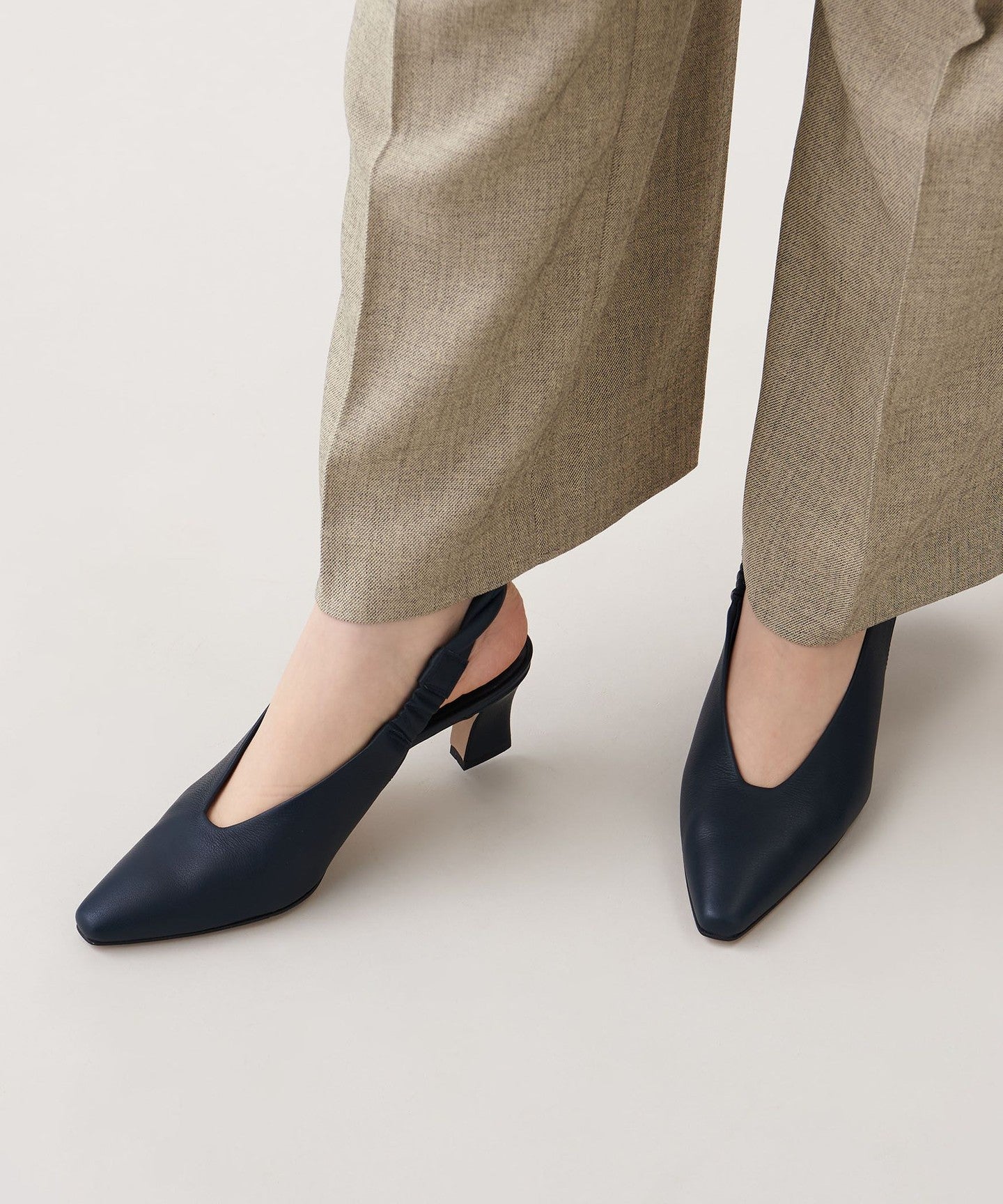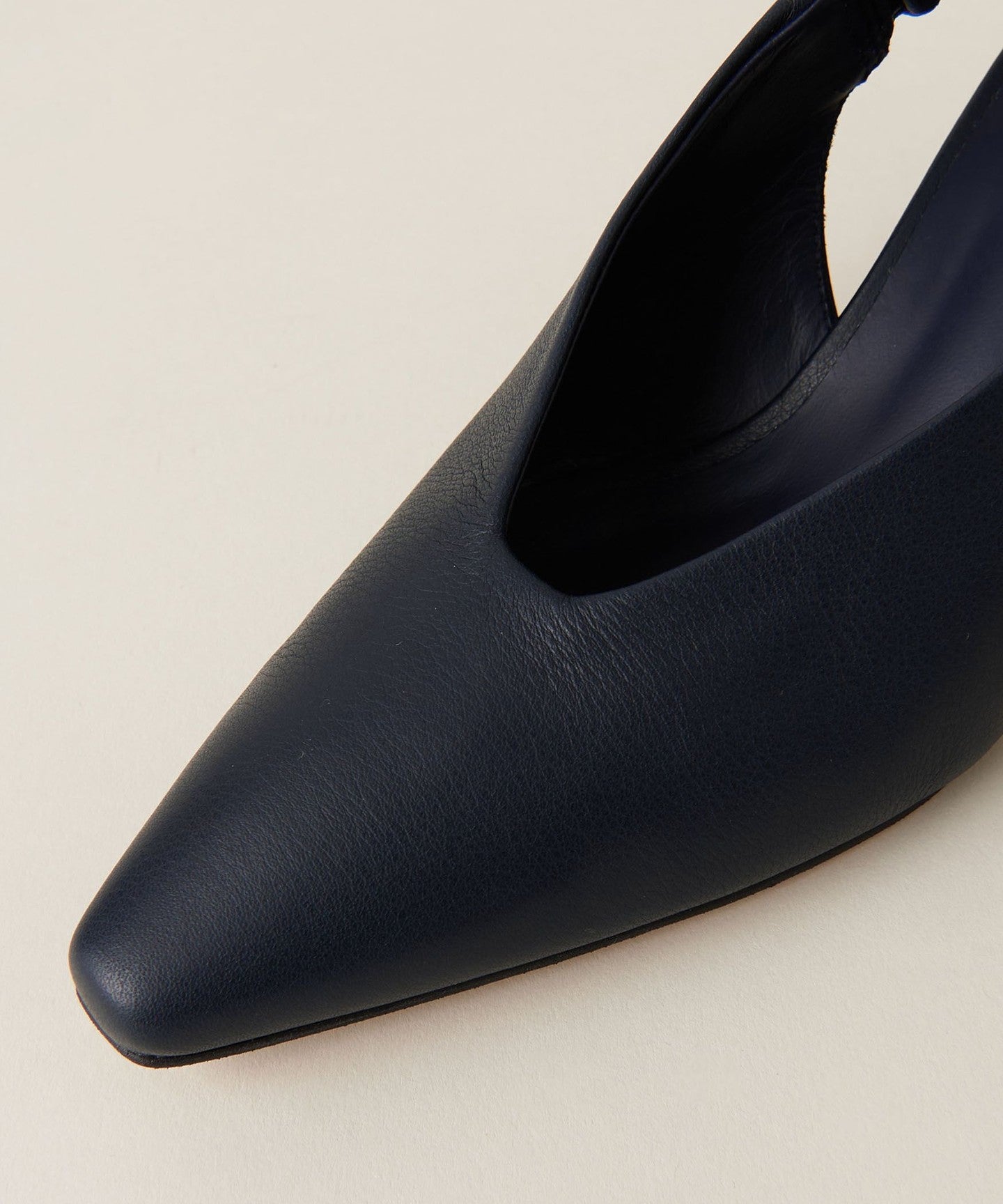 The unique angled heel creates a simple yet sophisticated look.