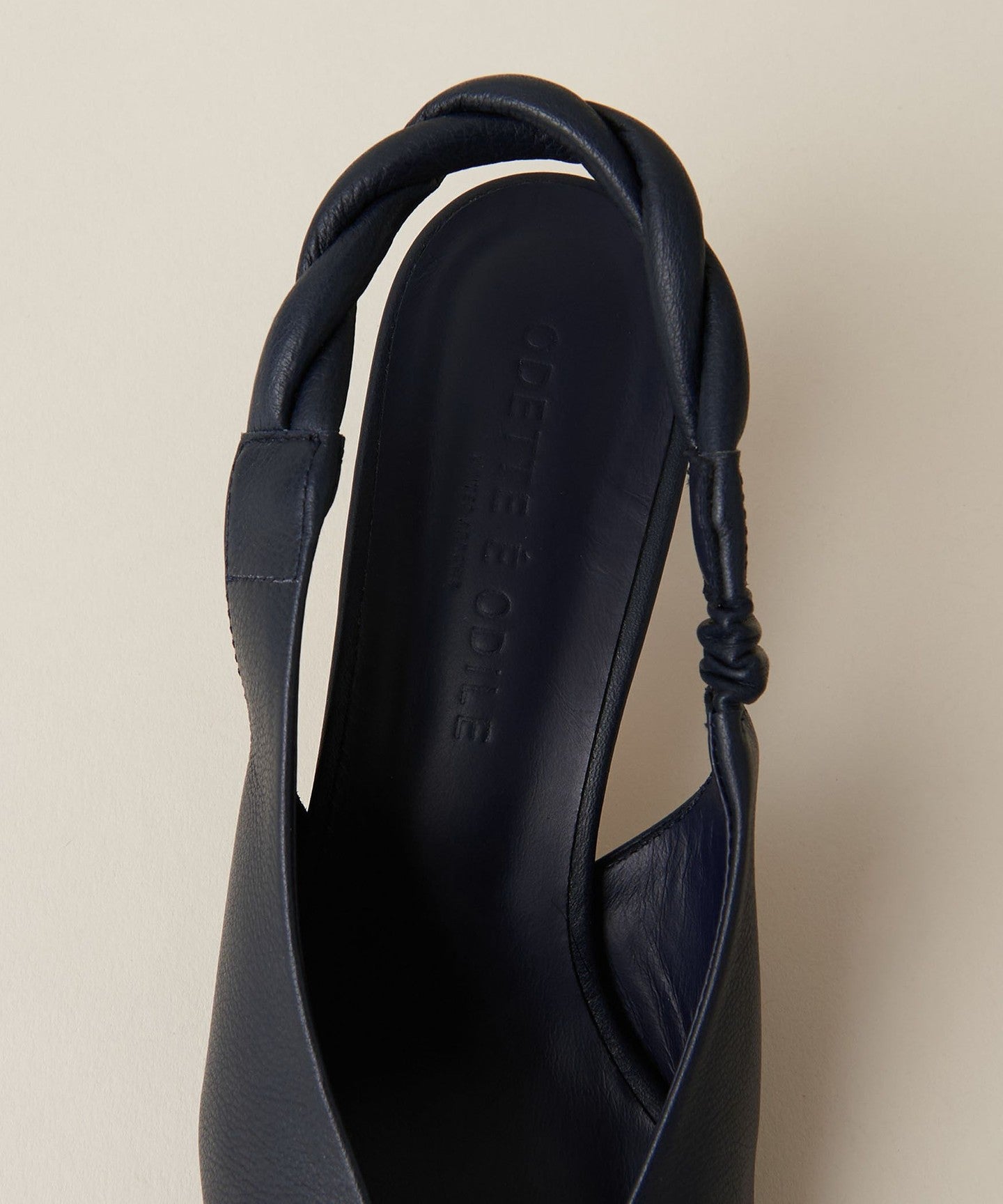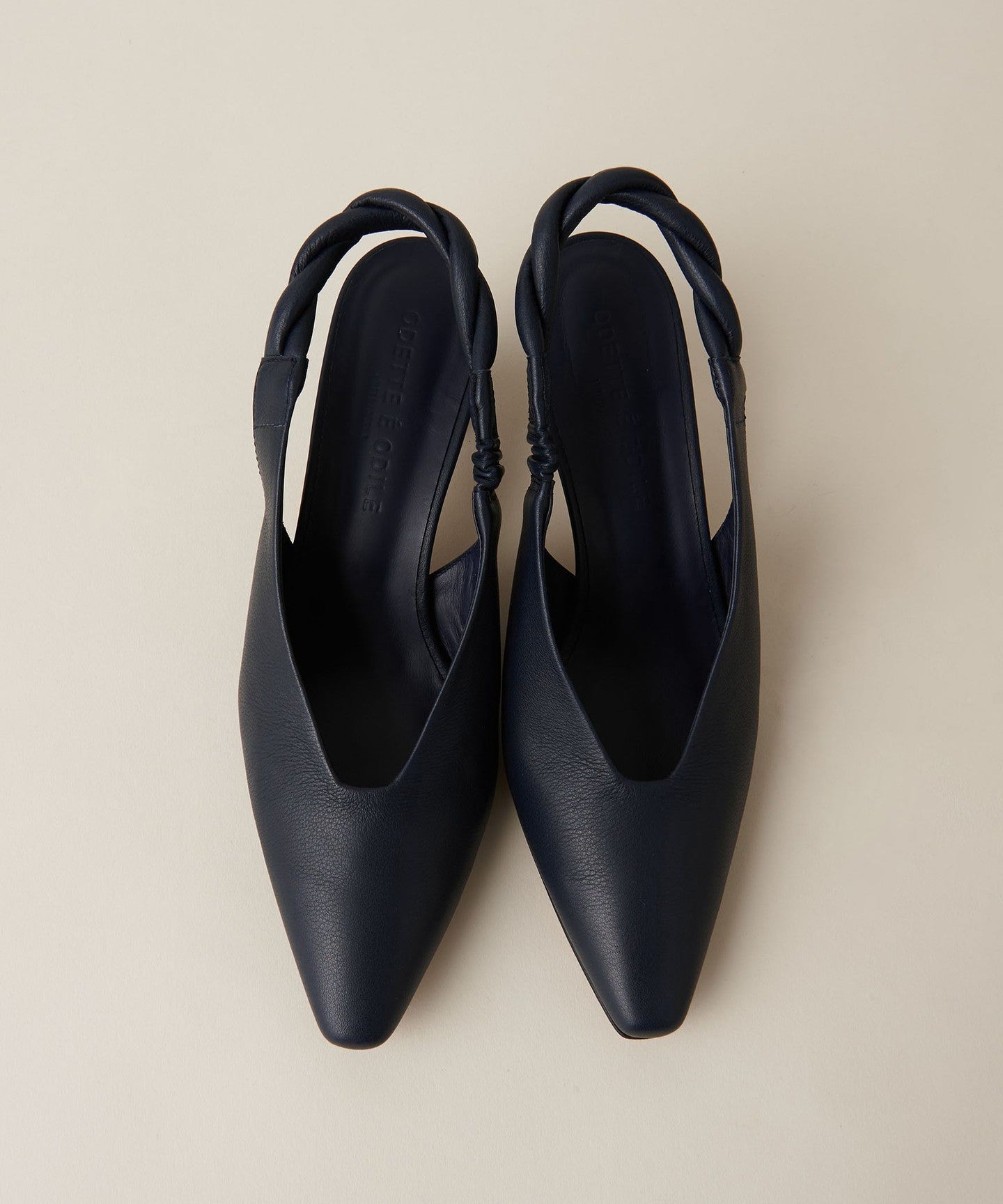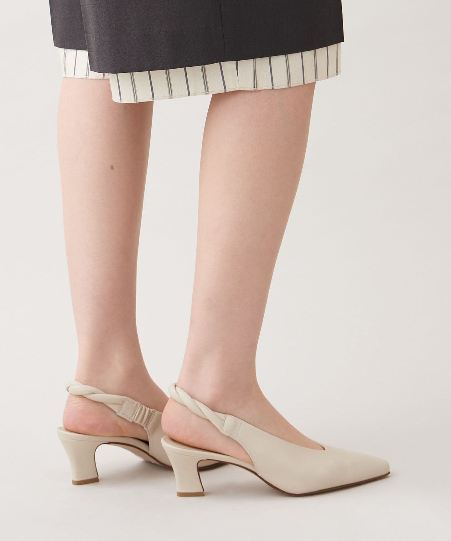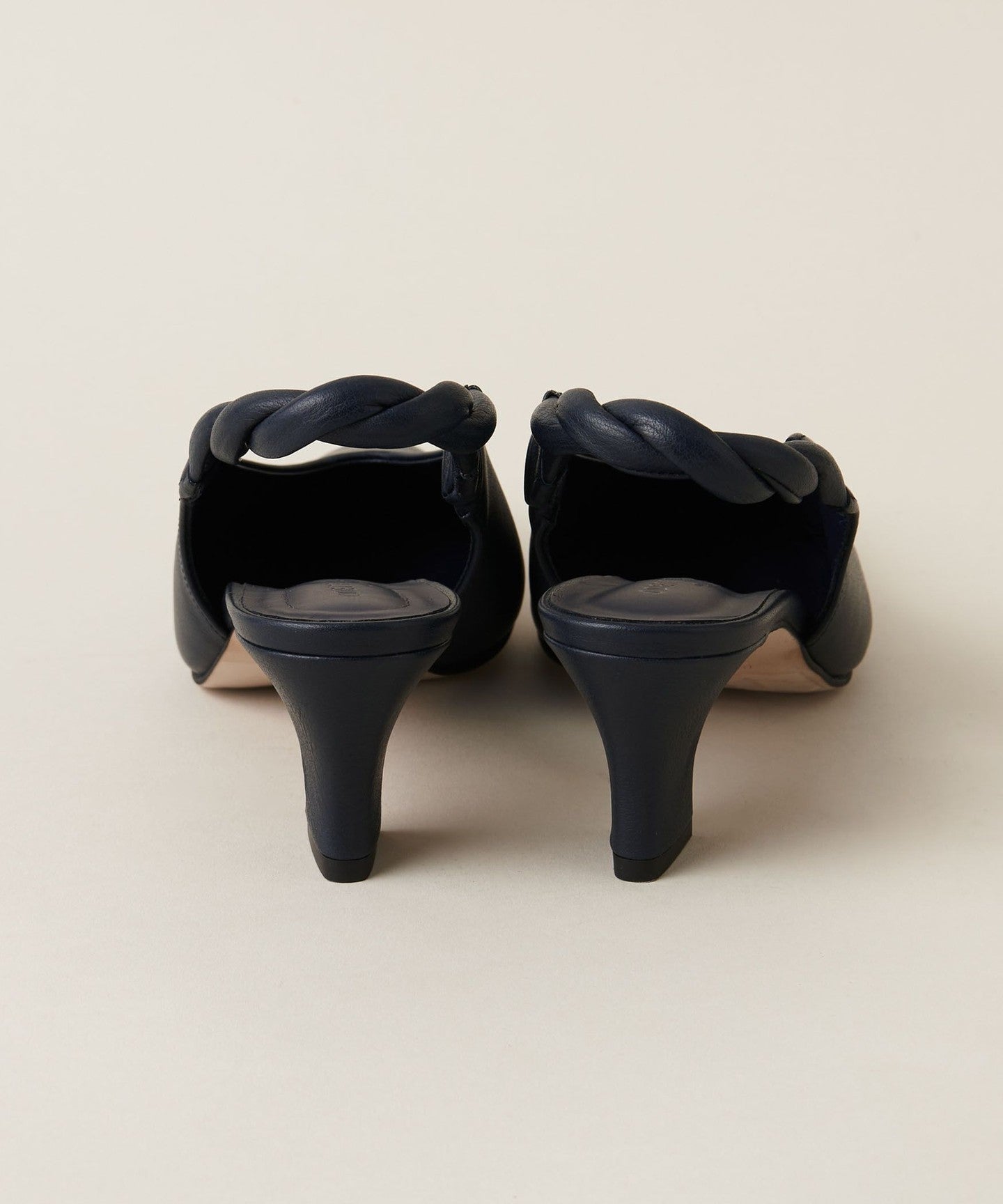 The unique angled heel creates a simple yet sophisticated look.