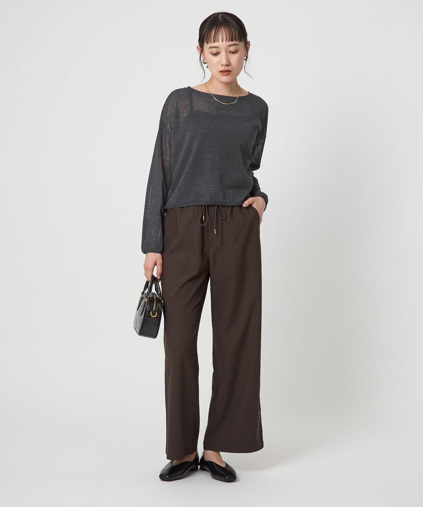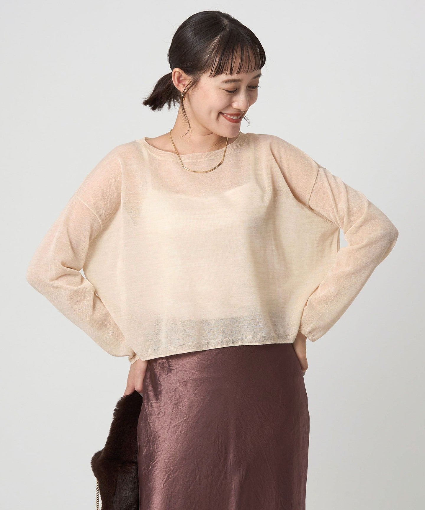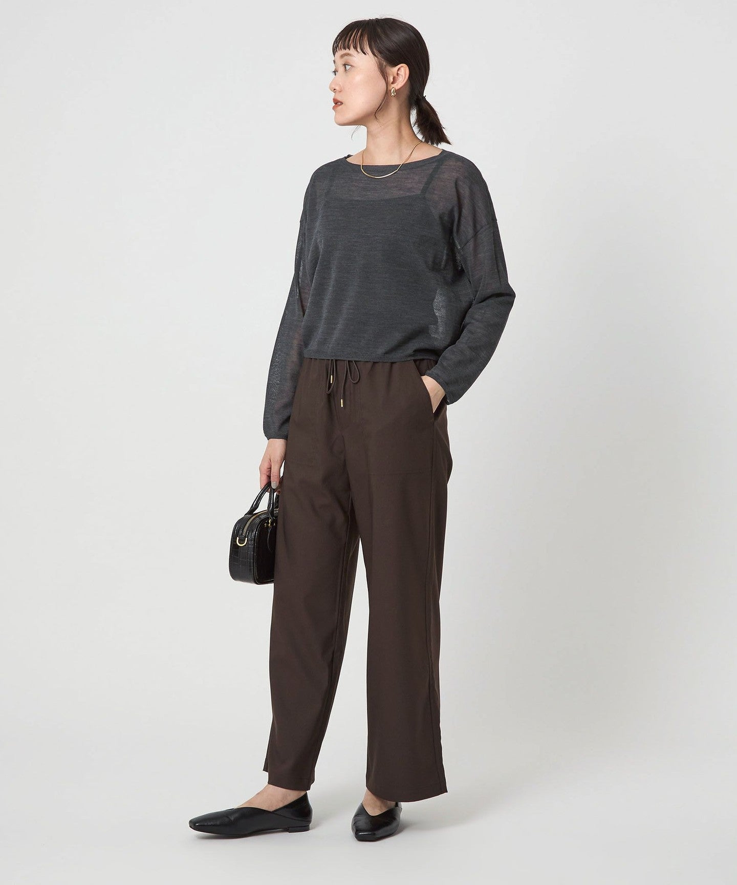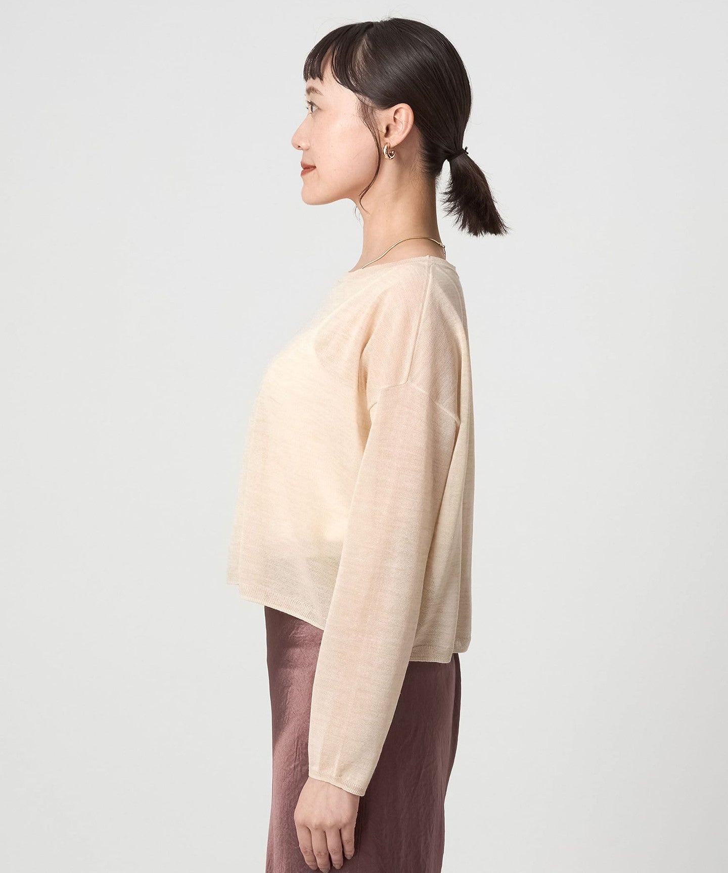 It goes well with a variety of bottoms, from slacks to voluminous skirts.