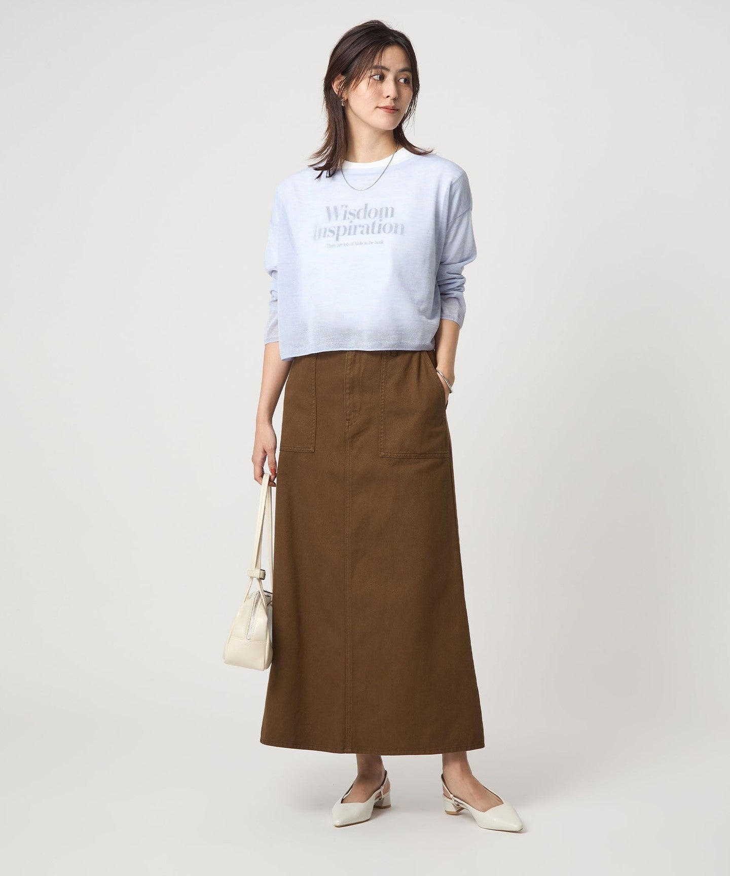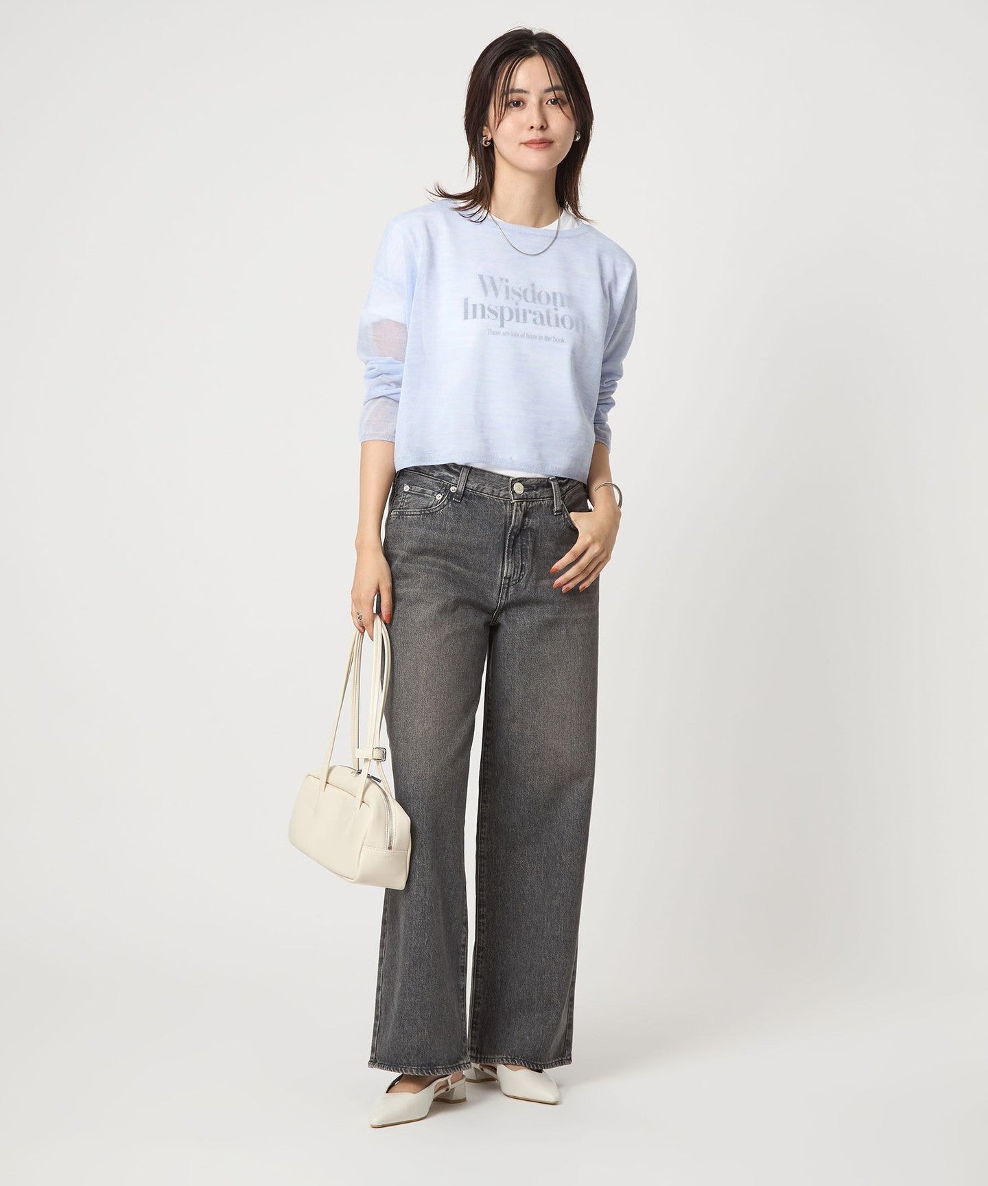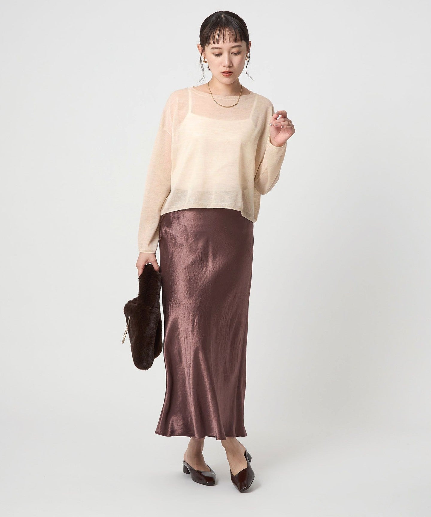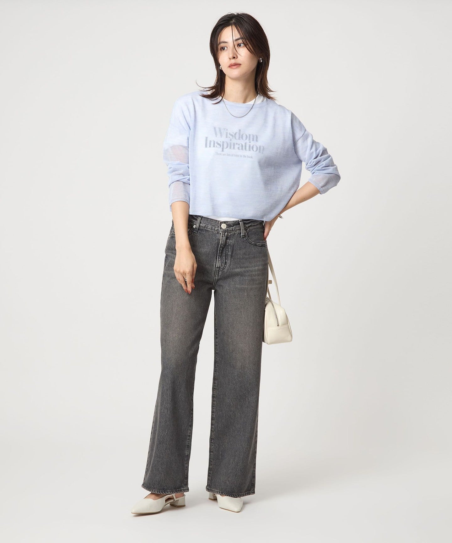It goes well with a variety of bottoms, from slacks to voluminous skirts.