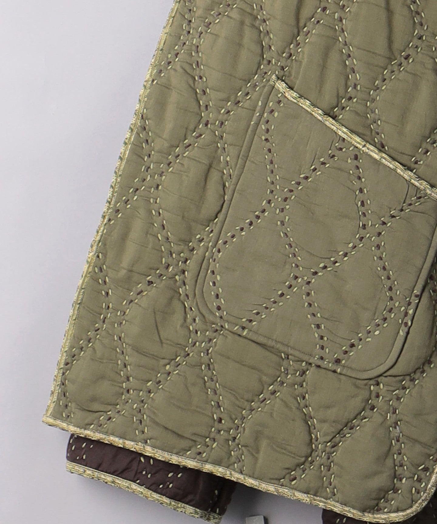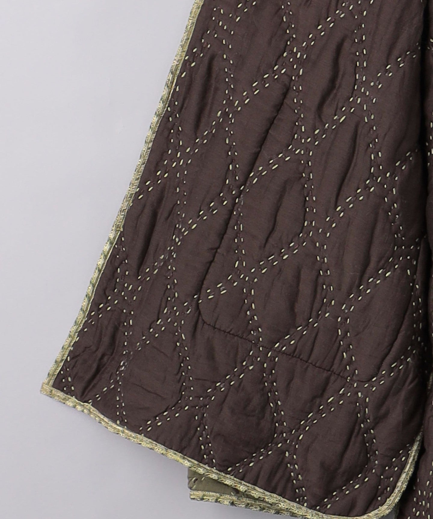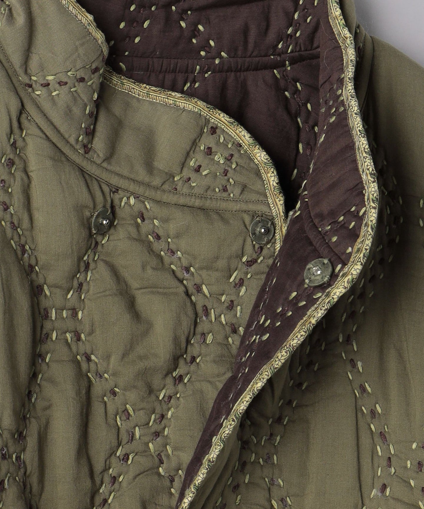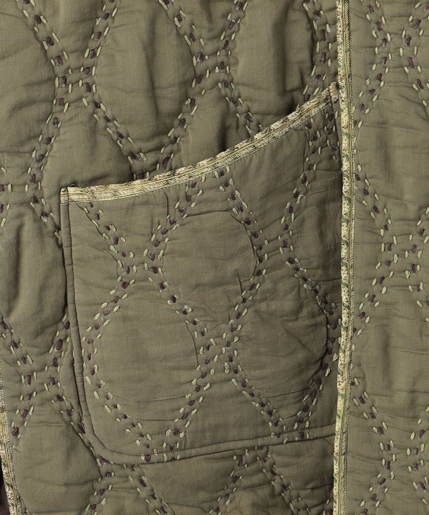 The entire surface is hand-embroidered with a needle and thread, a technique called "kantha," which is a delicate technique. EXTERIOR A piece that makes full use of emotion.
