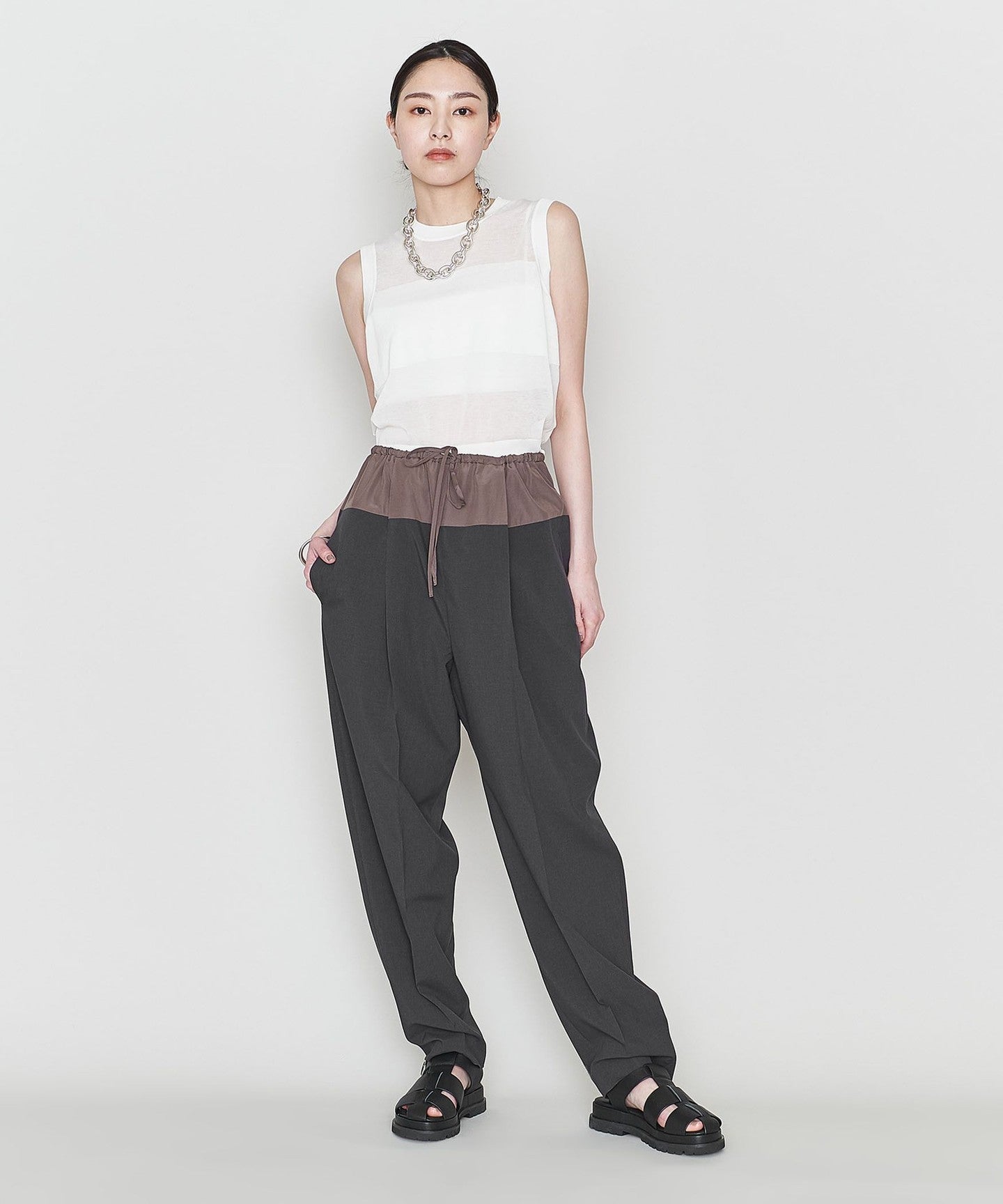 Easy to wear with a combination of different materials that adds an accent to your outfit. PANTS .