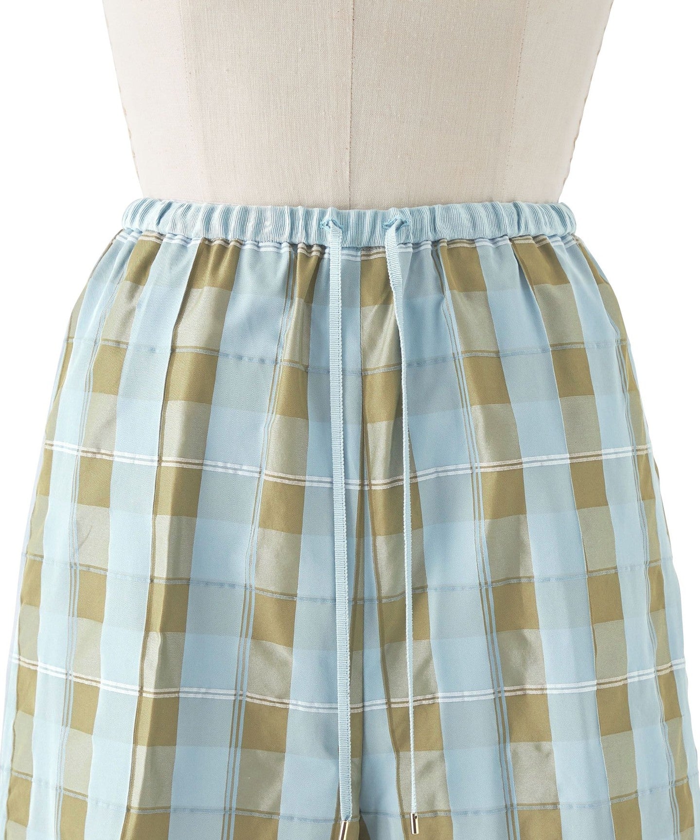 Waist-gathered pants with an eye-catching folky check pattern