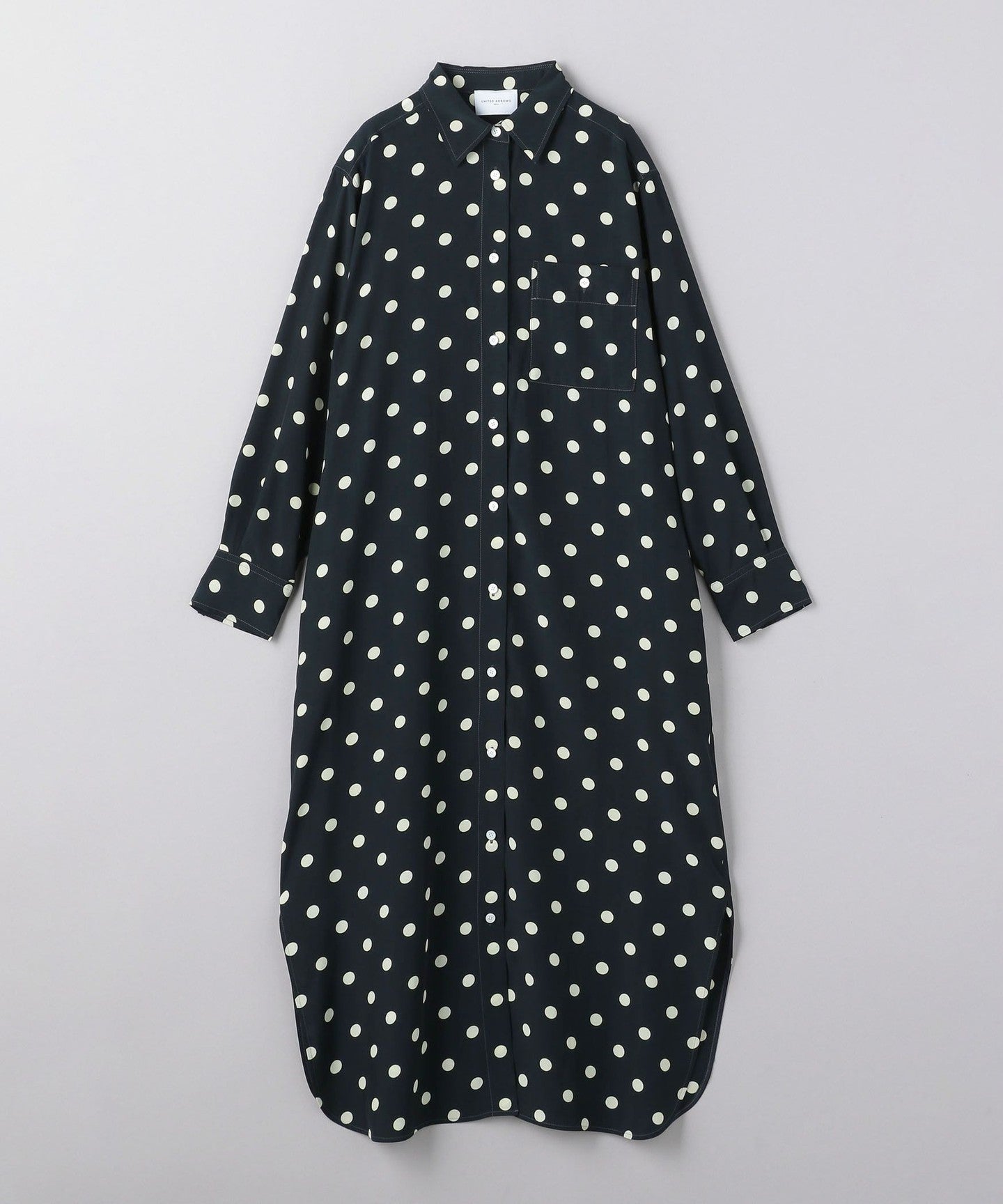 A shirt dress with a bold polka dot and floral print that catches the eye.