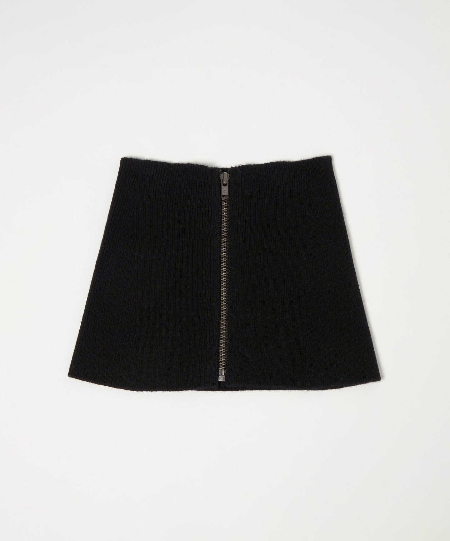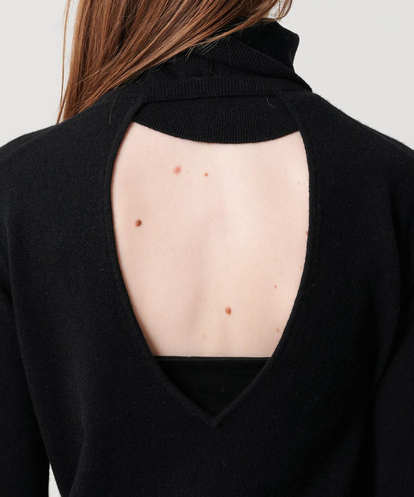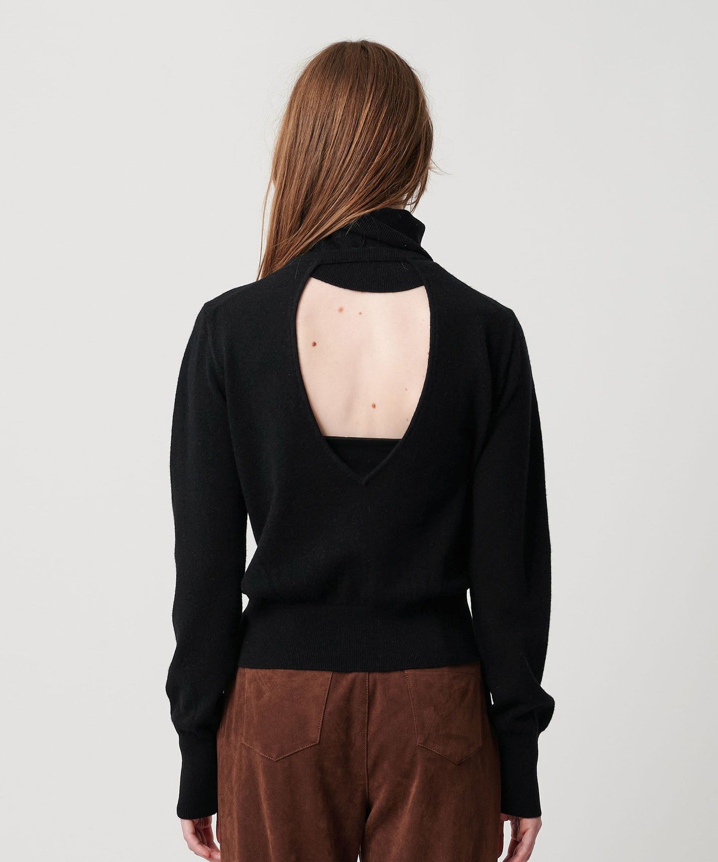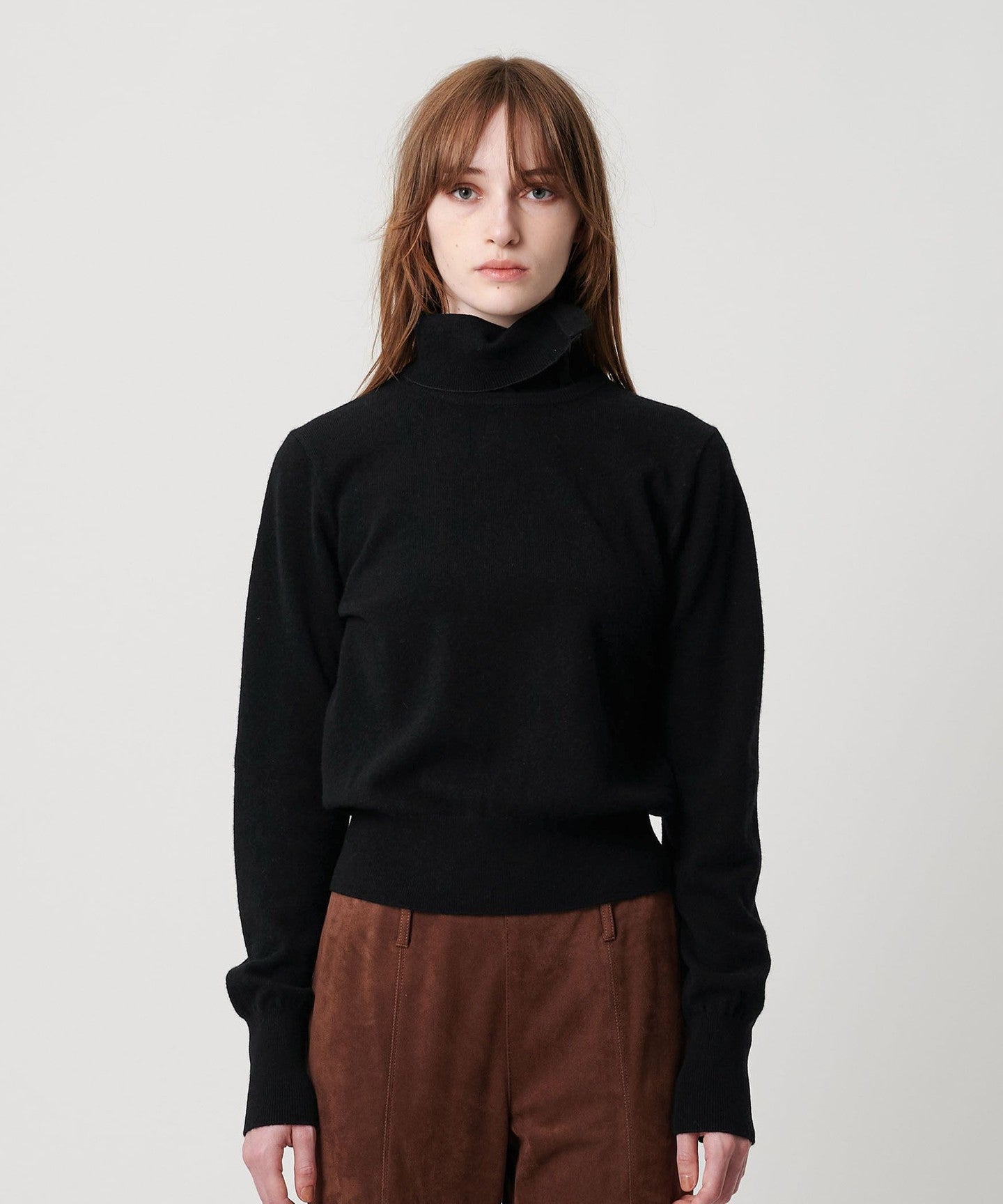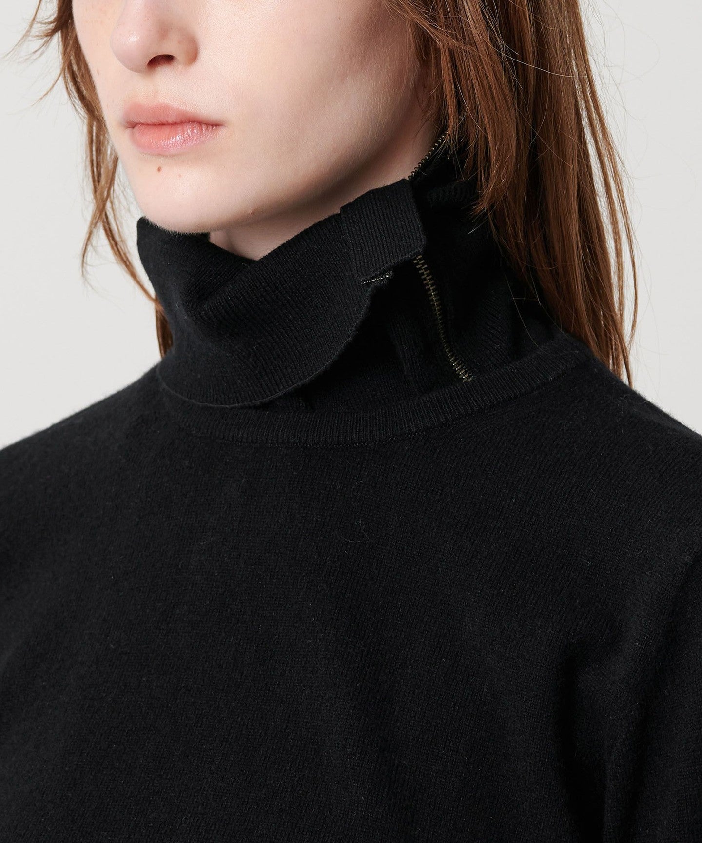 A knit top with a neck warmer featuring edgy details typical of ATTISESSION.