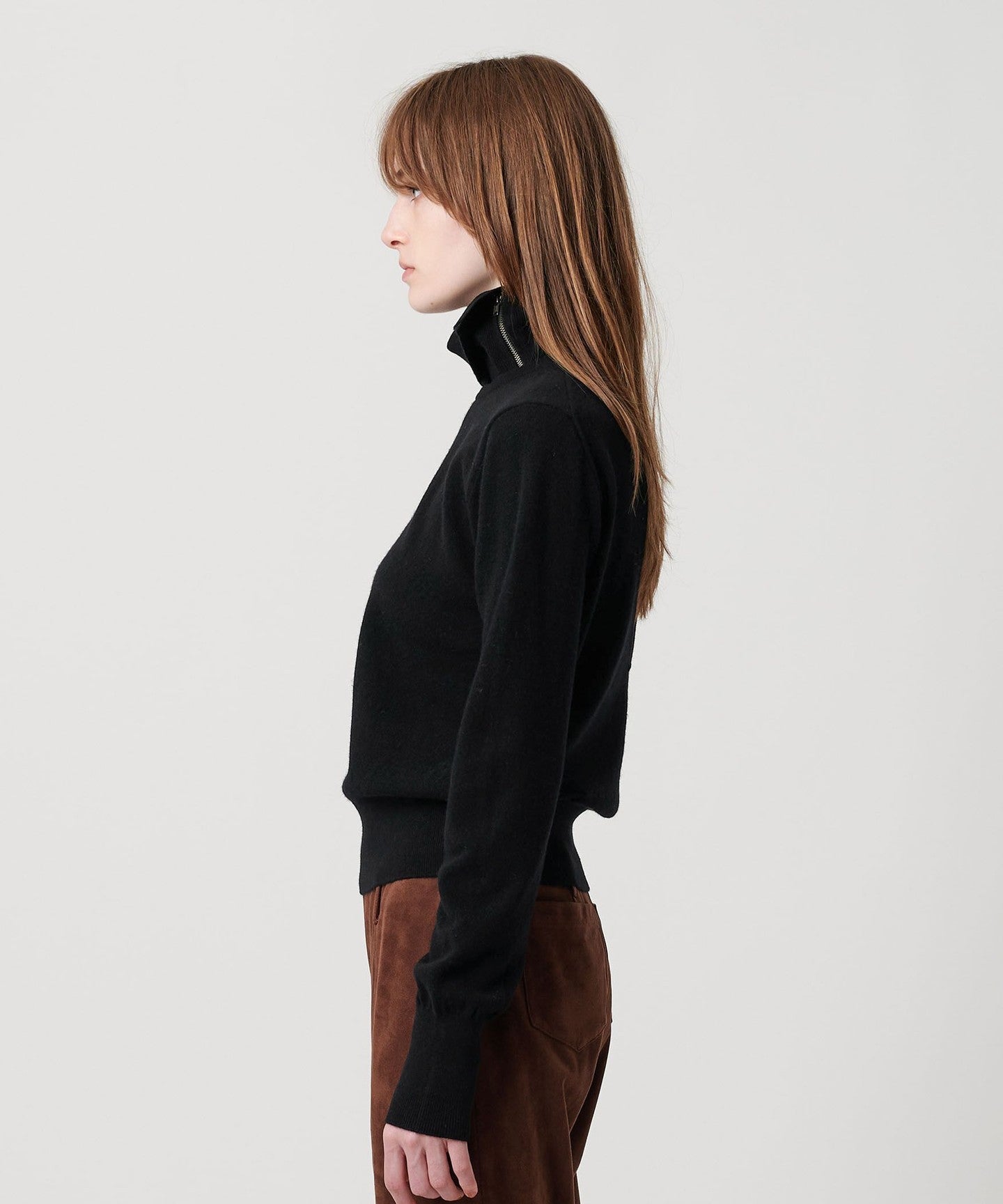 A trendy top that comes with a compact crew neck knit and a zippered neck warmer.
