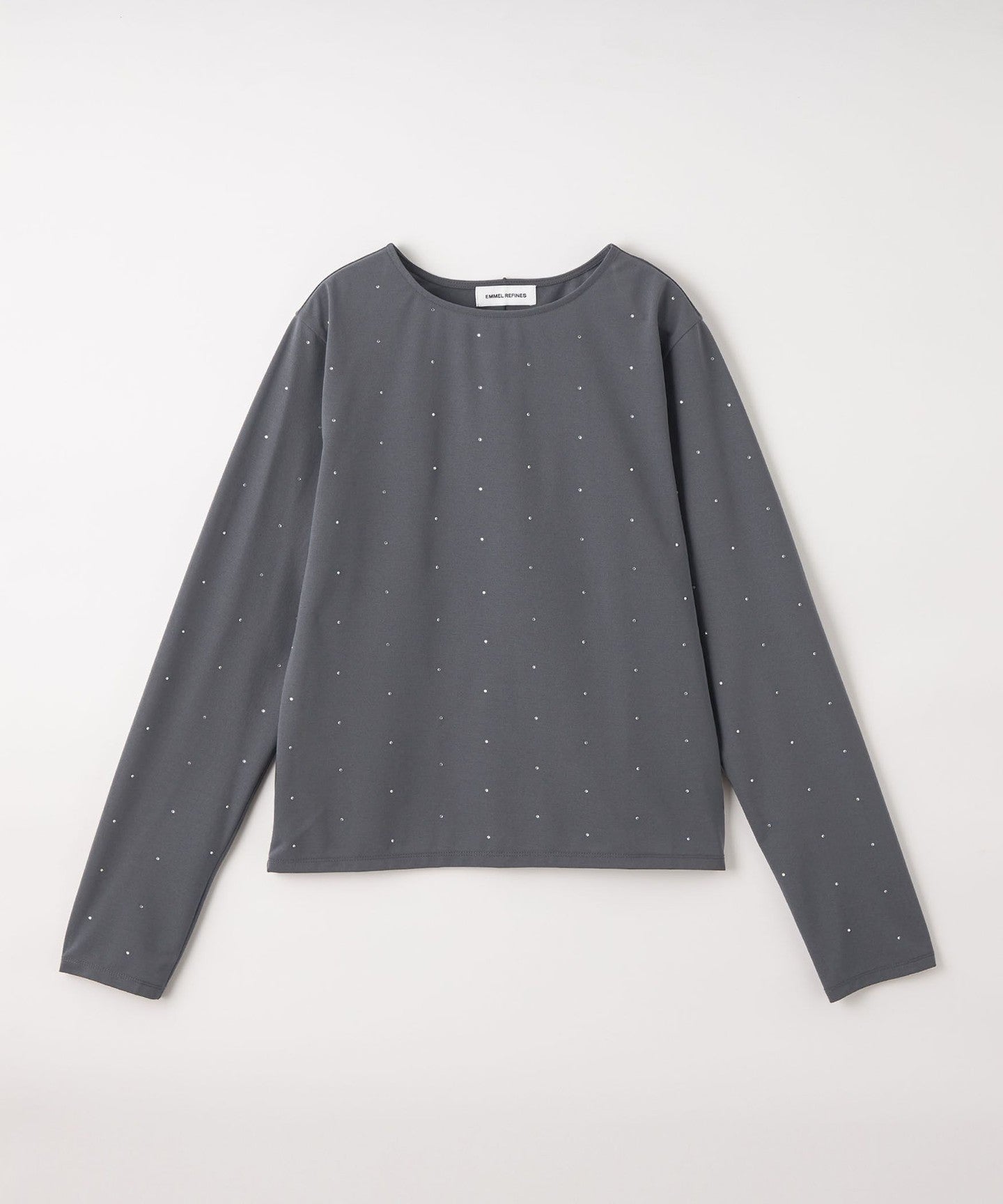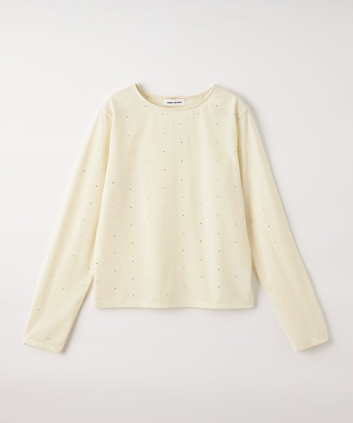 A long-sleeved T-shirt made with trendy, sparkling material and hot fit processing.