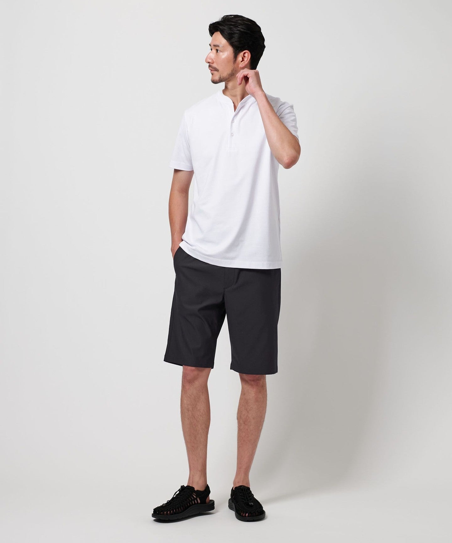For the top, we recommend pairing it with a simple, plain shirt or cut-and-sew top for a neat and casual look.