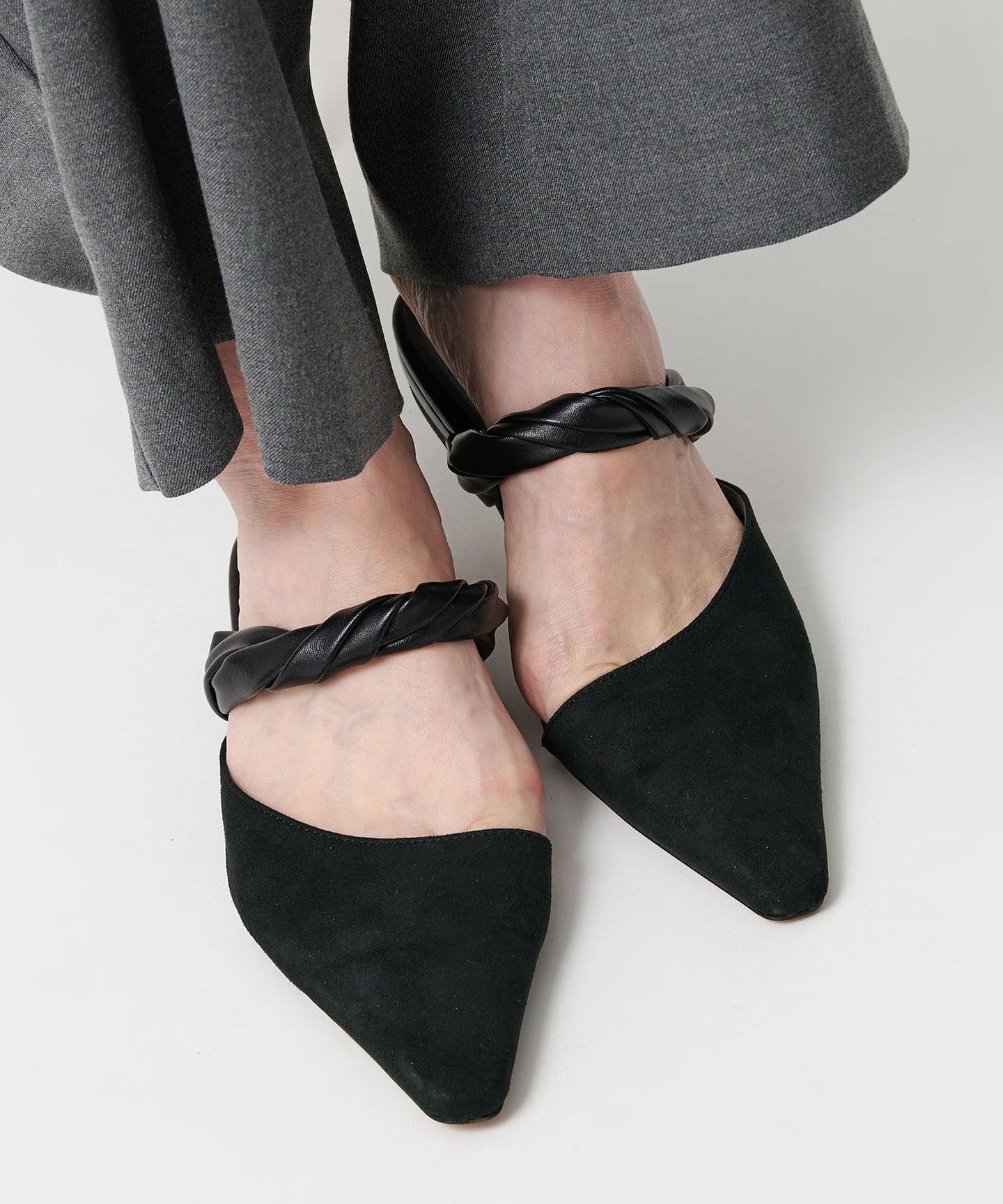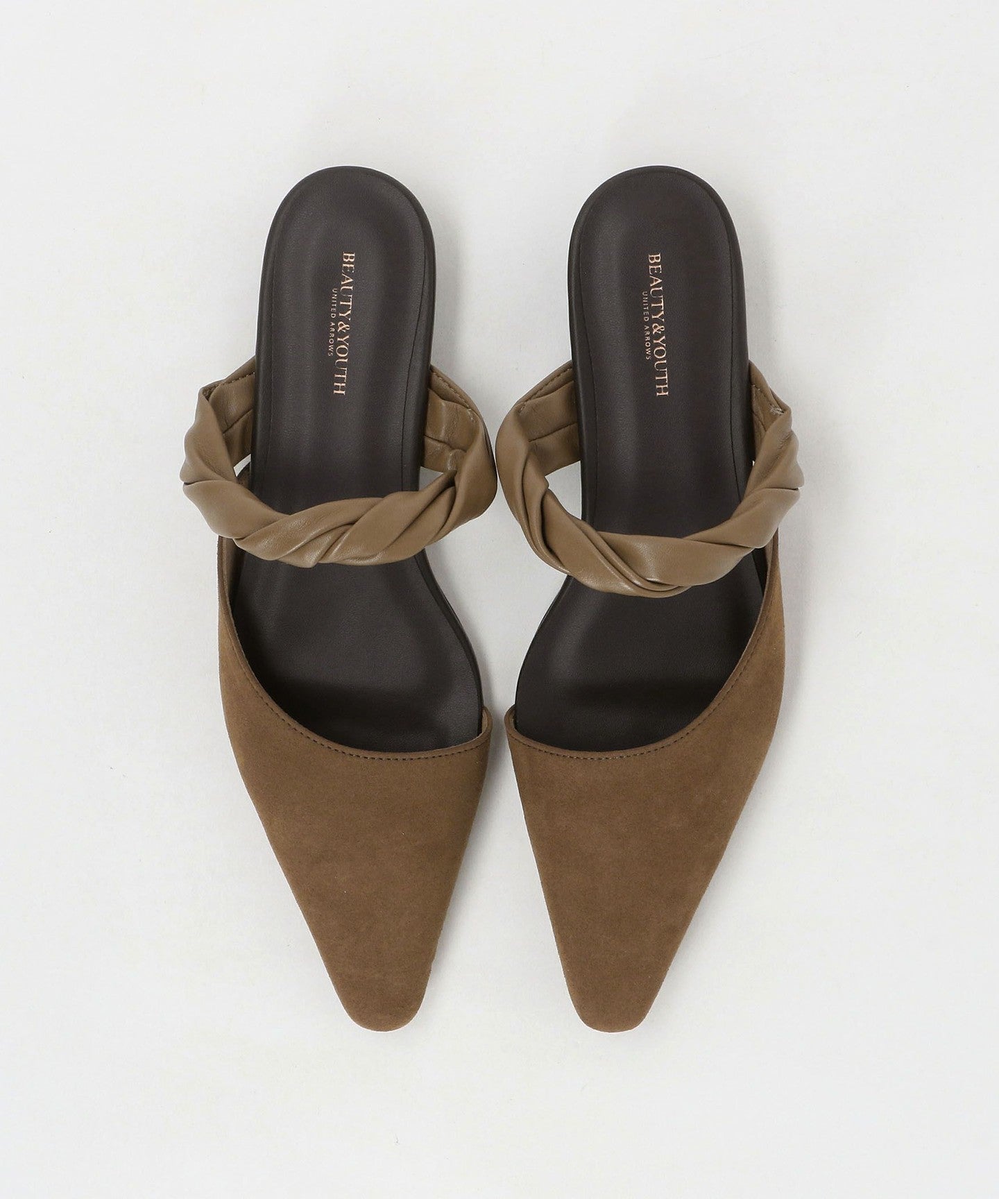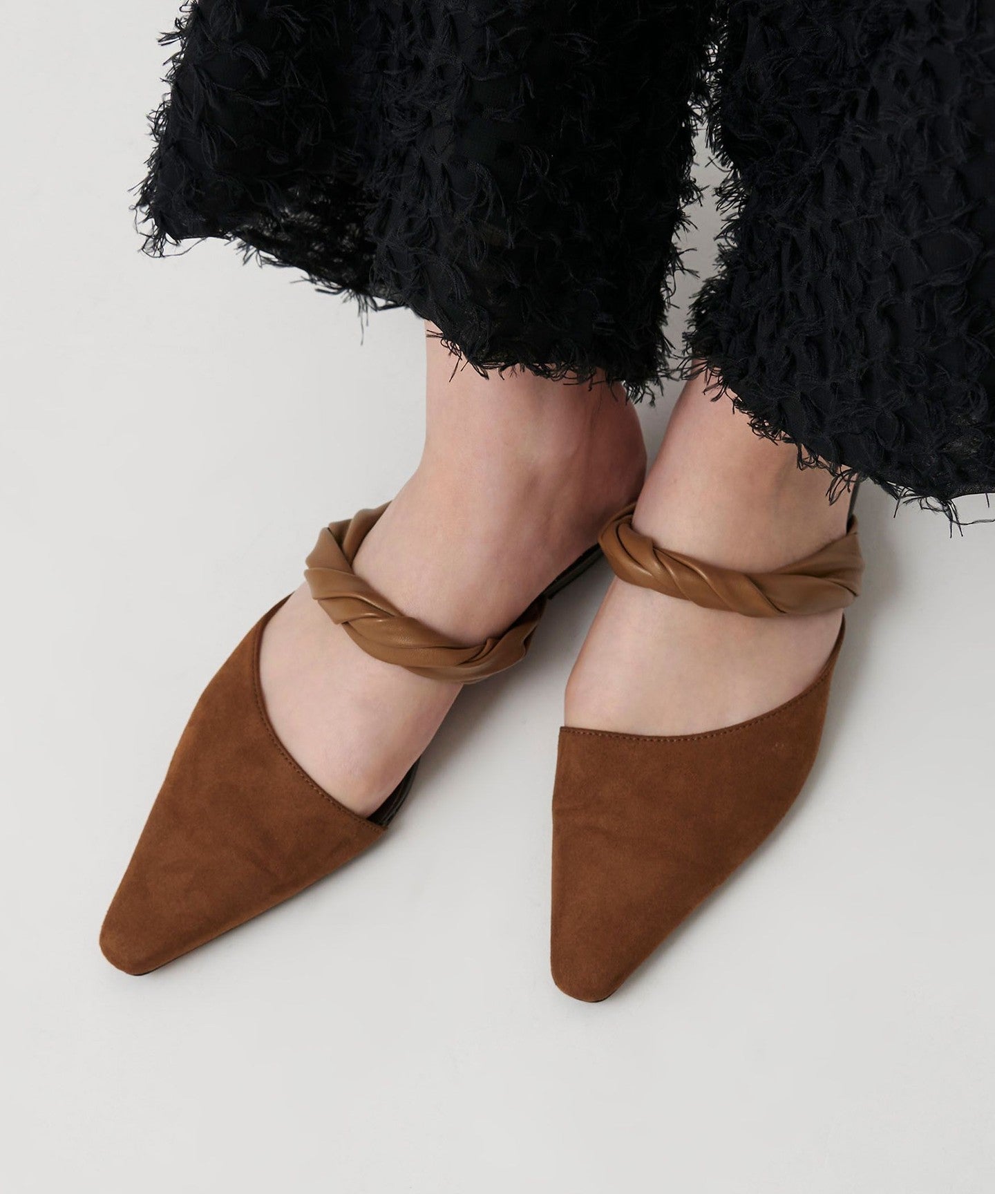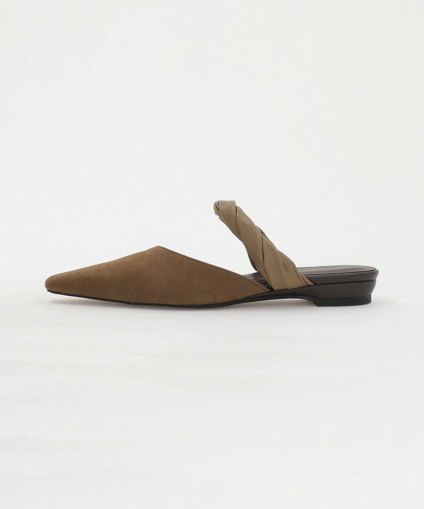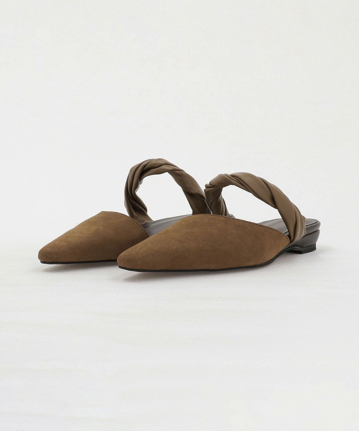A mule-style sandal made of suede-like material that exudes a stylish vibe.