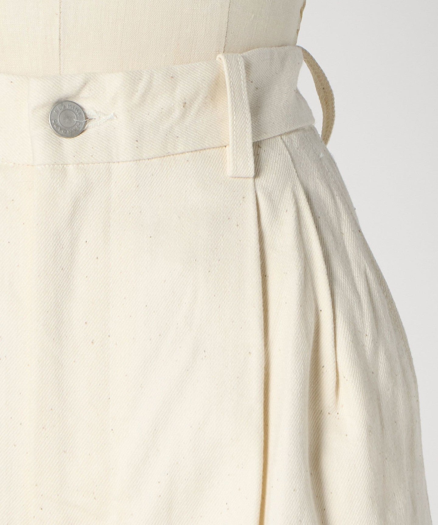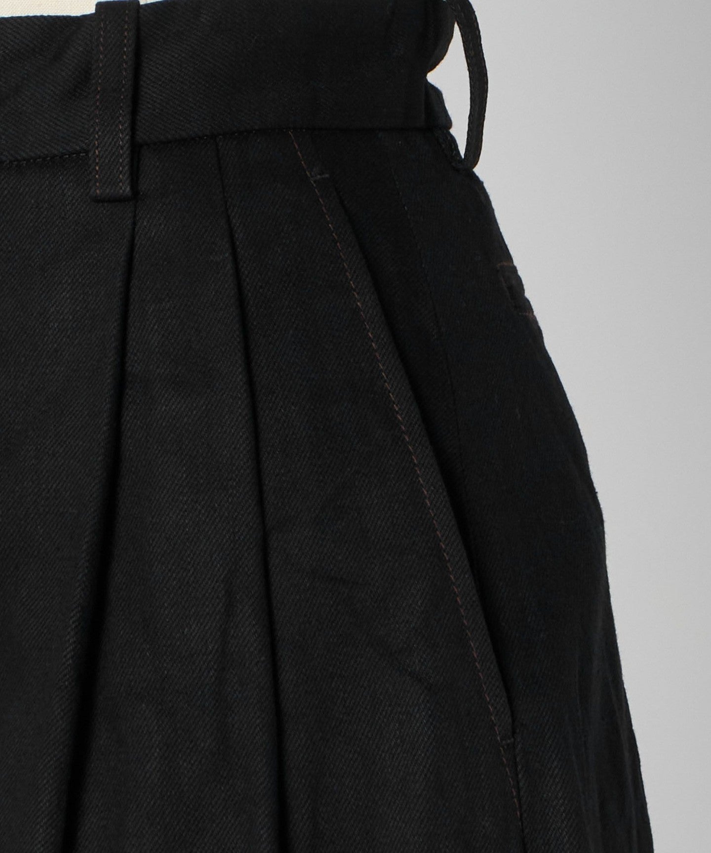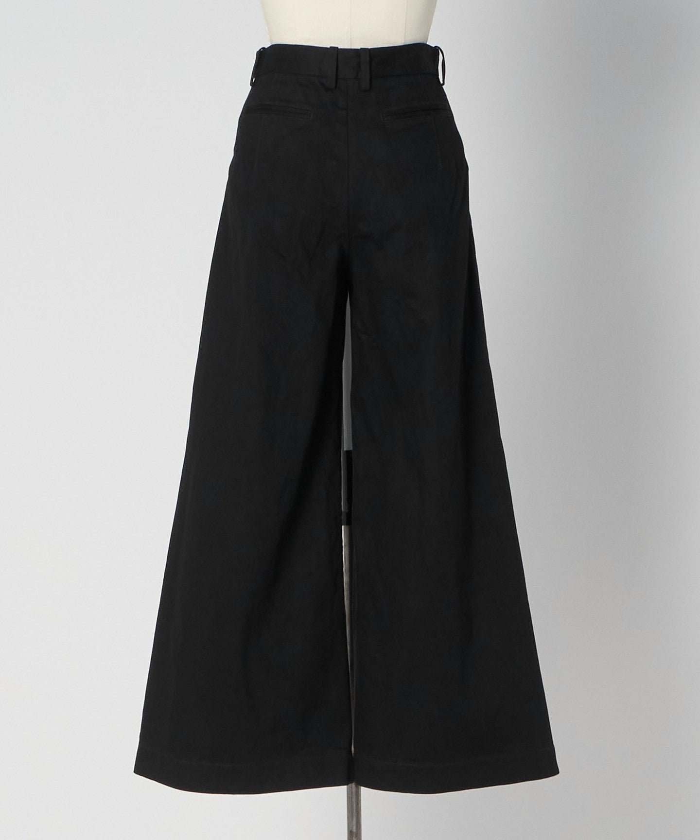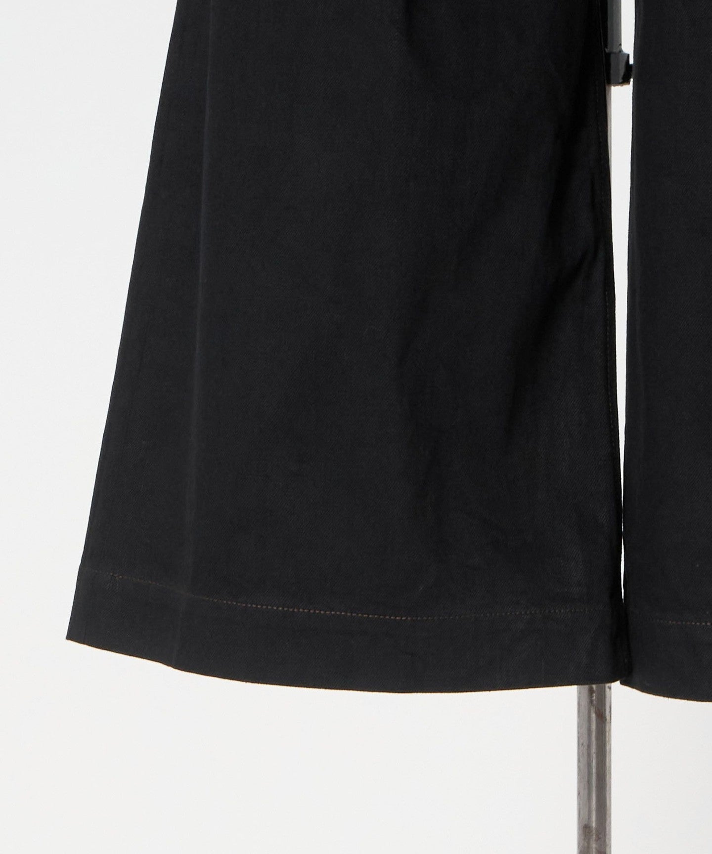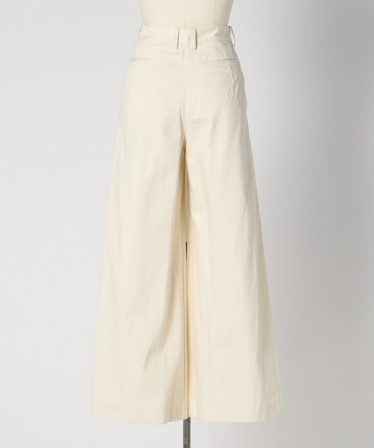These denim pants feature a wide silhouette that naturally expands from the tuck design.