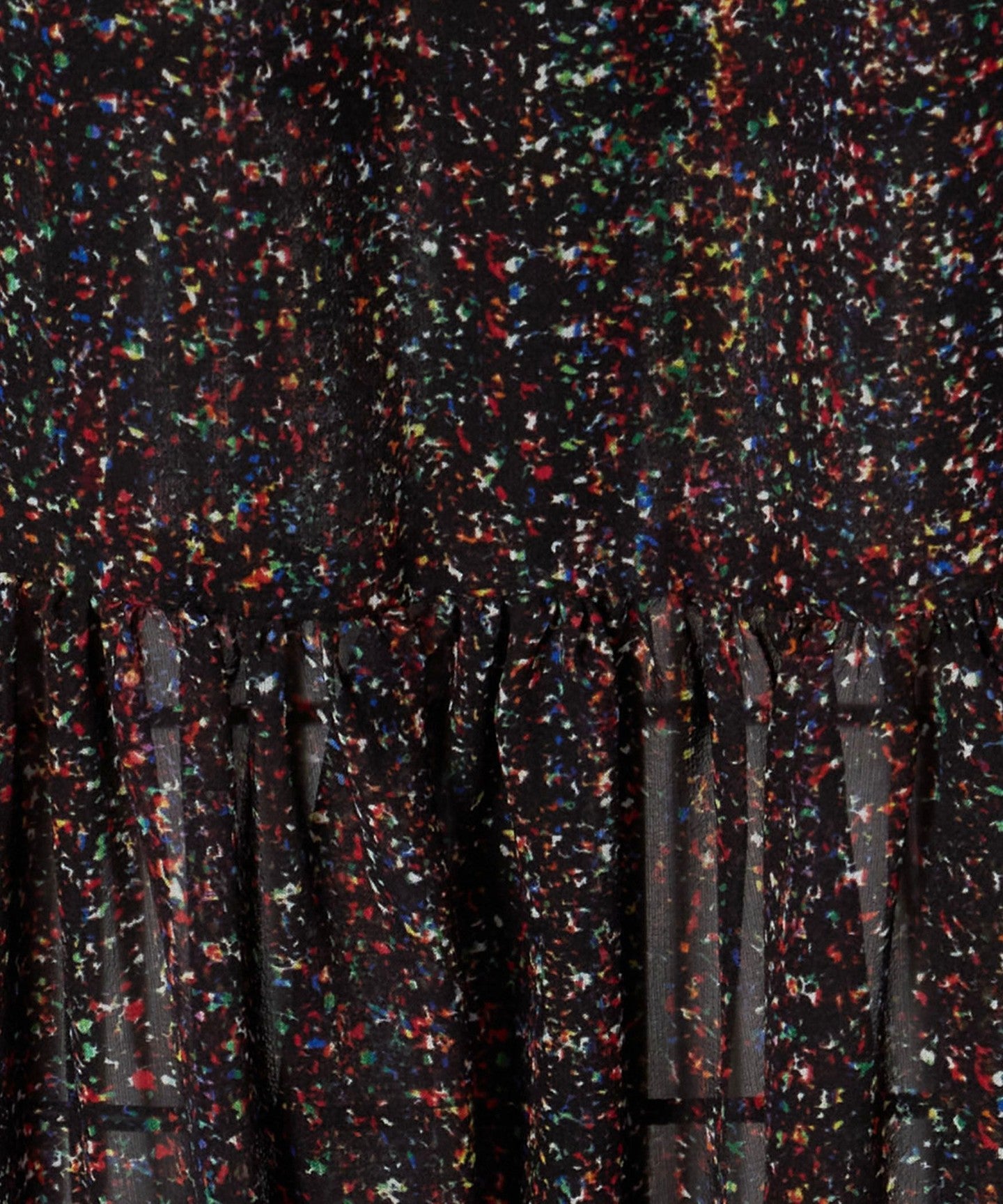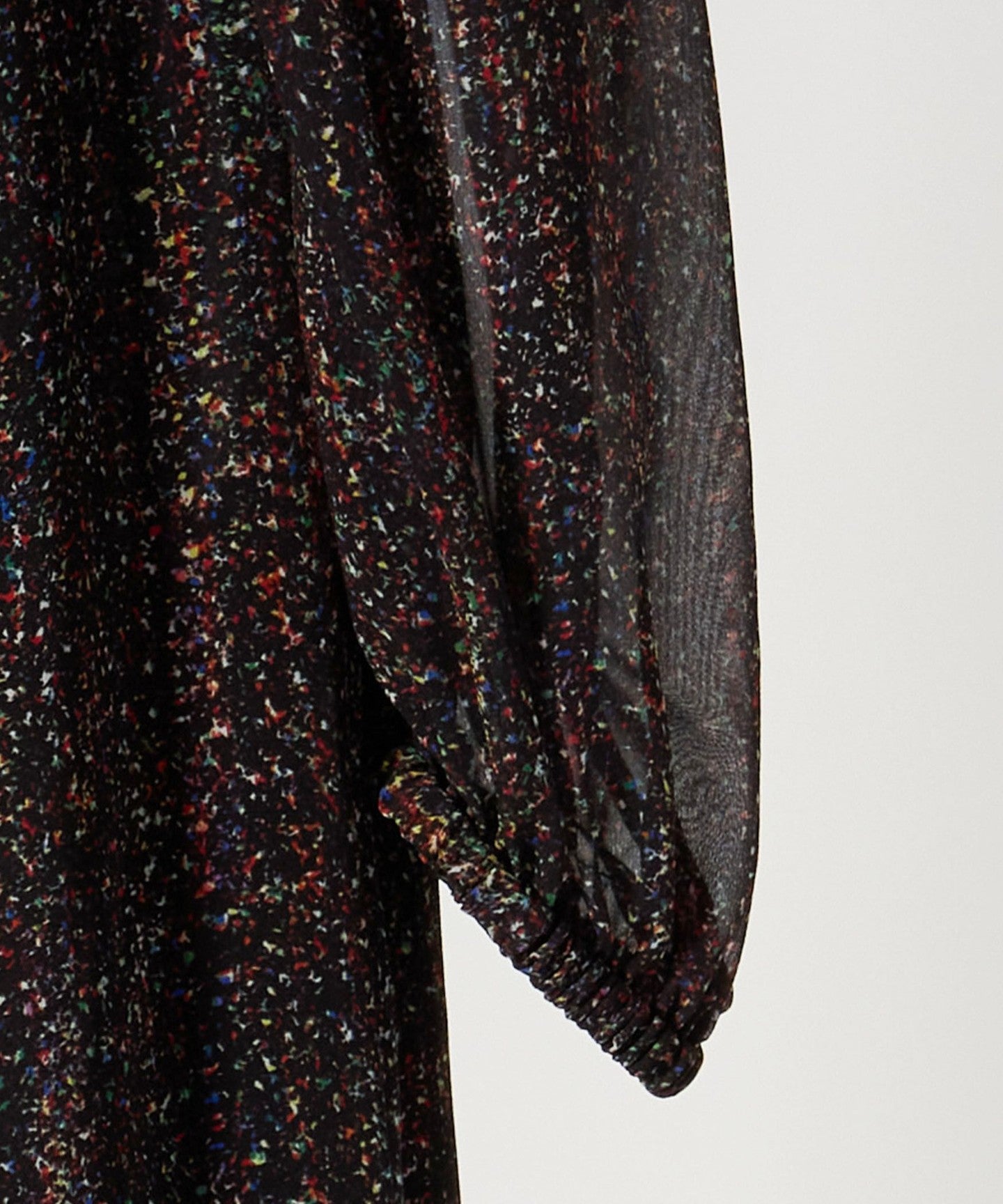 The sheer chiffon material adds a touch of lightness to the long, stately look.