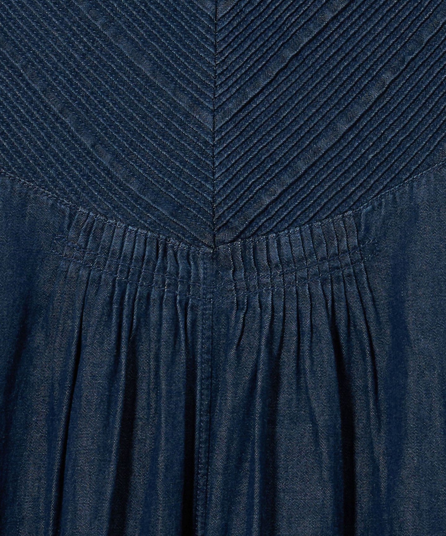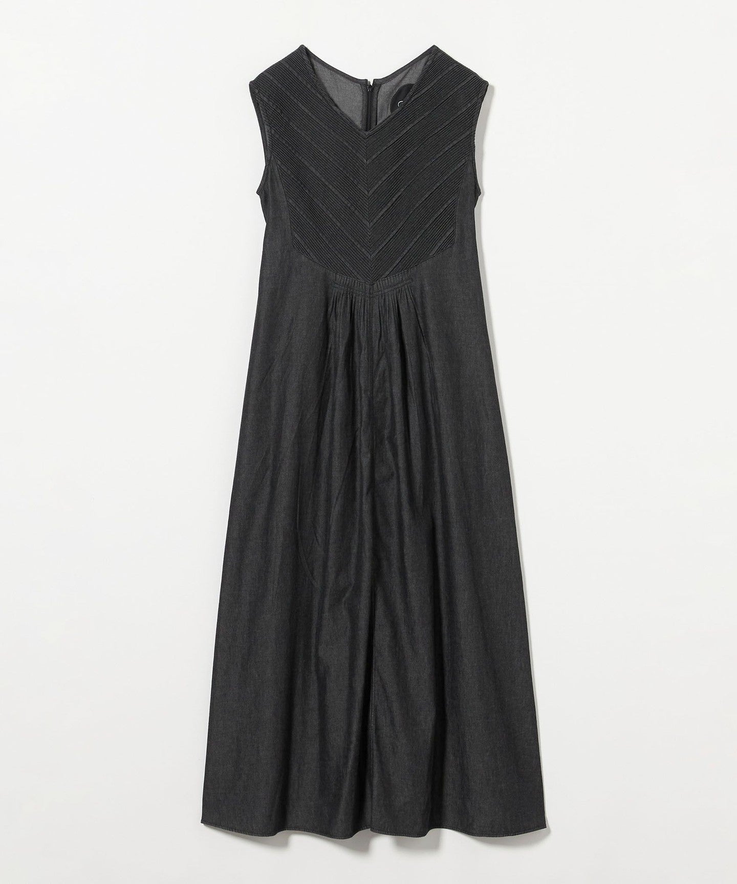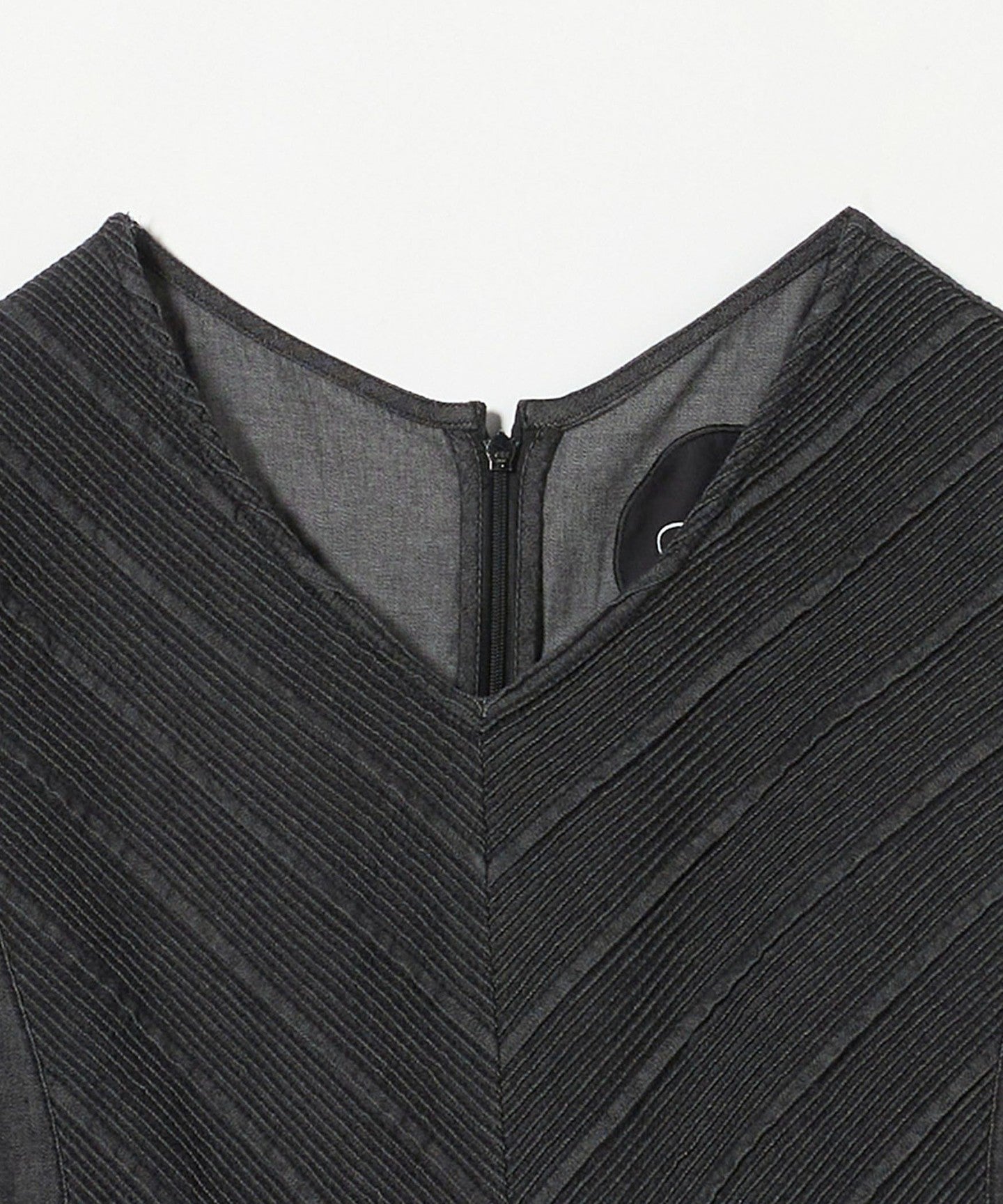 The V-neck creates a clean and sharp look around the face, and the flared silhouette that widens towards the hem goes well together.