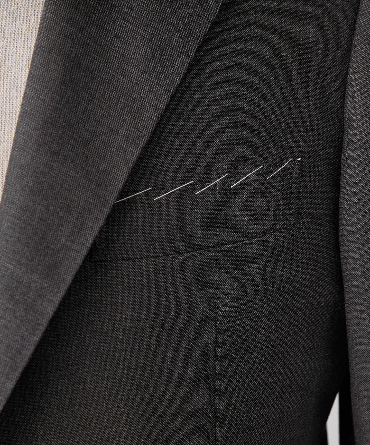 Made with sharkskin material produced by the domestic company Miyuki Woolen Mills.