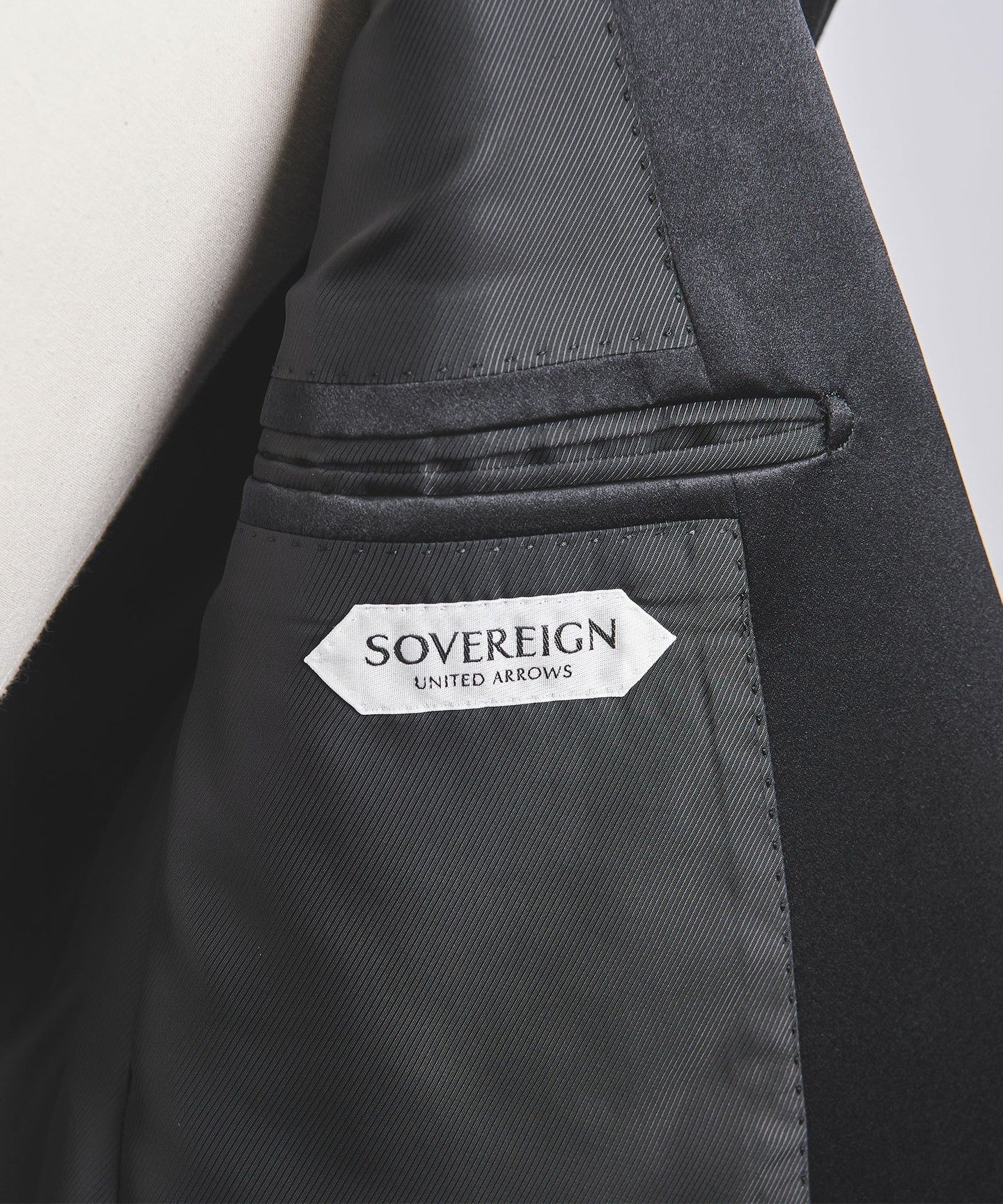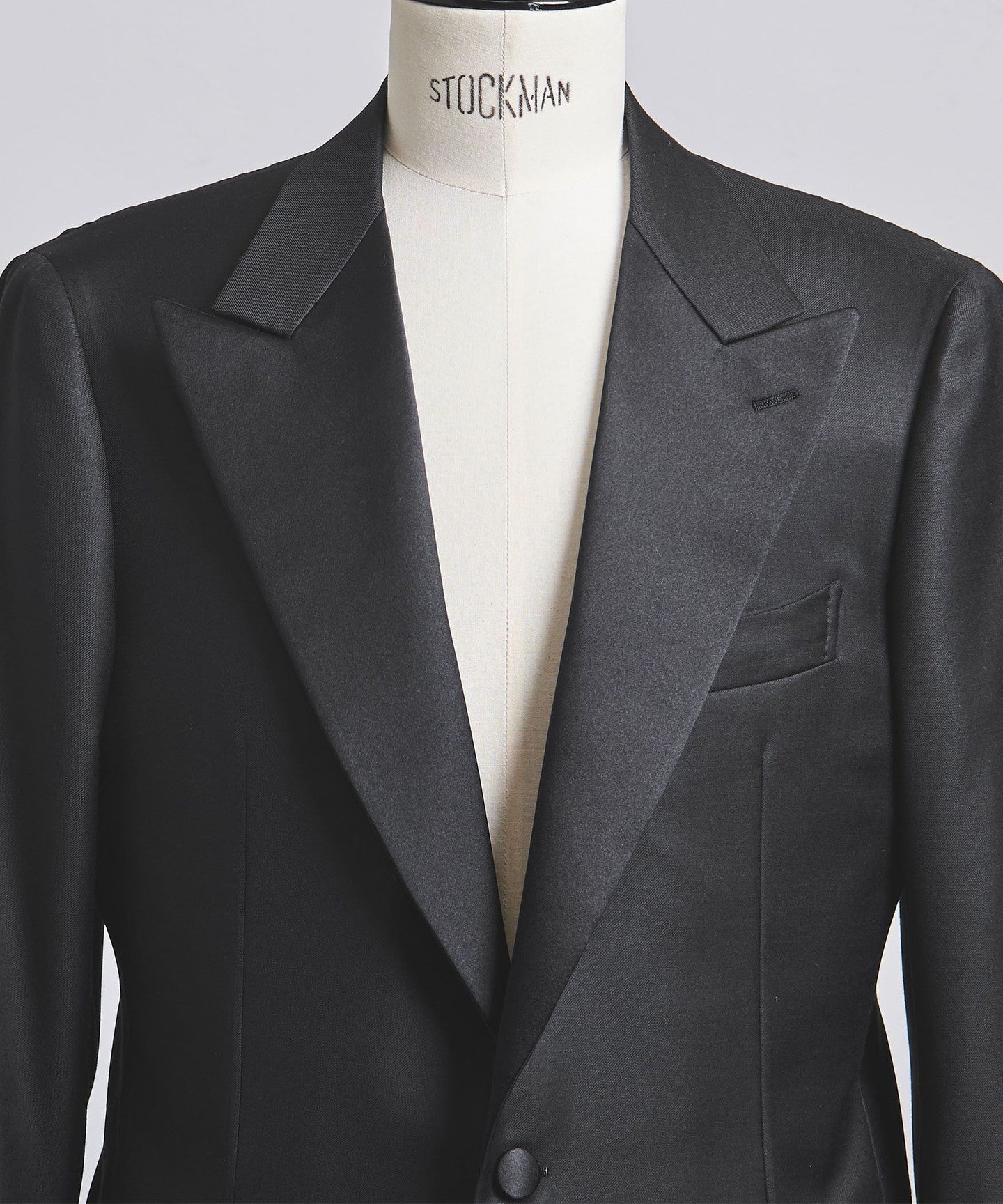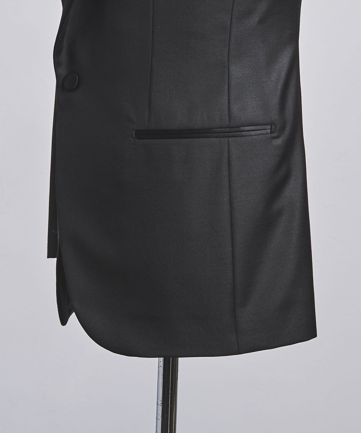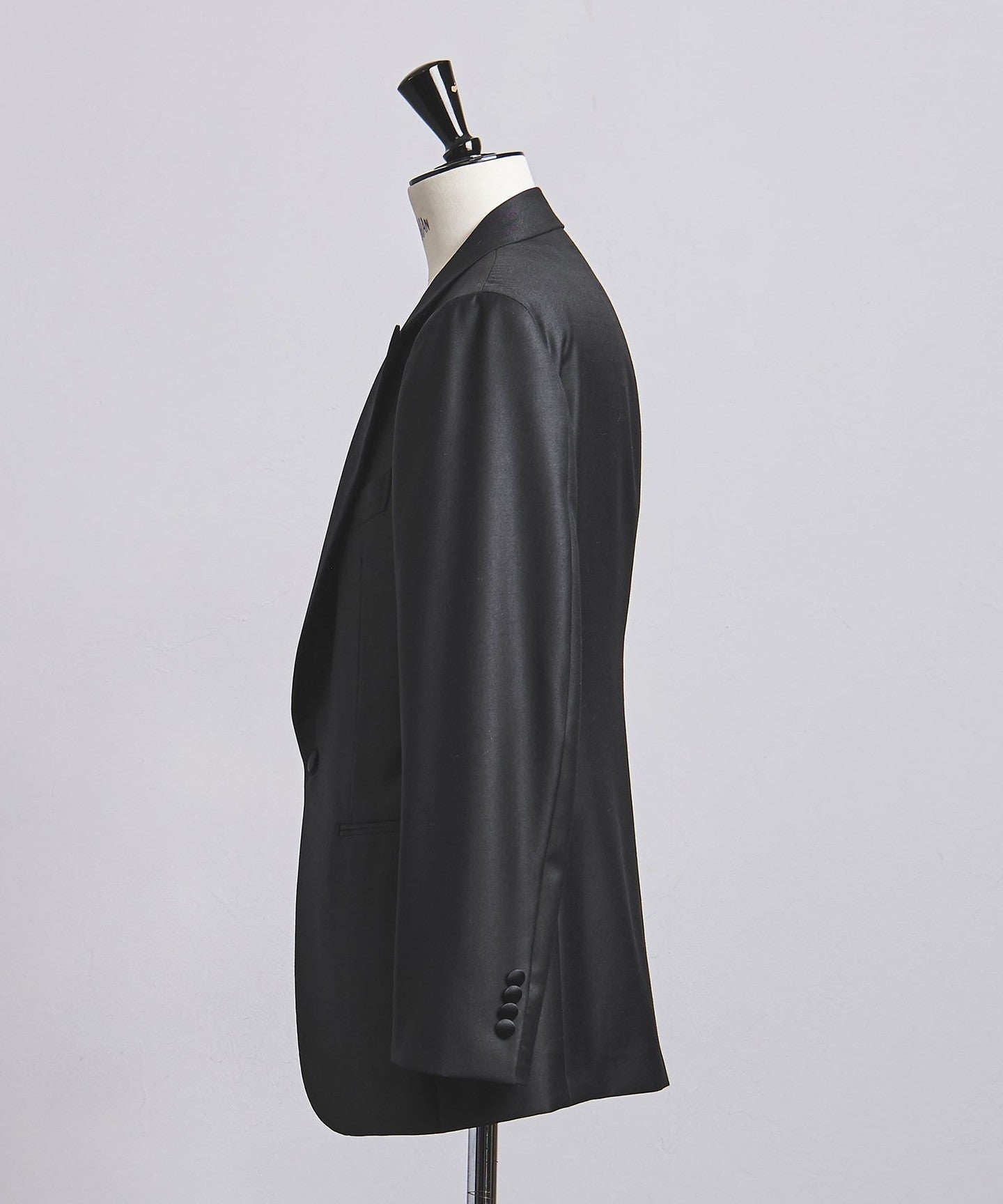 This formal tuxedo is made from DOUMEUIL's Amadeus 365 fabric, which exudes a unique sheen and elegance. The shoulder pads are thin, making it a formal piece that doesn't feel too stiff.