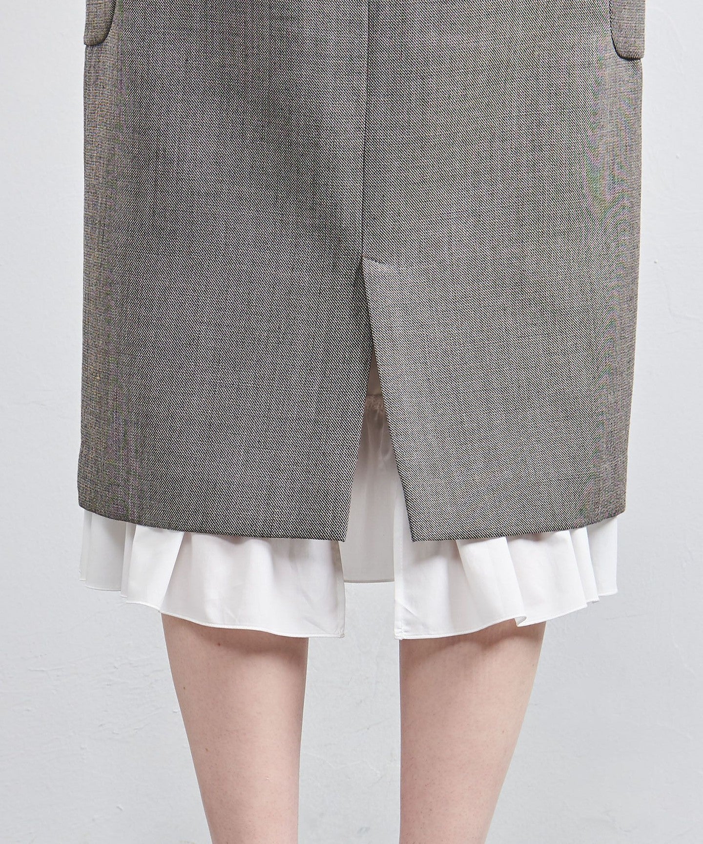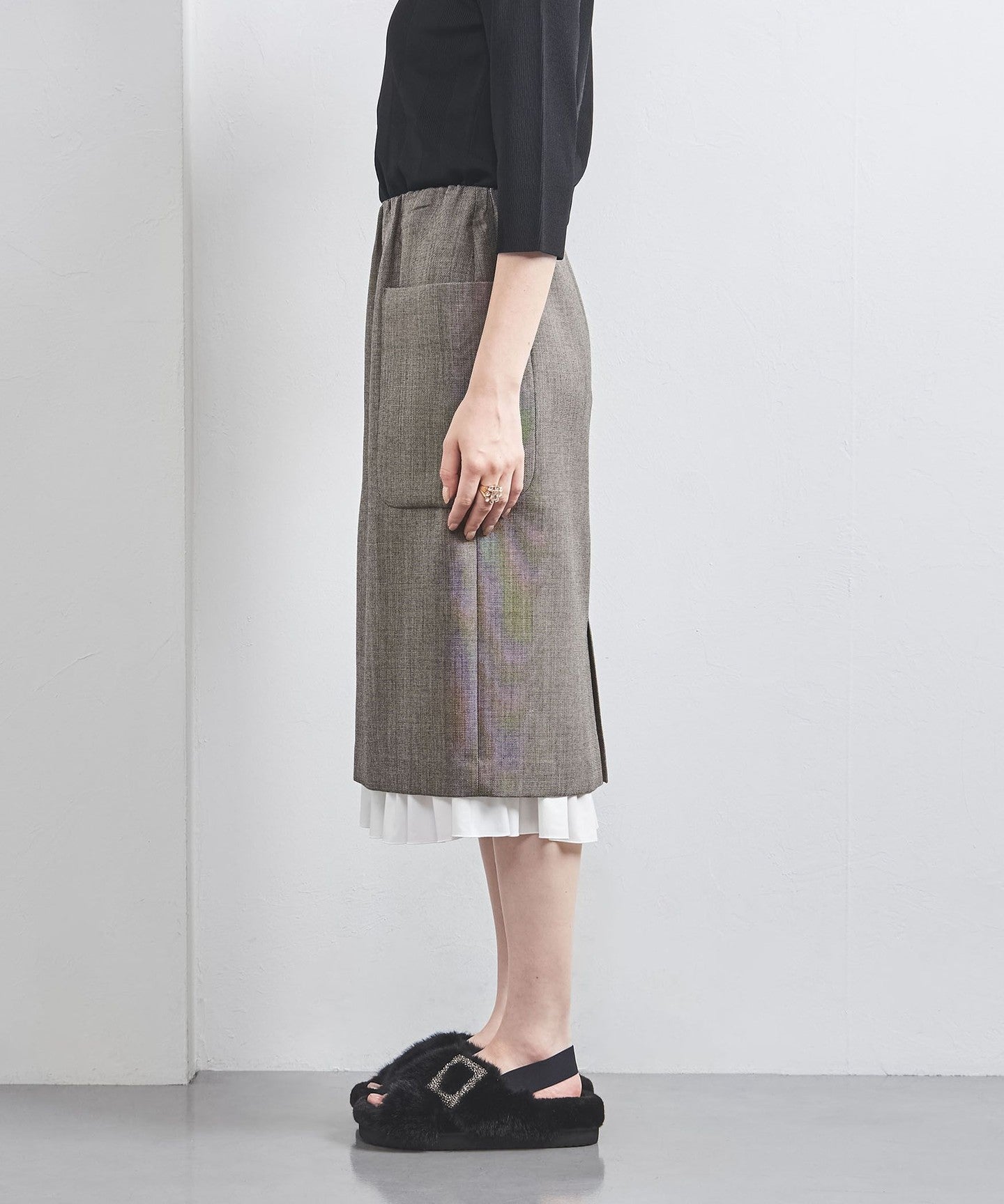A layered skirt set consisting of an elegant tight skirt and an underskirt made of a different material.