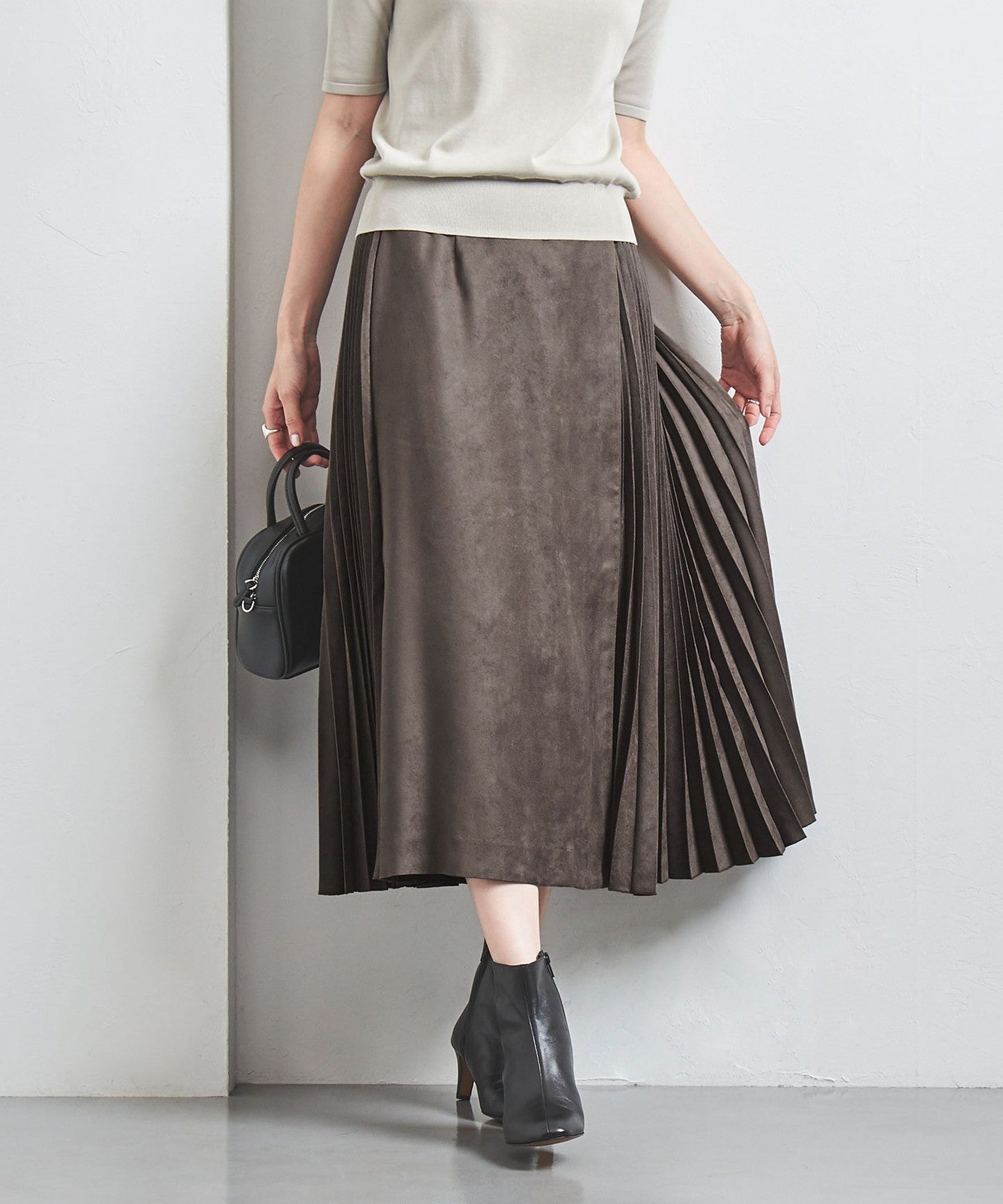 Suede-like pleated skirt