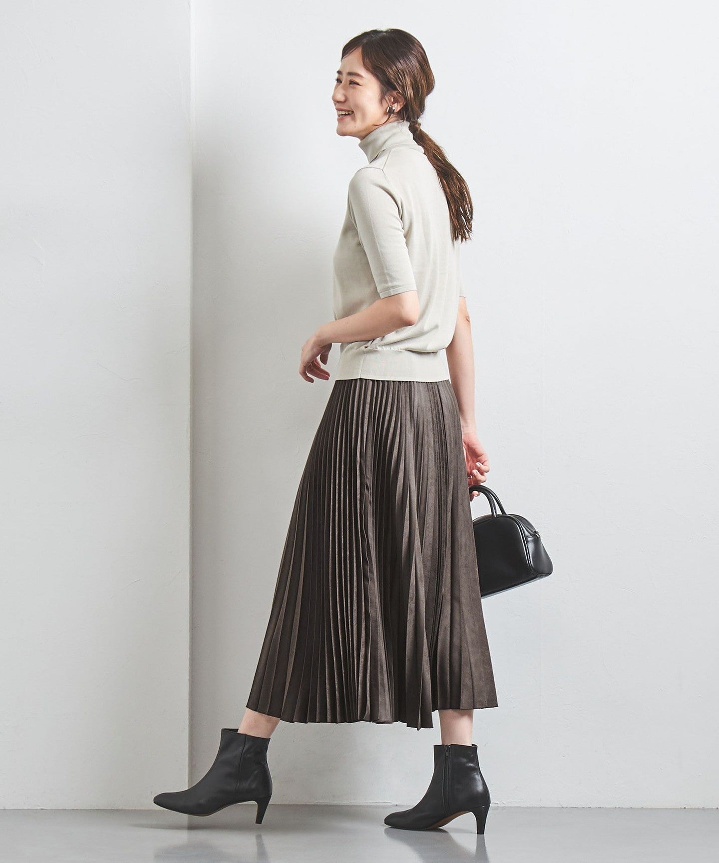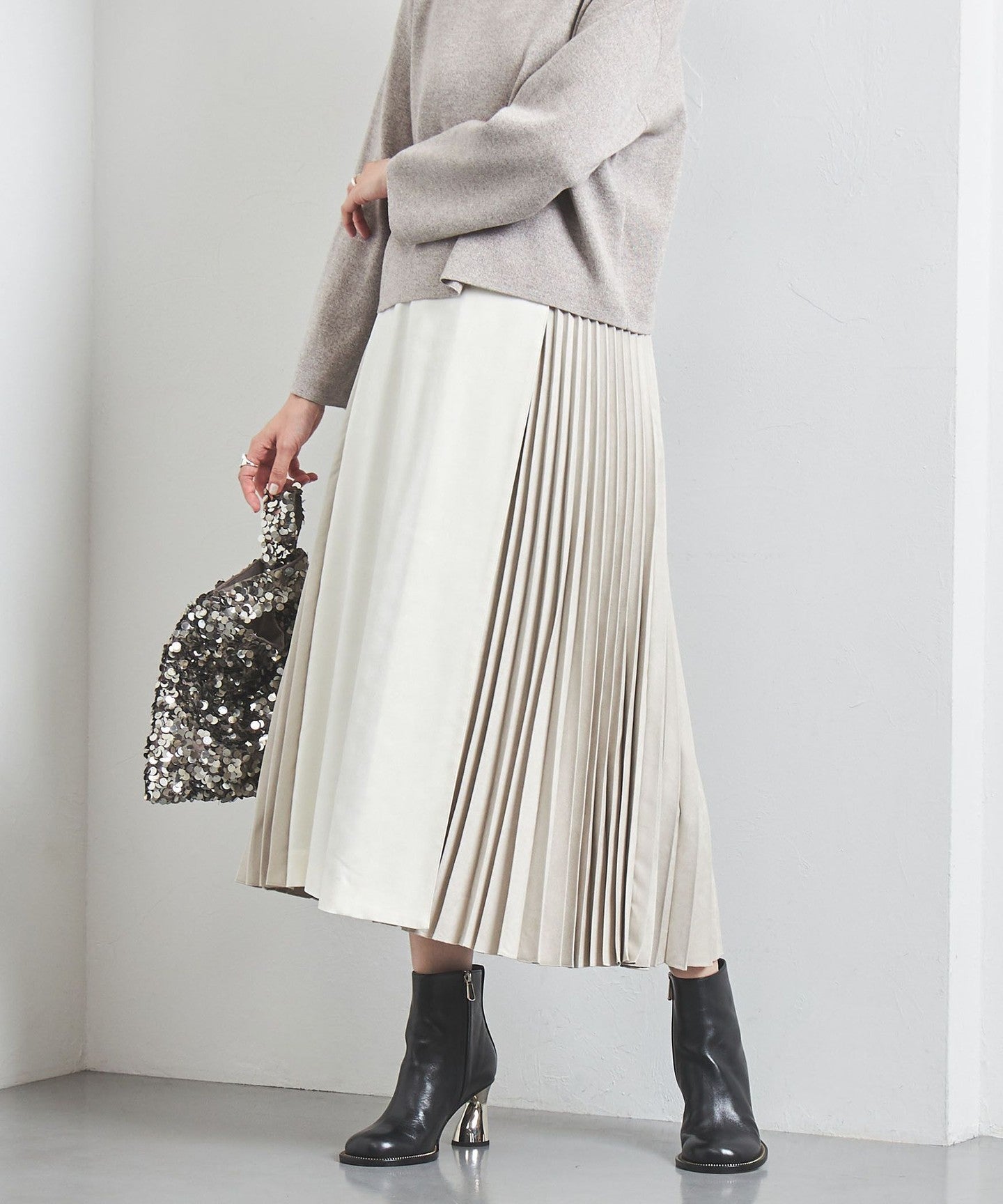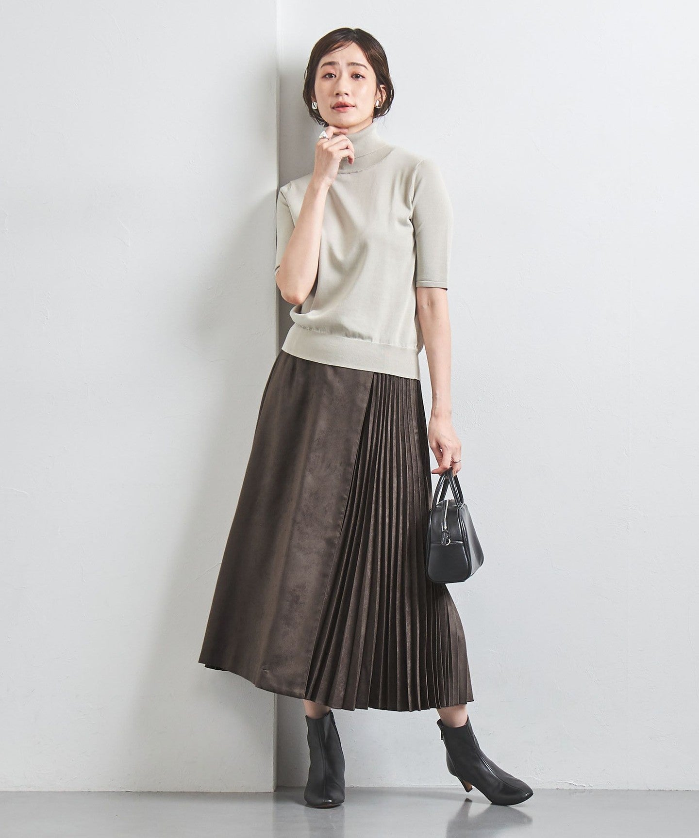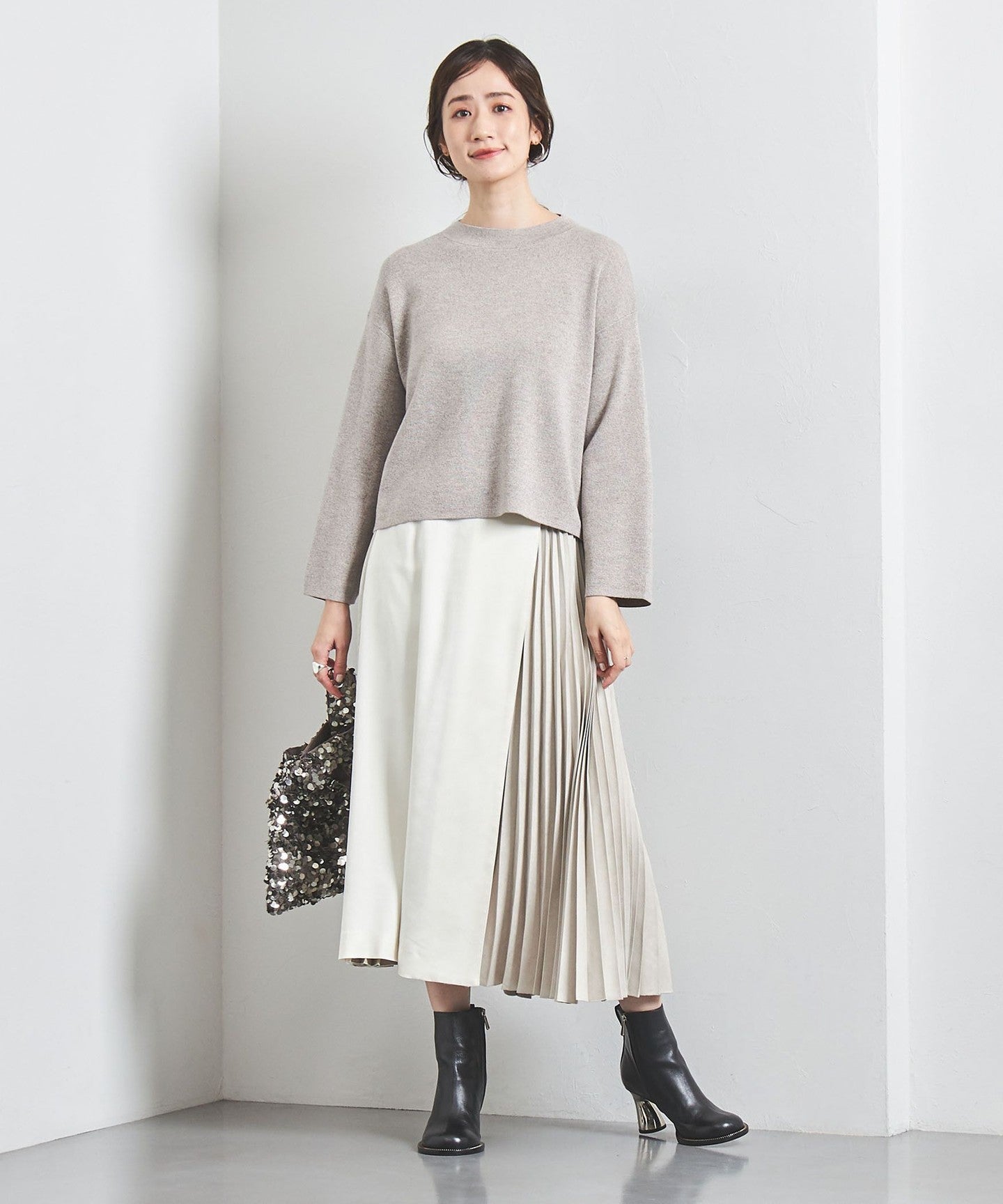 We recommend pairing it with fitted cut-and-sew tops or knitwear.