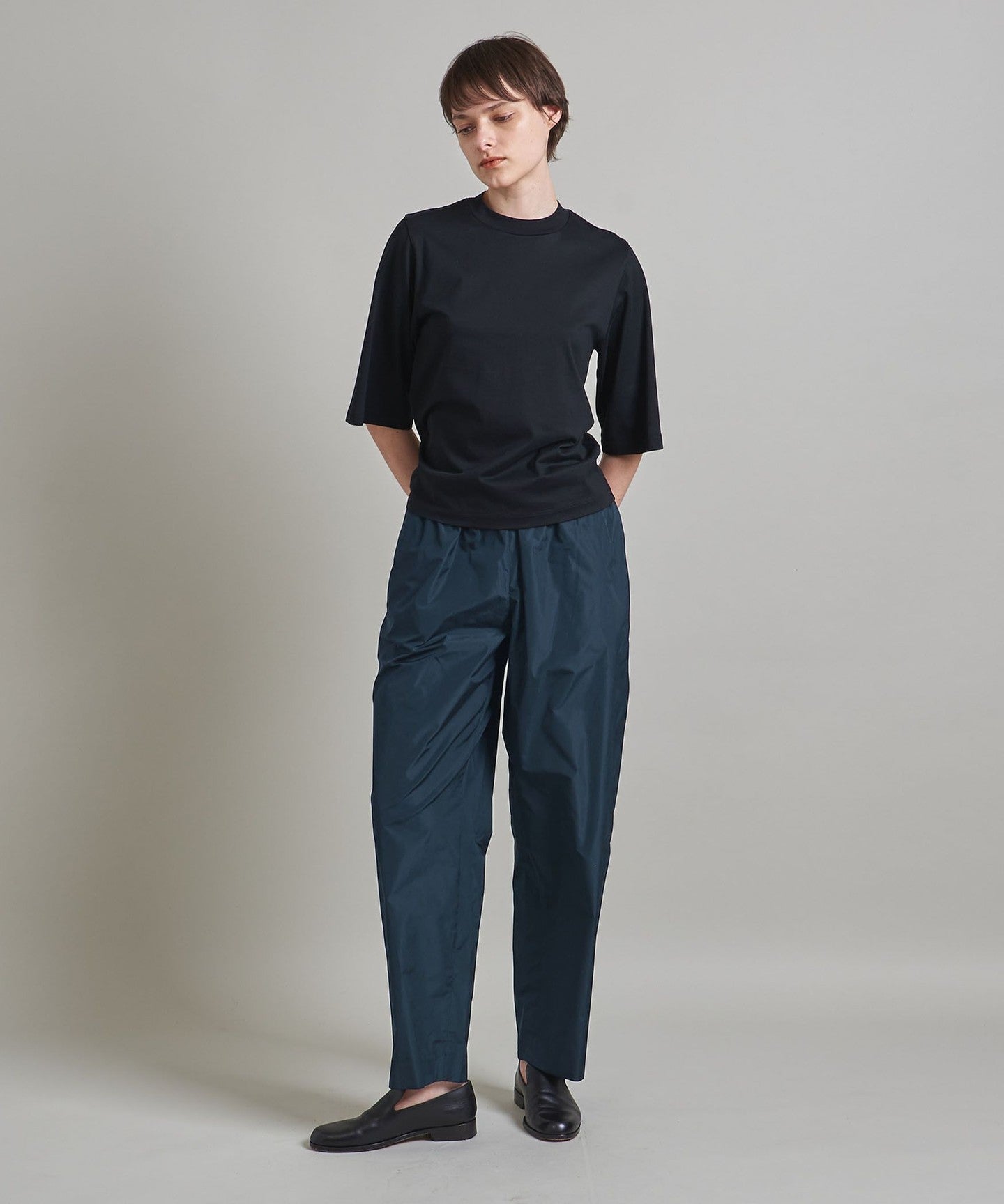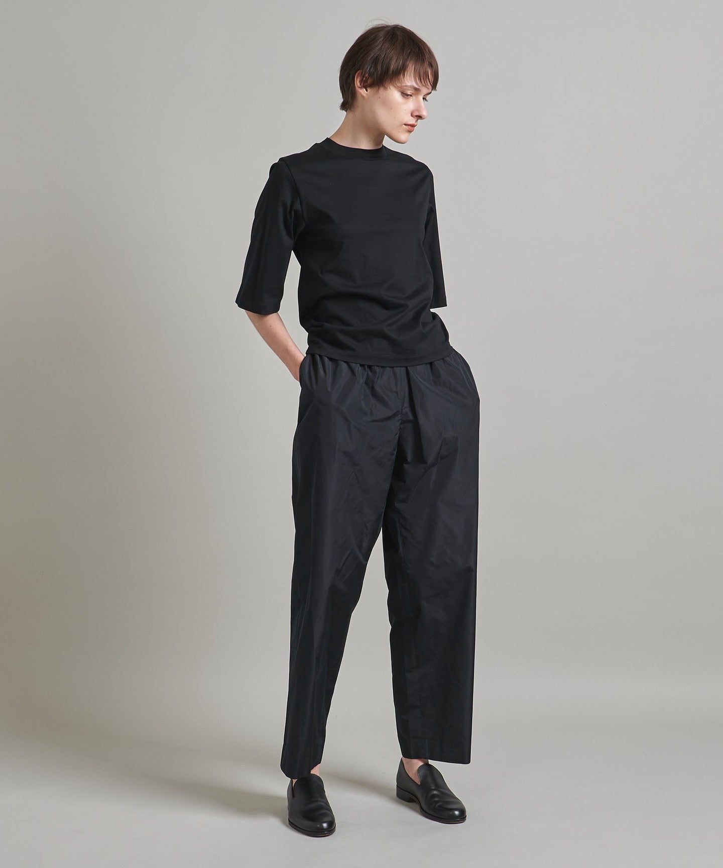 Cropped tapered pants with a relaxed, mature feel.